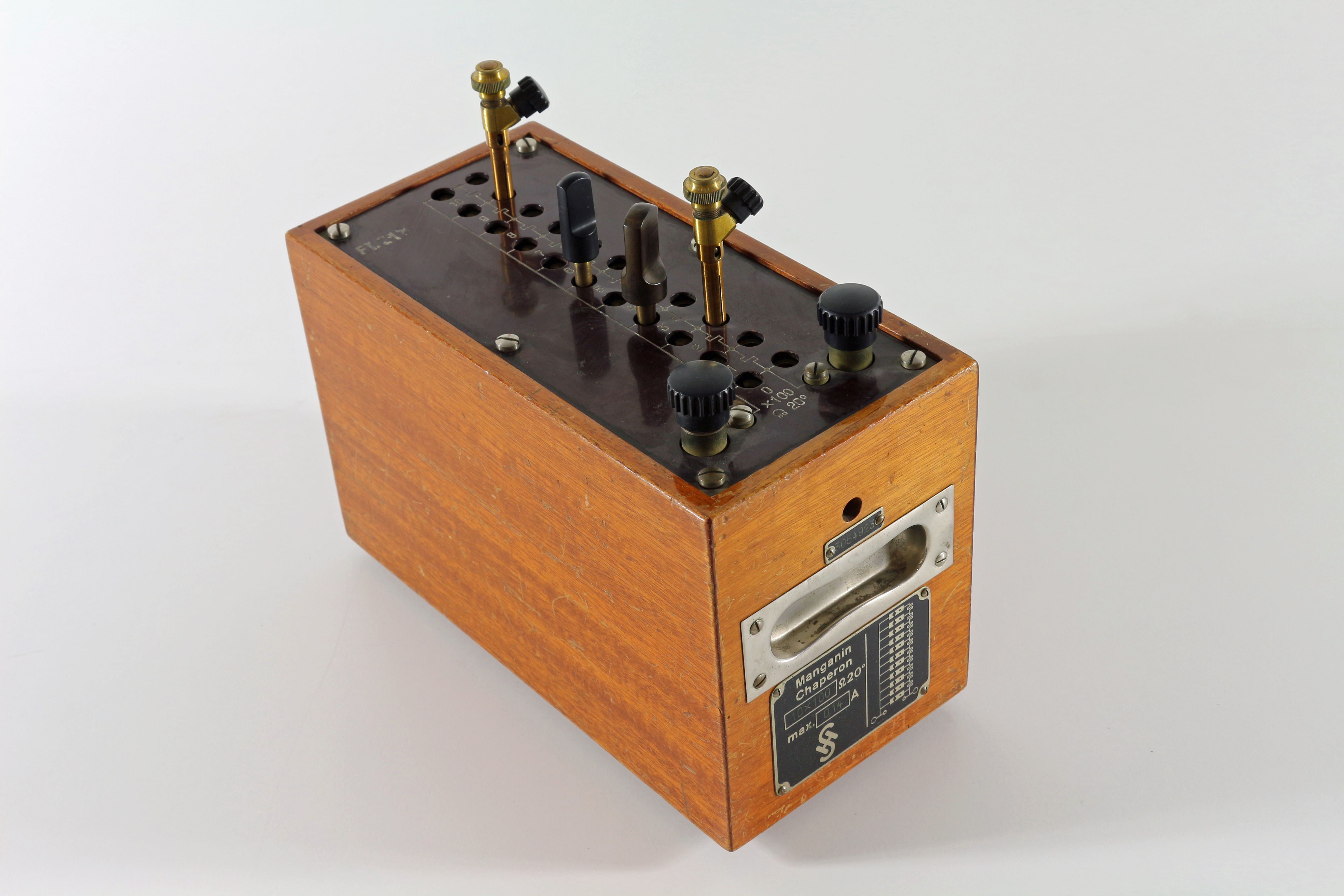 Stöpselwiderstand, Manganin Chaperon, 10 x 100 Ohm (20°C), Max. 0,14 A, Siemens & Halske, Nr. 3054923