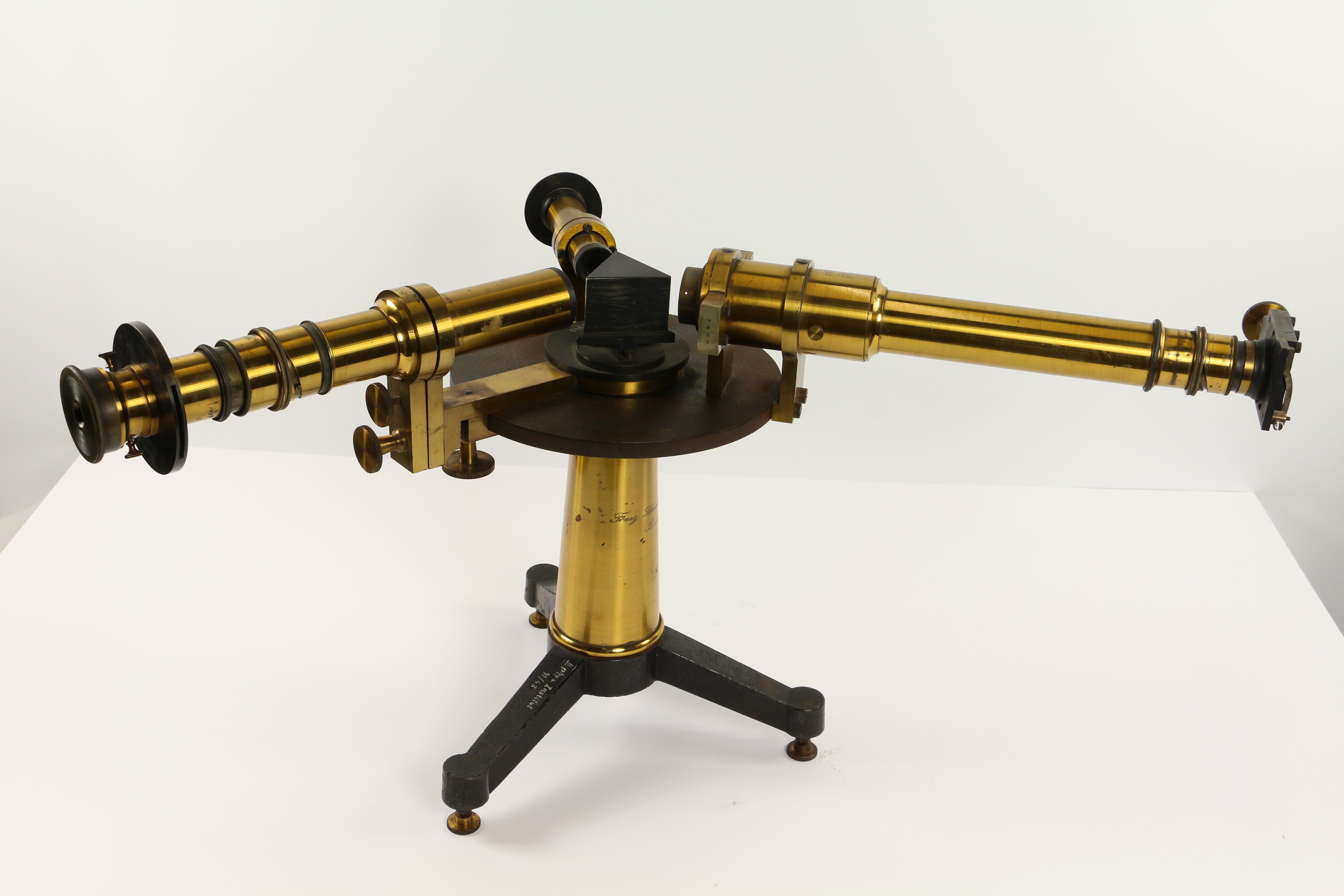 Spektralapparat von Franz Schmidt & Haensch, Berlin (Gravur am Gestell), Inv.-Nr. VI/43, Höhe 33 cm. Das Fernrohr ist drehbar.
