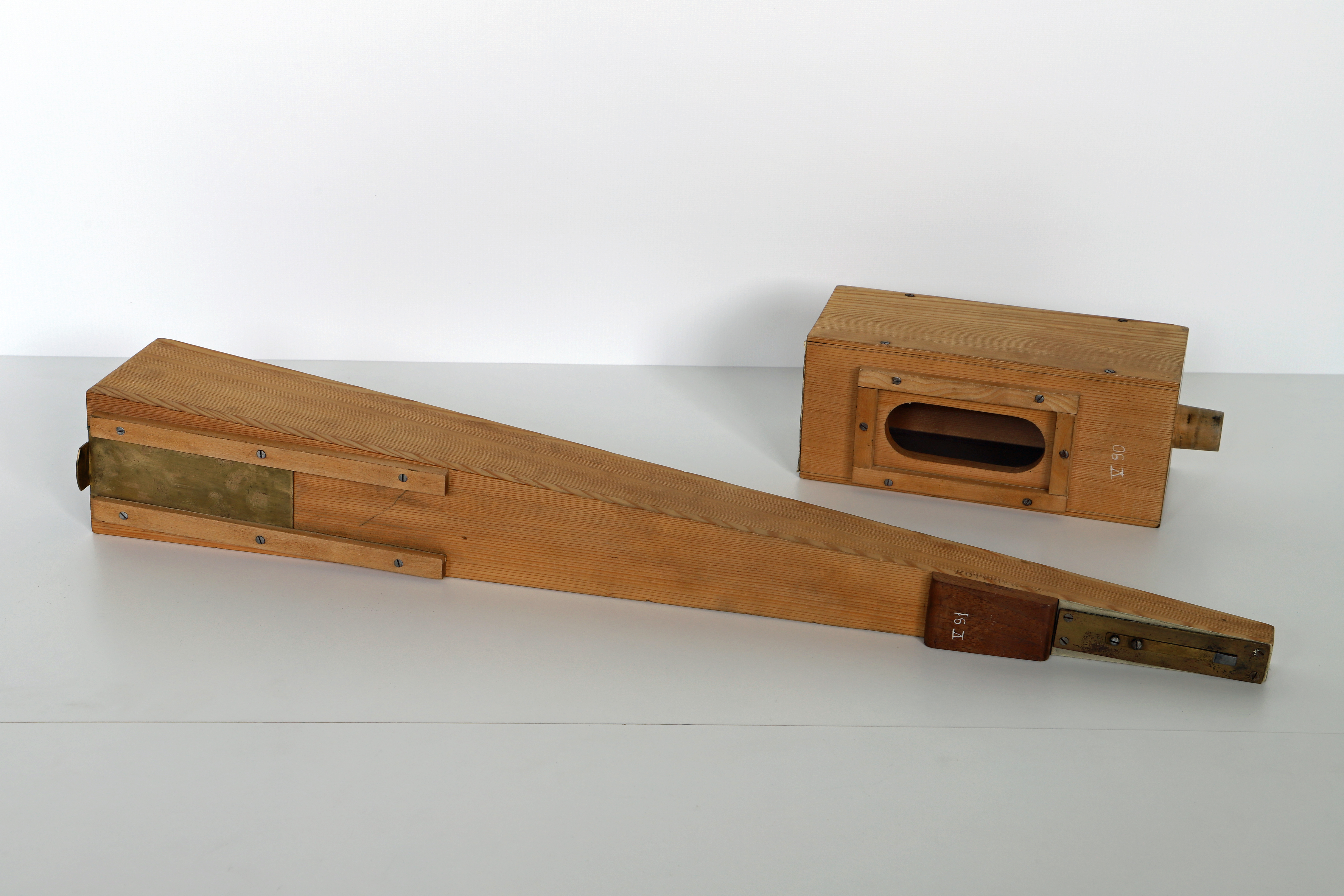 Abmessung: Länge 70 cm. Diese Pfeife hat einen Stimmschieber. Die Frequenz des Grundtons ist ca. 130 Hz. Das Anblasstück hat die Inv.-Nr. V/90 und hat eine Länge von 27 cm.