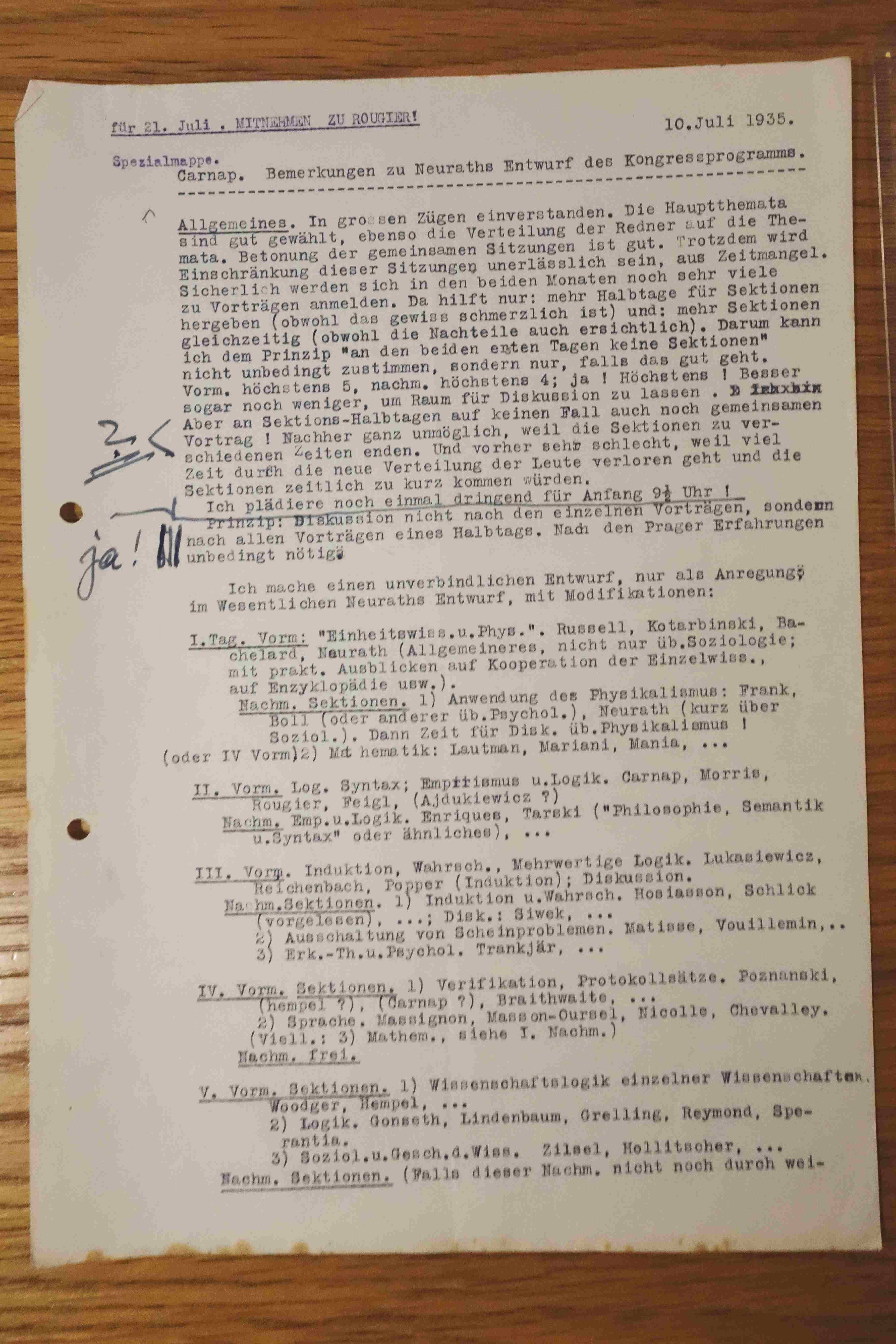 Carnap, Bemerkungen zu Neuraths Entwurf des Kongrssprogramms, 1935-07-10 (M) (Original)