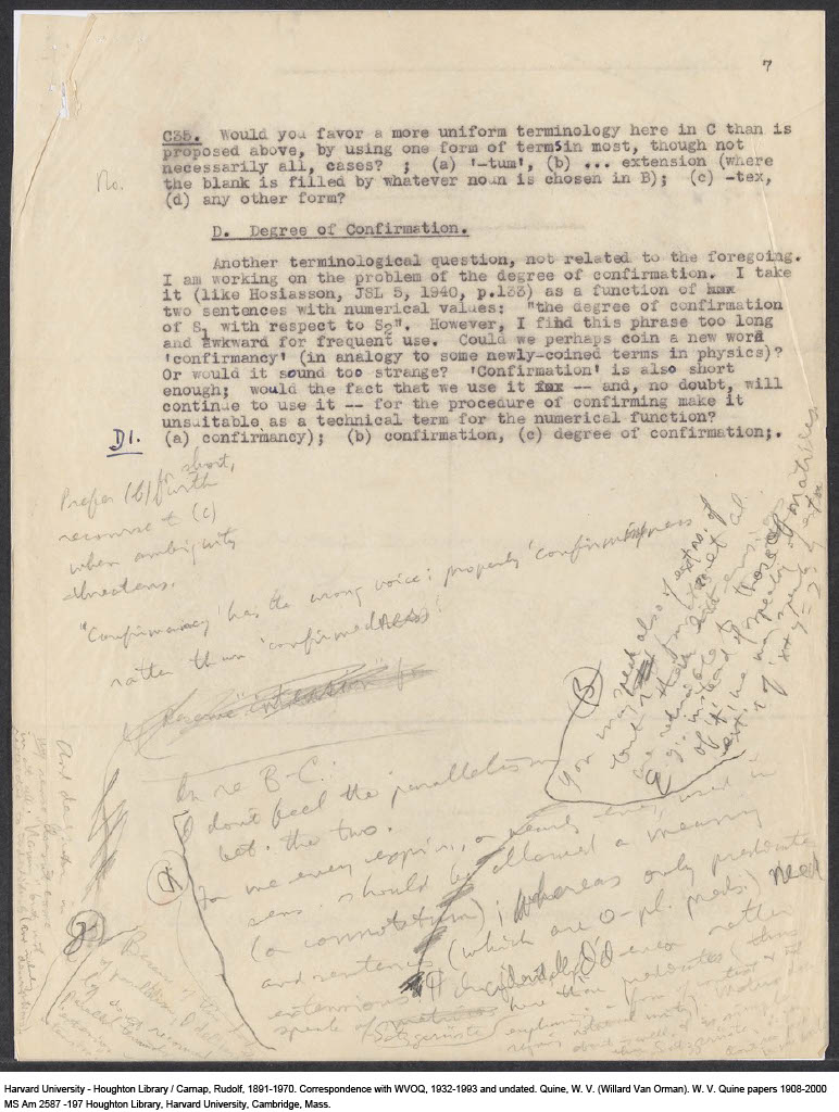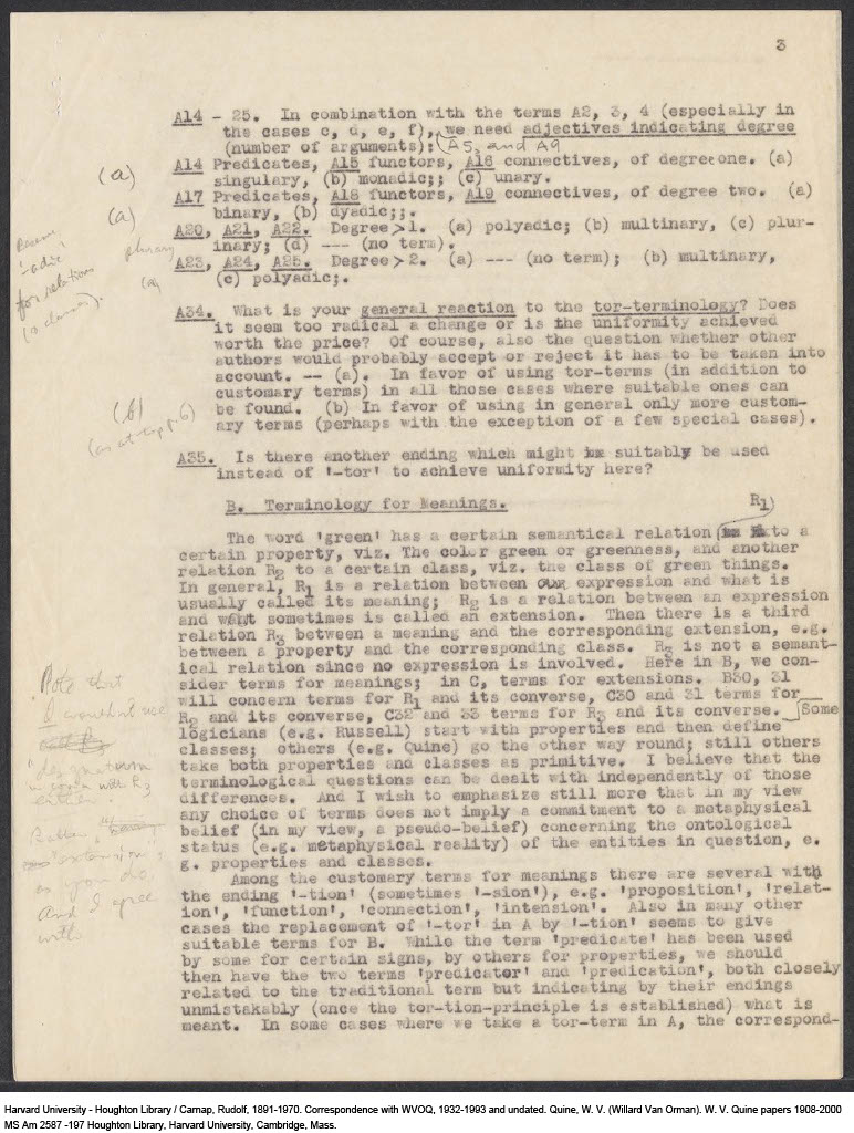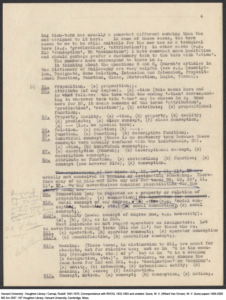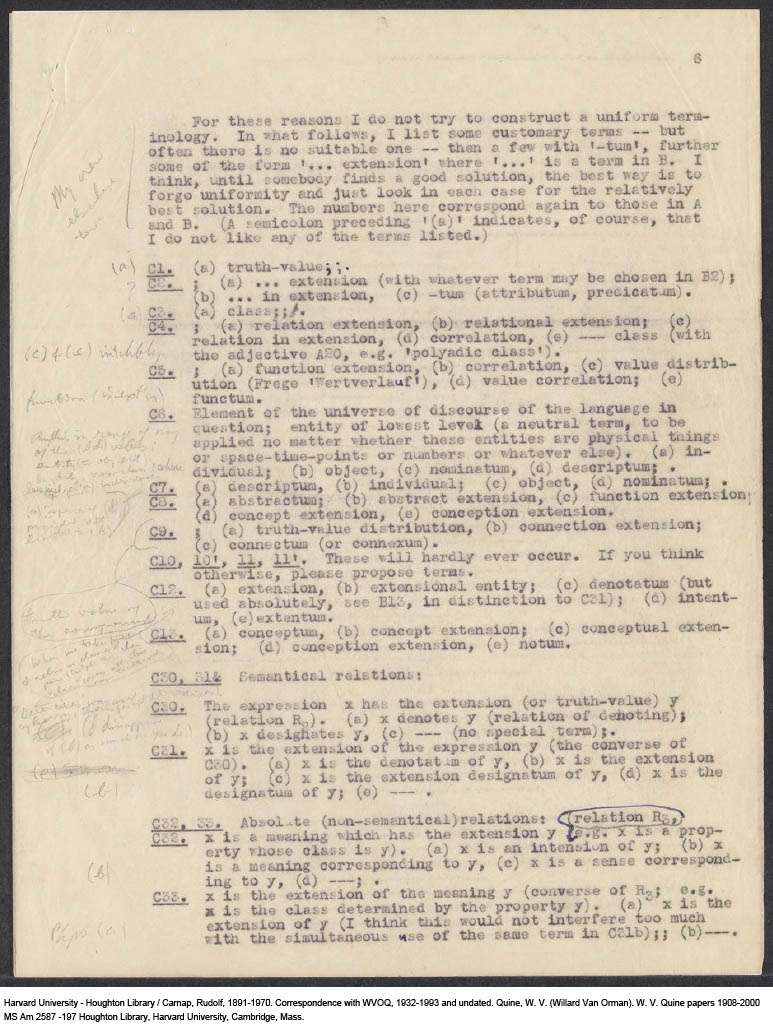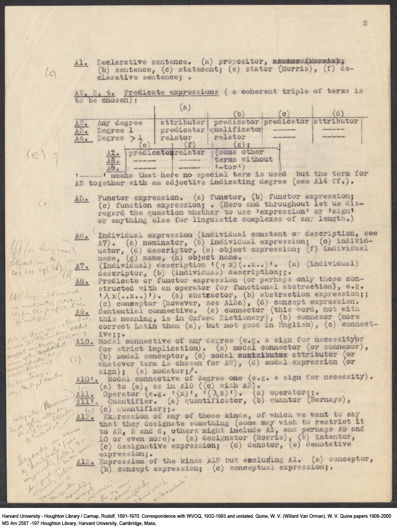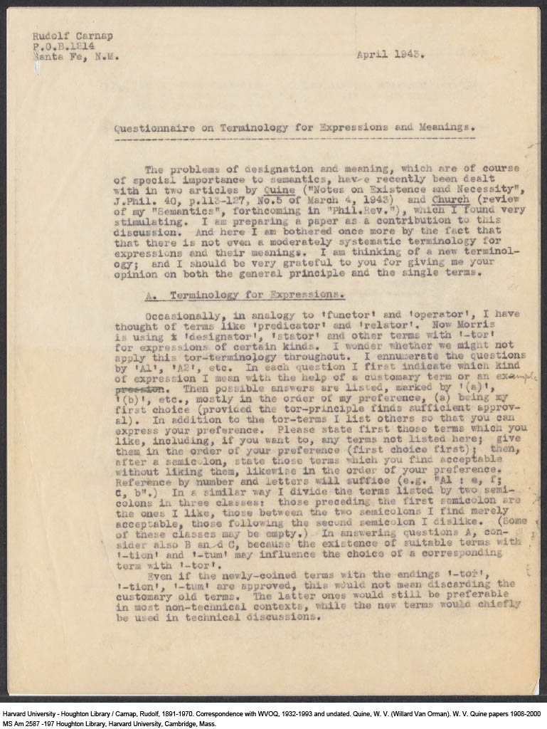 Carnap, Questionnaire on Terminology for Expressions and Meanings, 1943-04 (M) (Original)