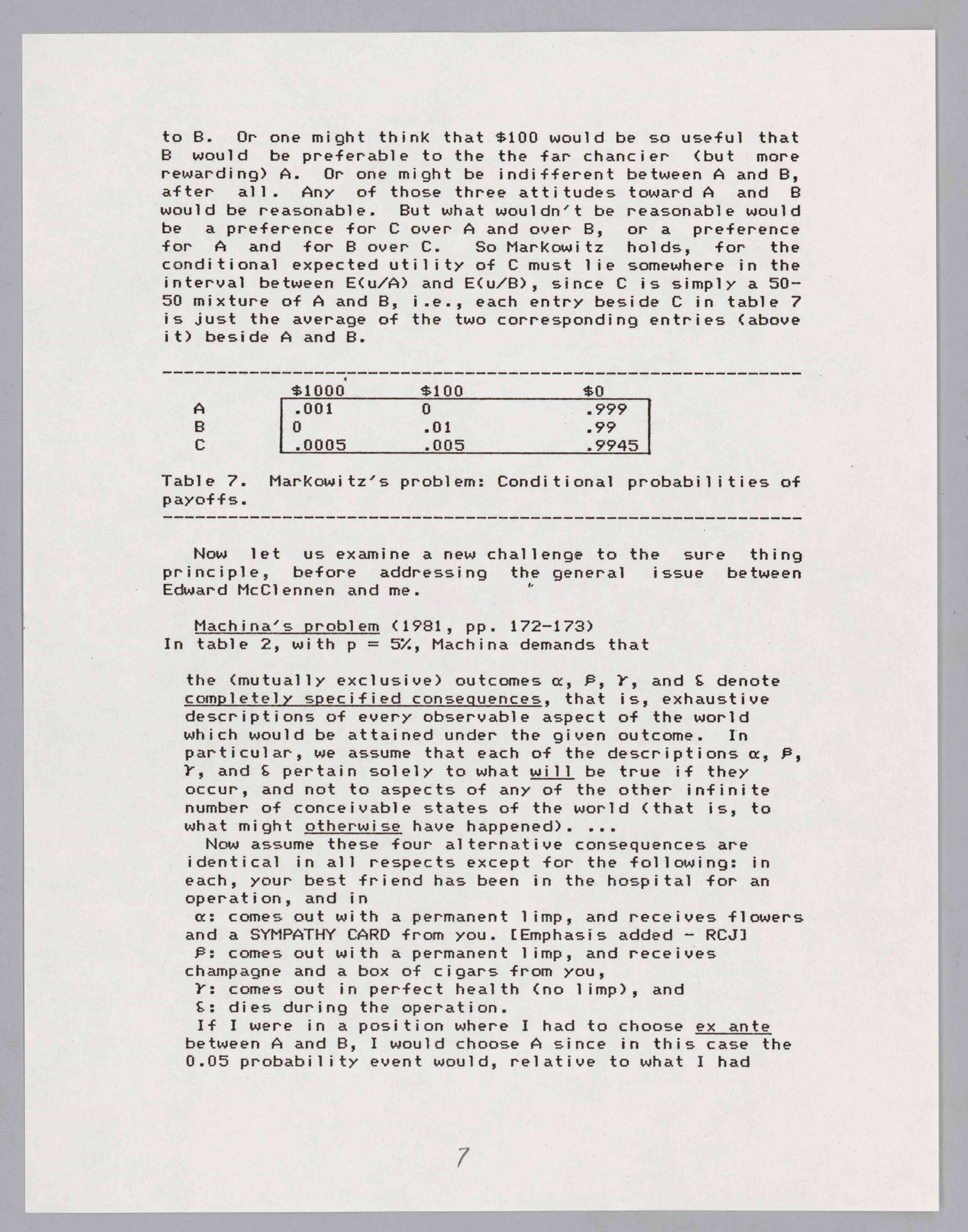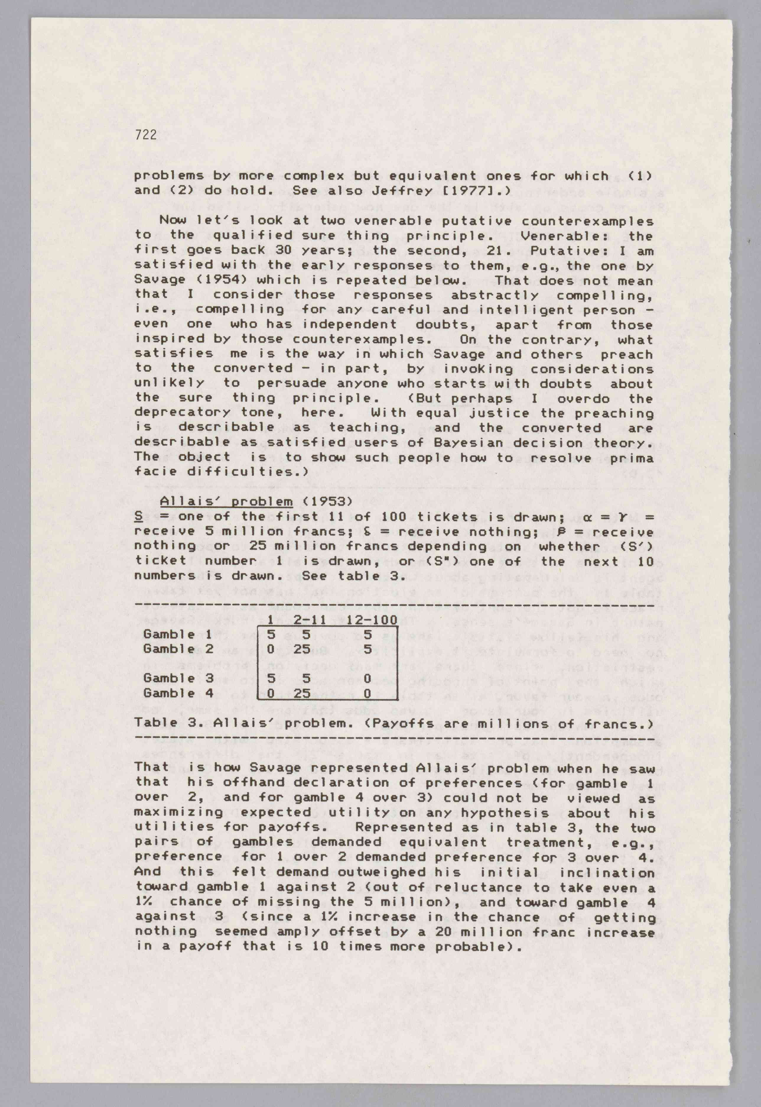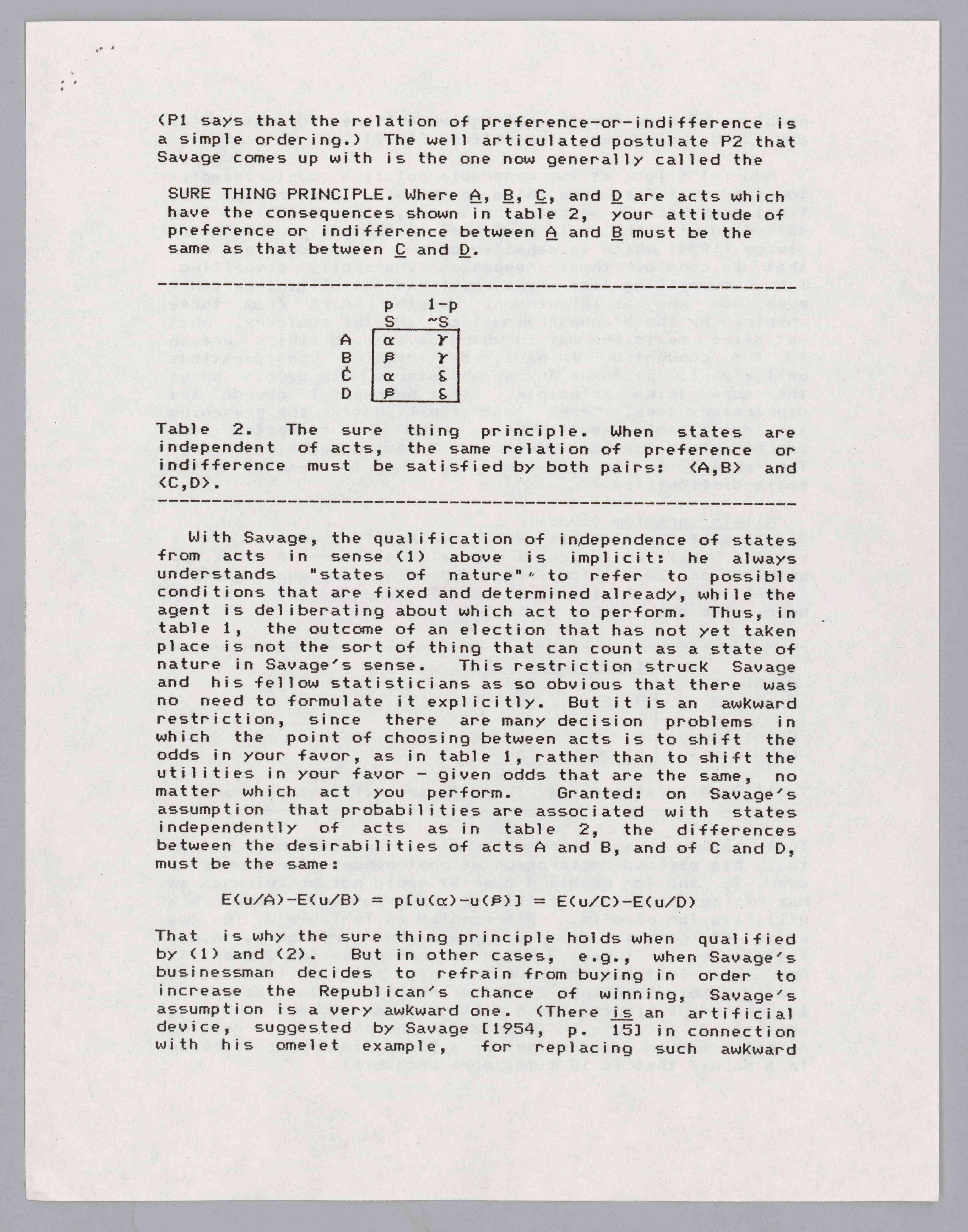 ASP Archive>Jeffrey Collection>Box 15>Folder 7 ''The Sure Thing Principle'', (Philosophy of Science Association)᠄ Drafts, Notes, Readings, 1982-1984 (1982/1984)