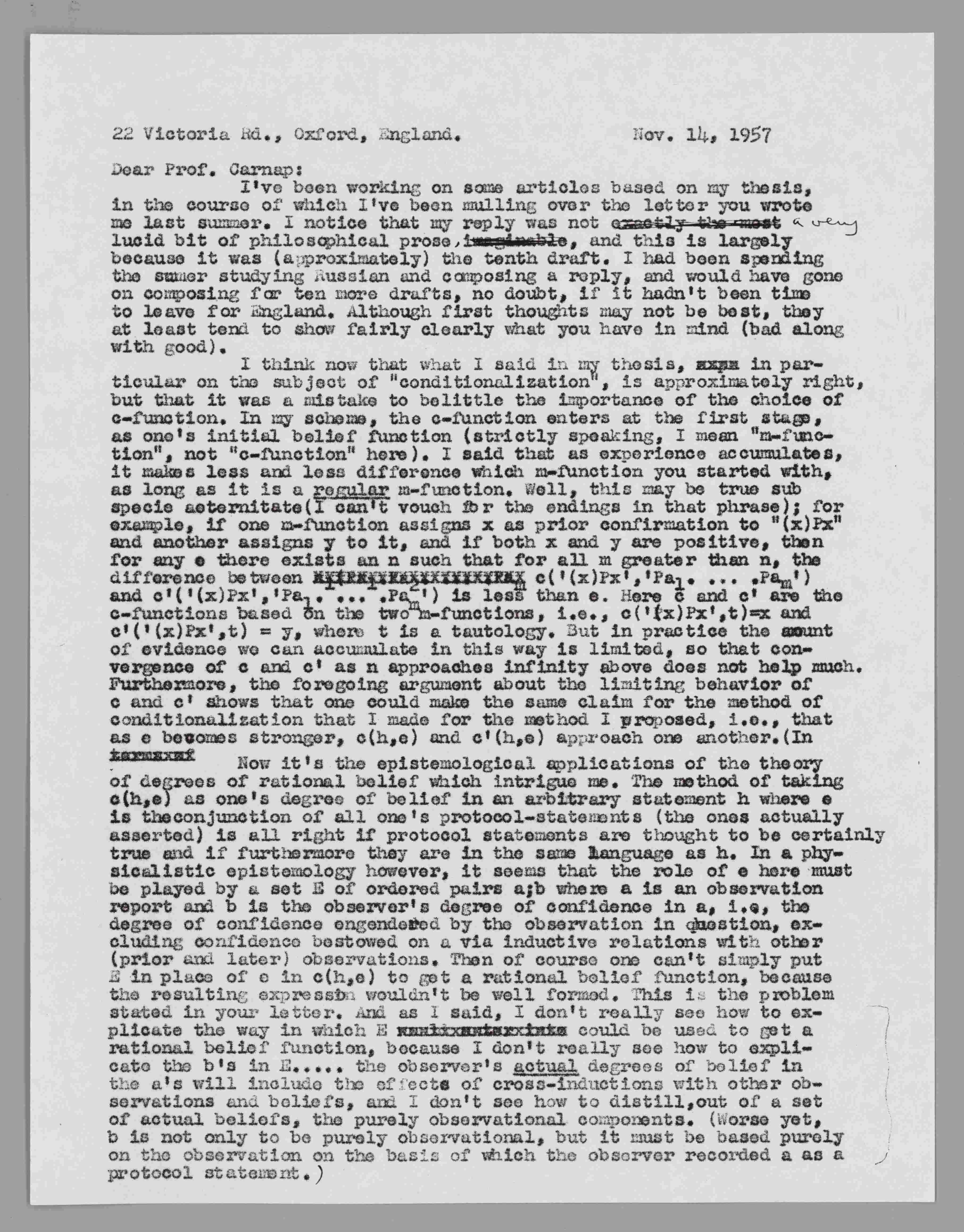 Jeffrey to Carnap, 1957-11-14 (L) (Copy)