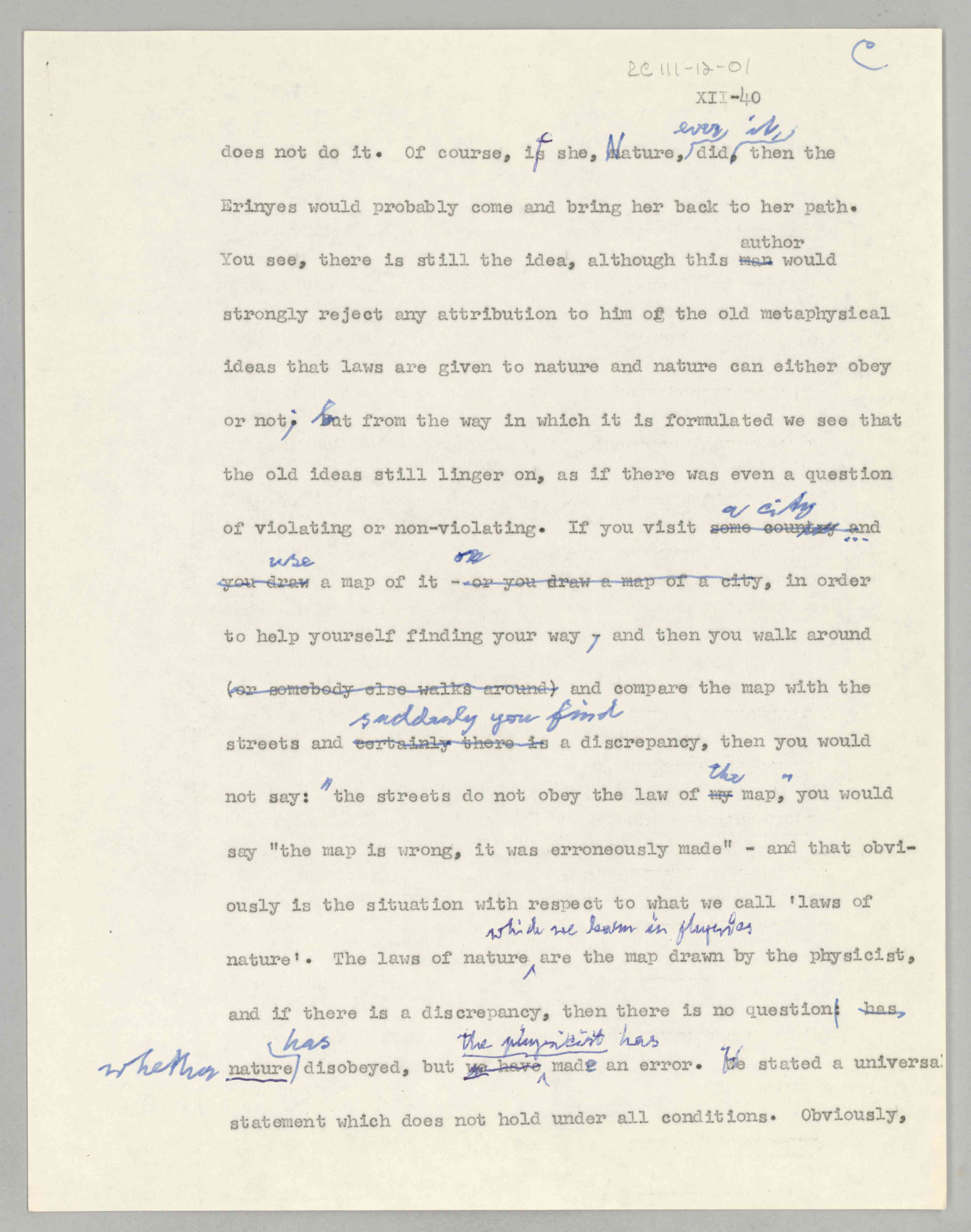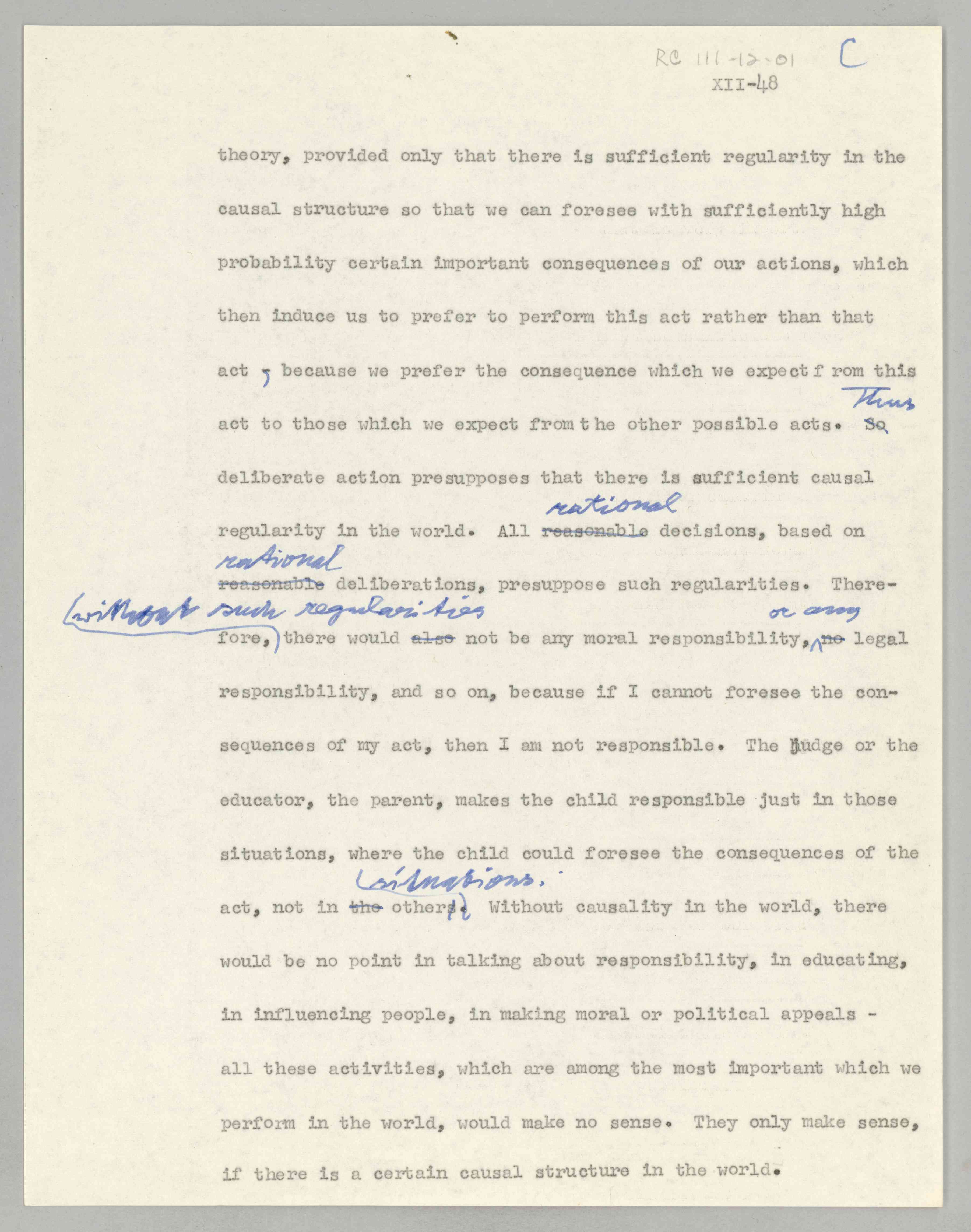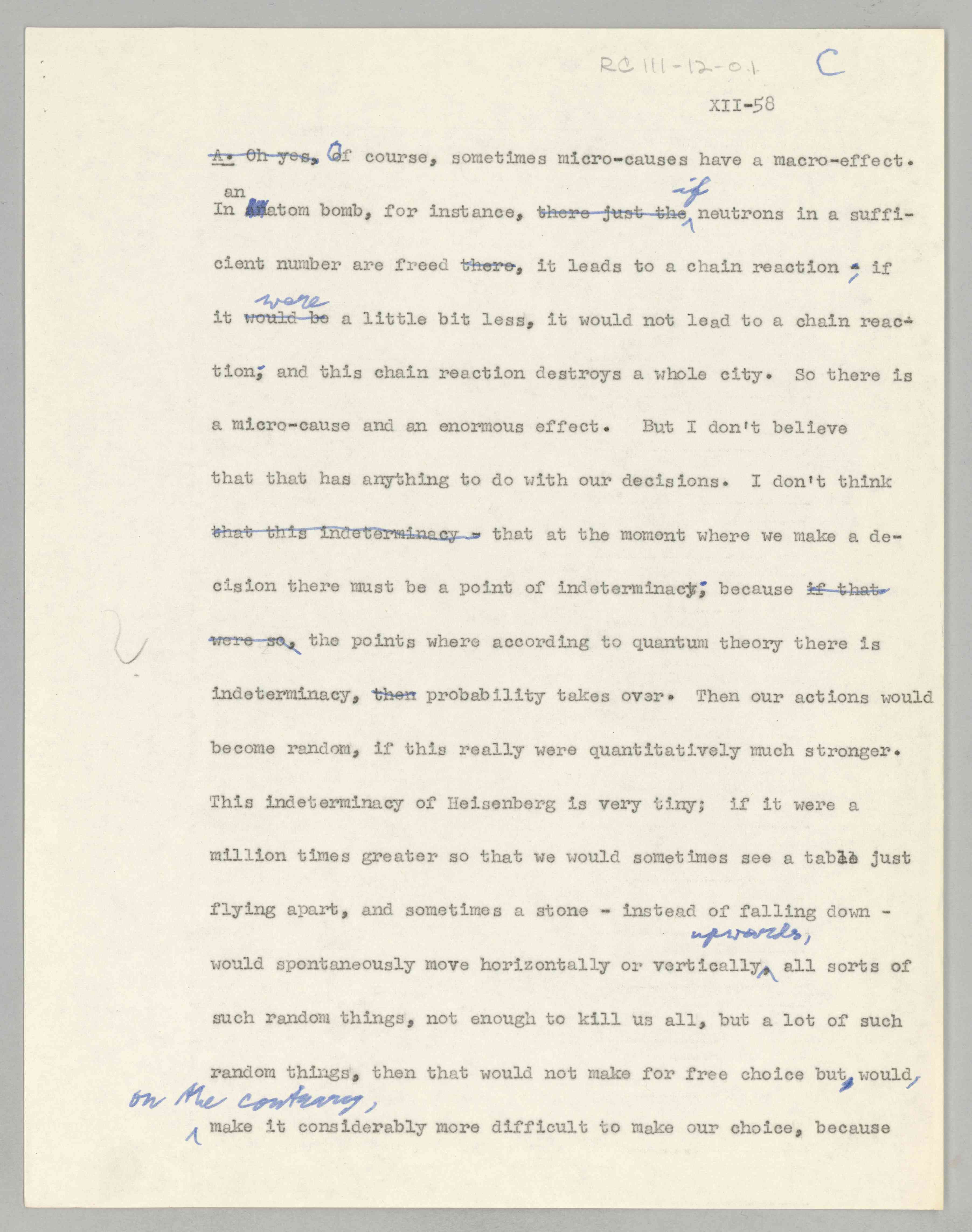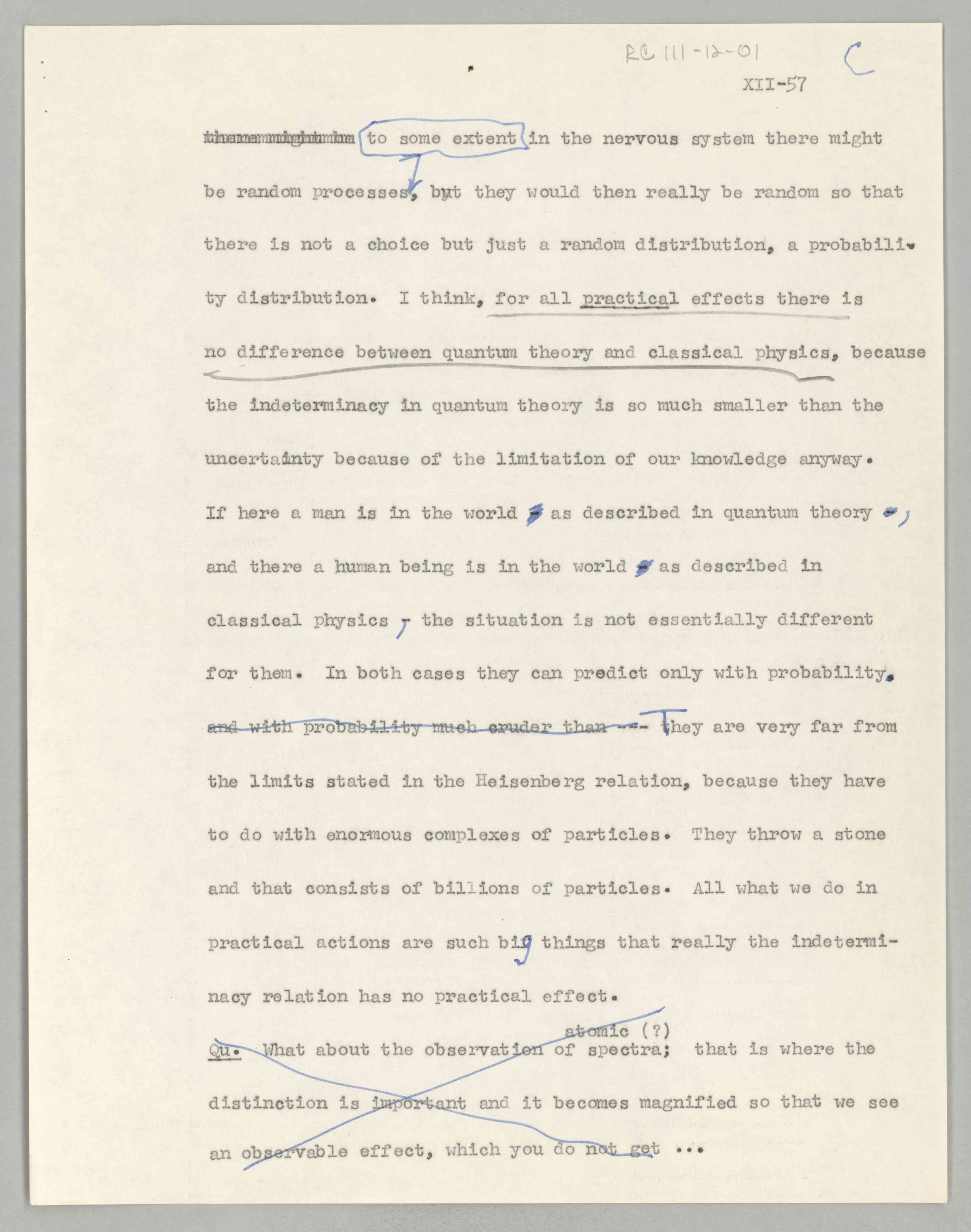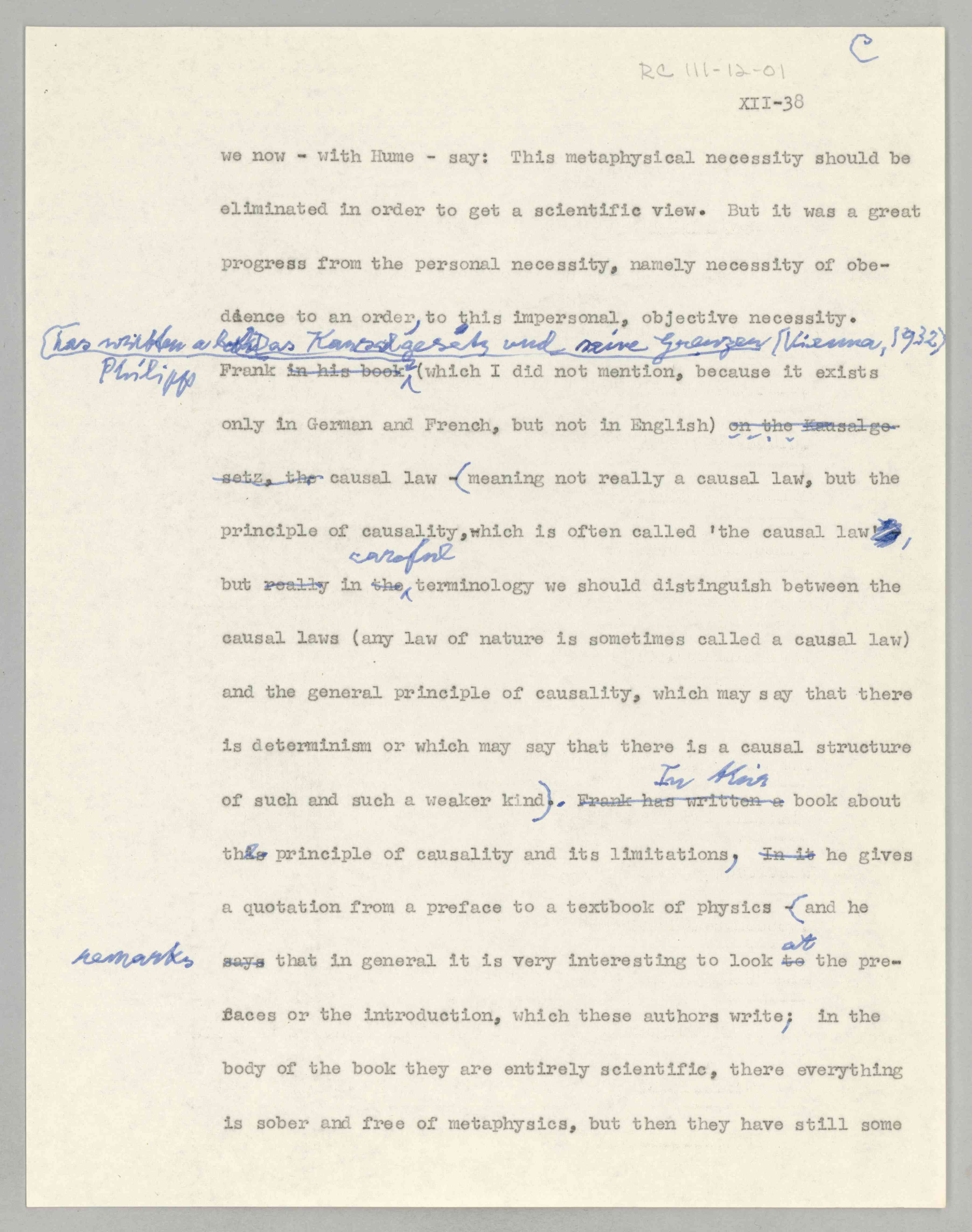 ASP Archive>Carnap Collection>Box 111 >Folder 12a ''Philosophical Foundations of Physics,'' Lecture XII (Item 1), 1958-1962 (1958/1962)