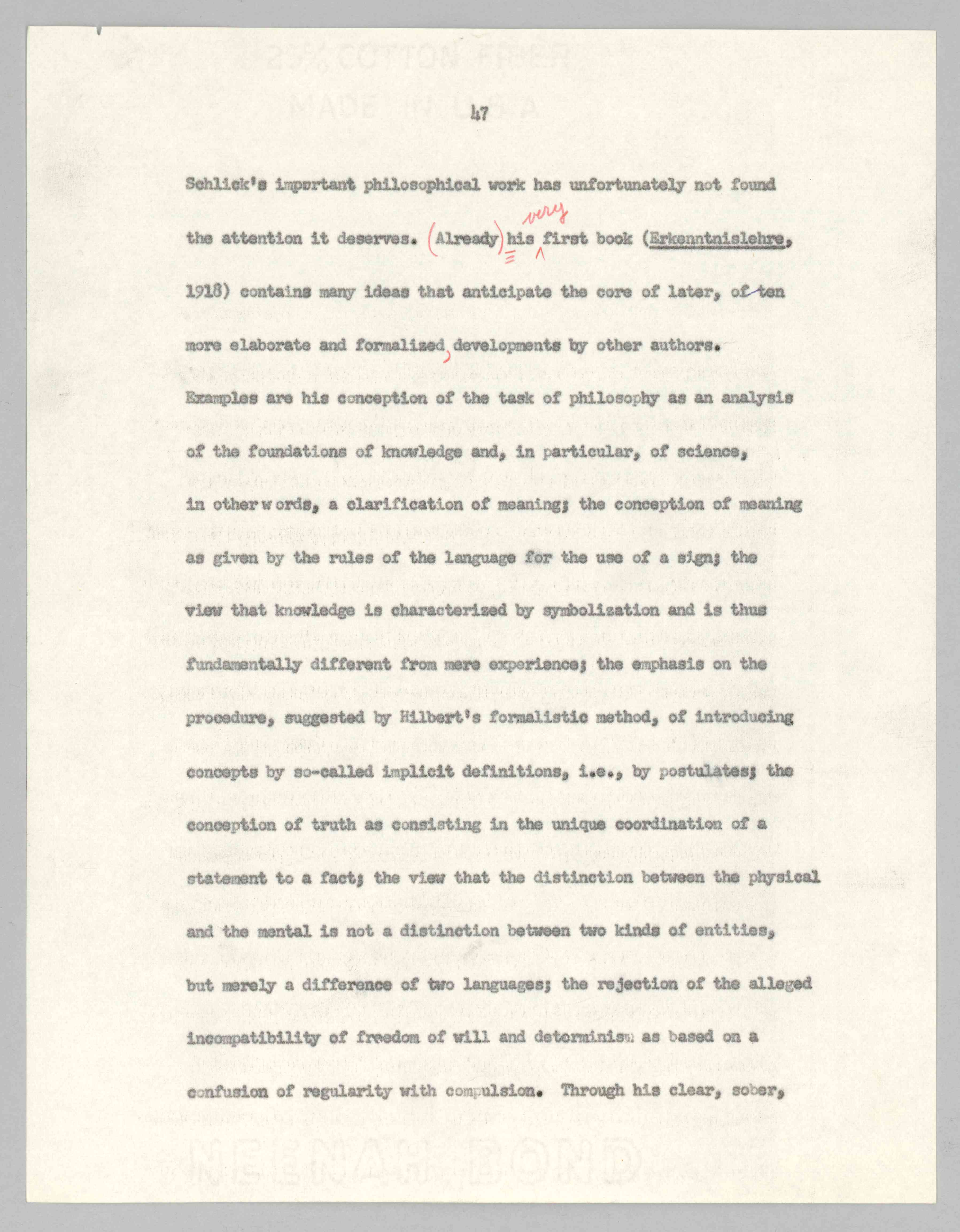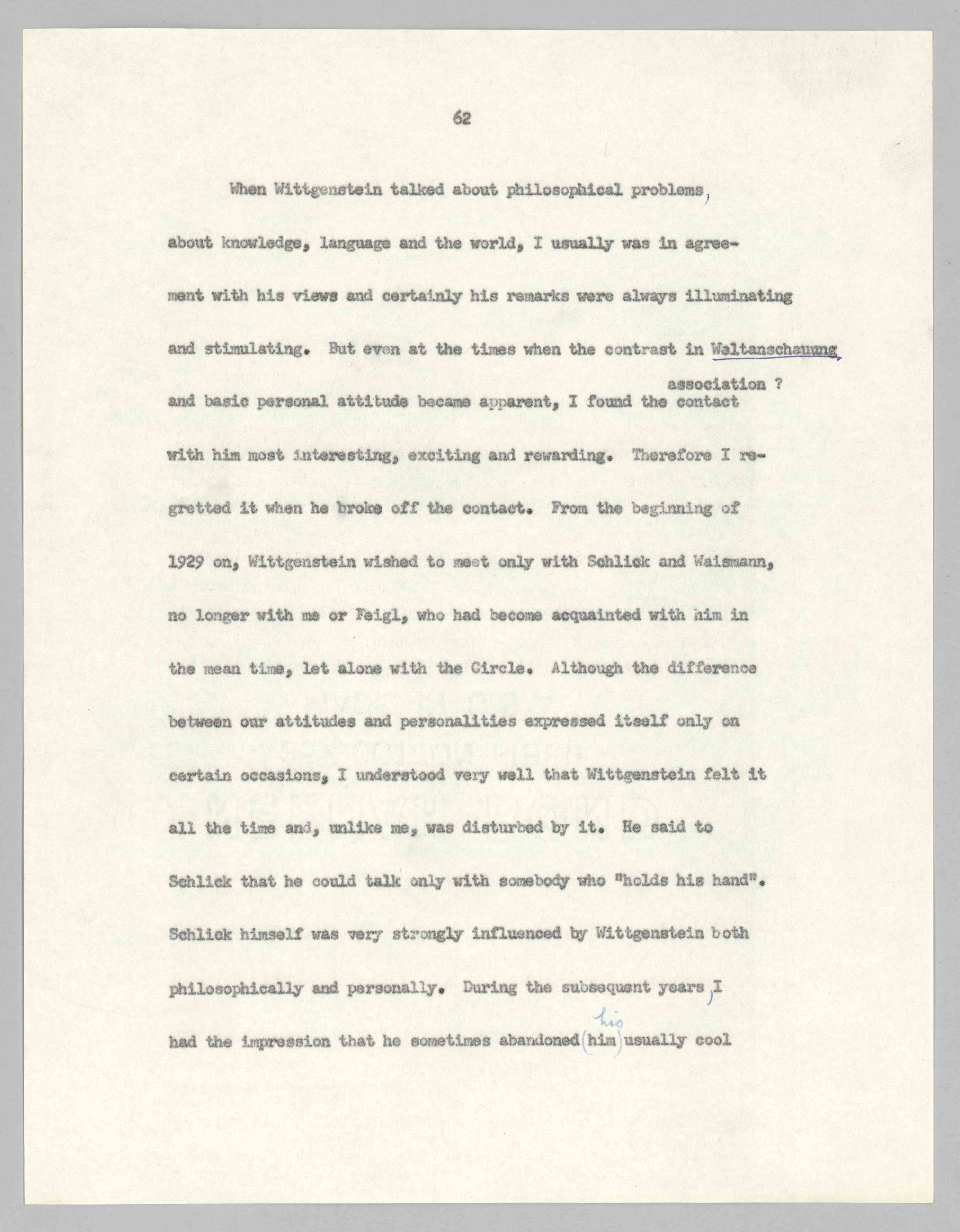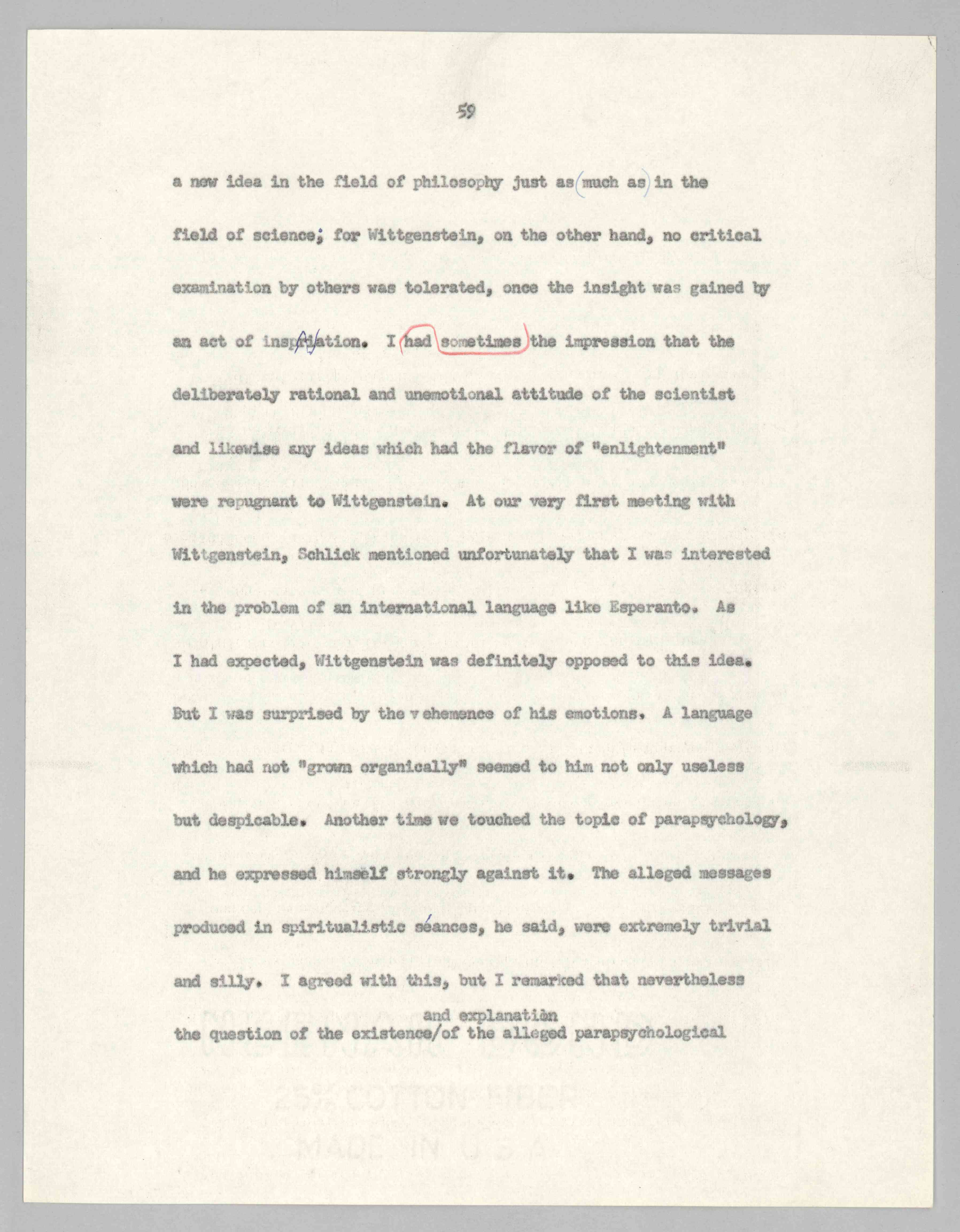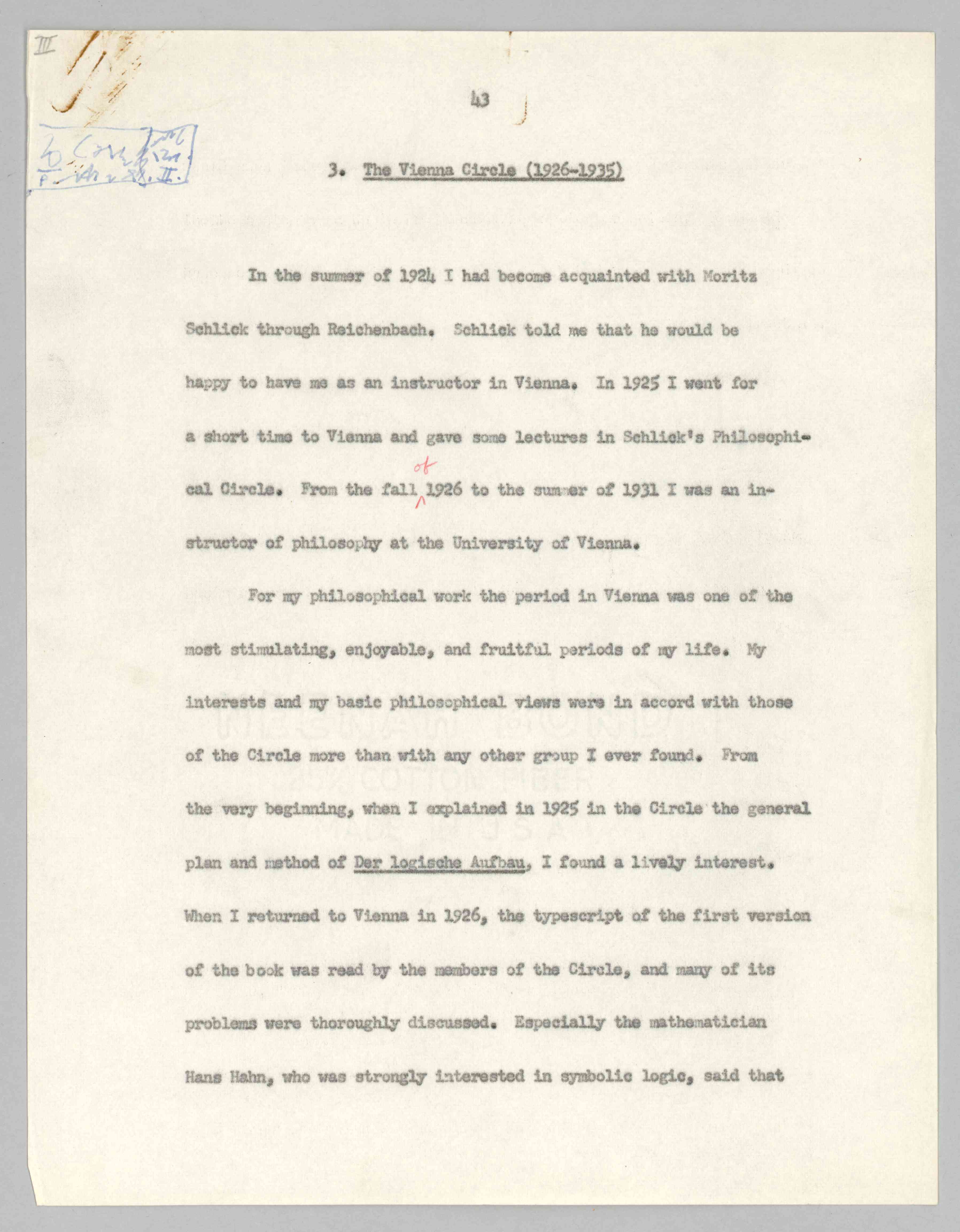 ASP Archive>Carnap Collection>Box 91 >Folder 21b Schilpp Autobiography Ex. III, Part I, New Version᠄ 3. ''The Vienna Circle'' (Item 1b), 1958 (1958)
