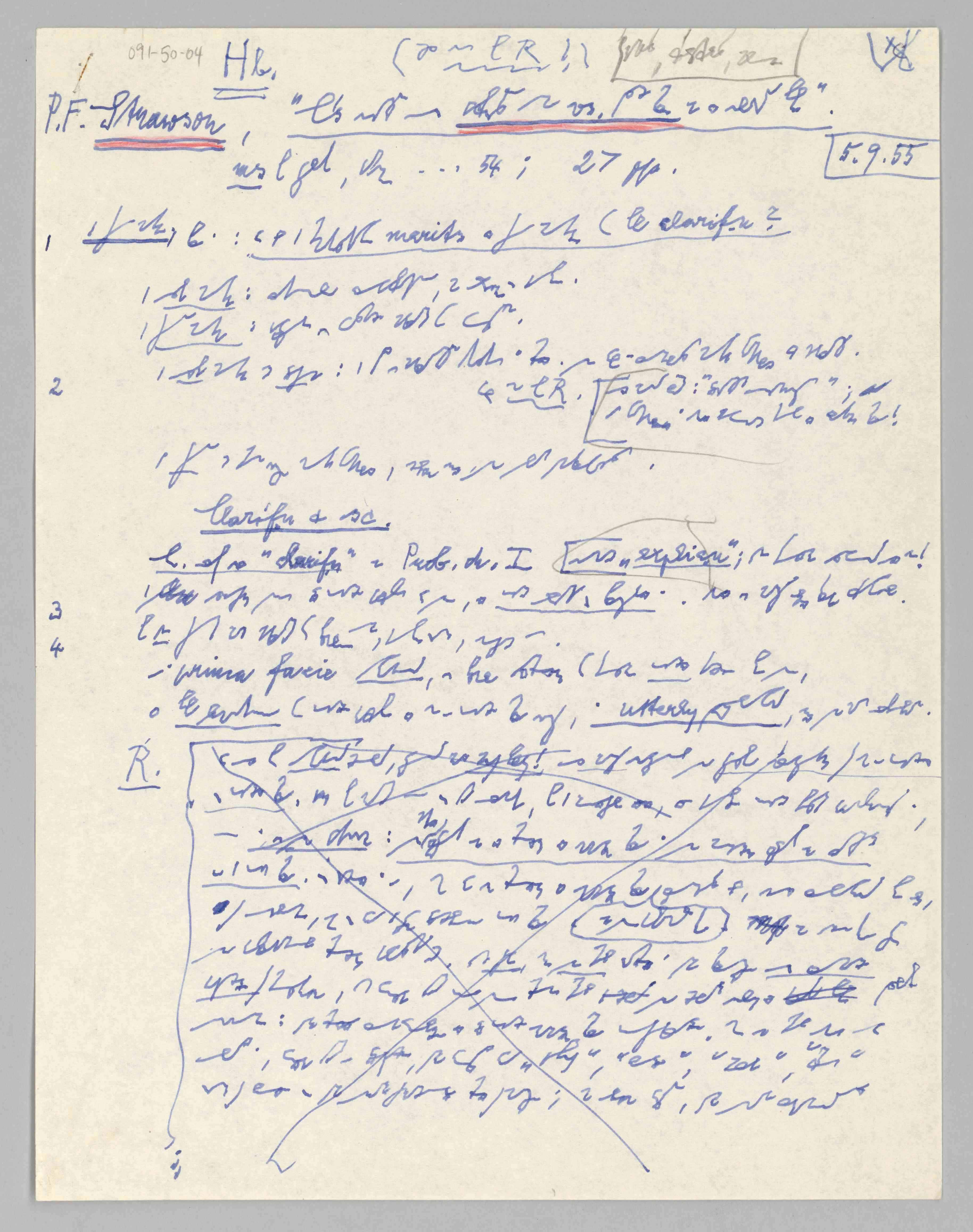 ASP Archive>Carnap Collection>Box 91 >Folder 50a Reply to Strawson, Shorthand Draft (Items 1-4), 1955-1961 (1955/1961)