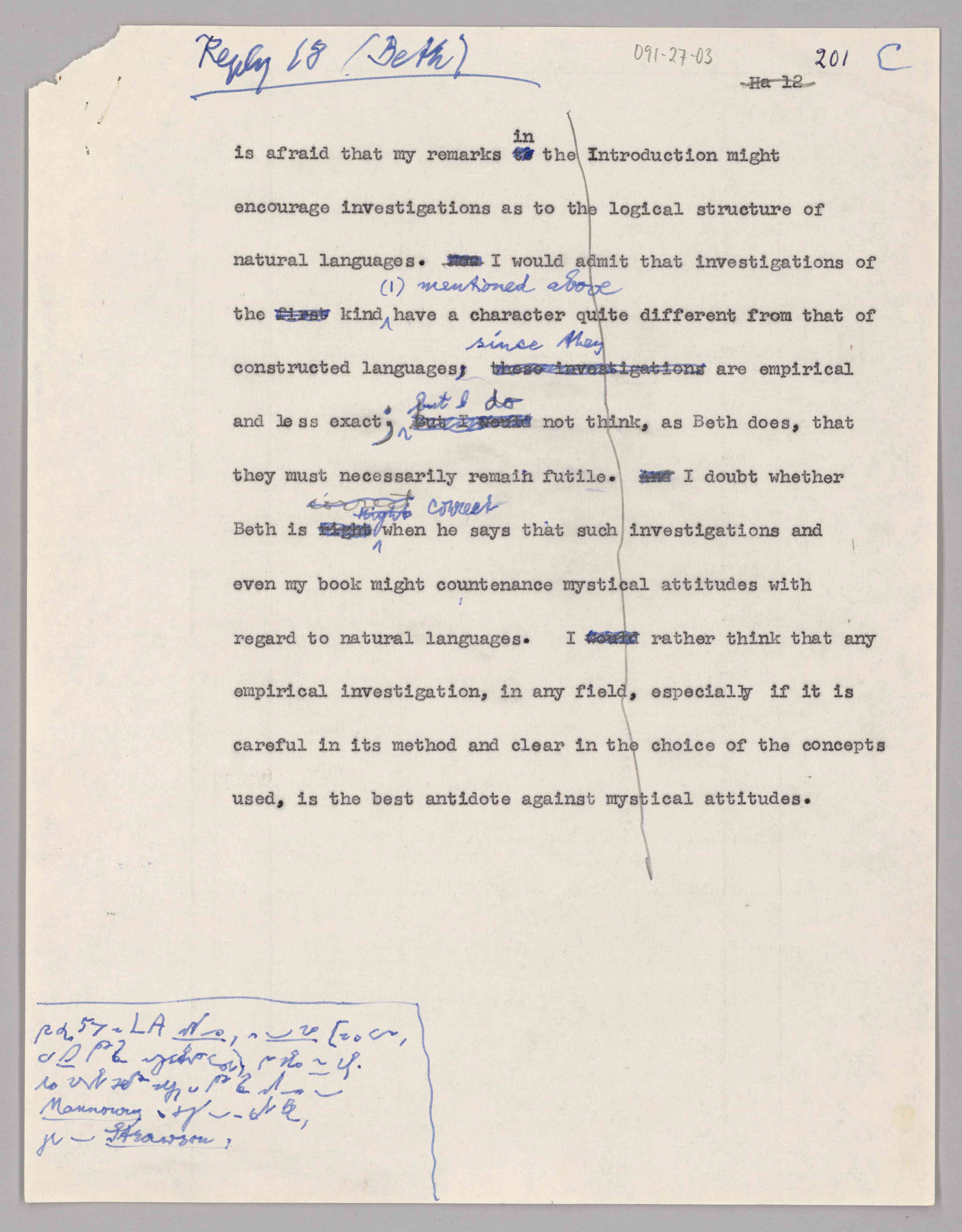 ASP Archive>Carnap Collection>Box 91 >Folder 27 Reply to Beth, 1955-1957 (1955/1957)