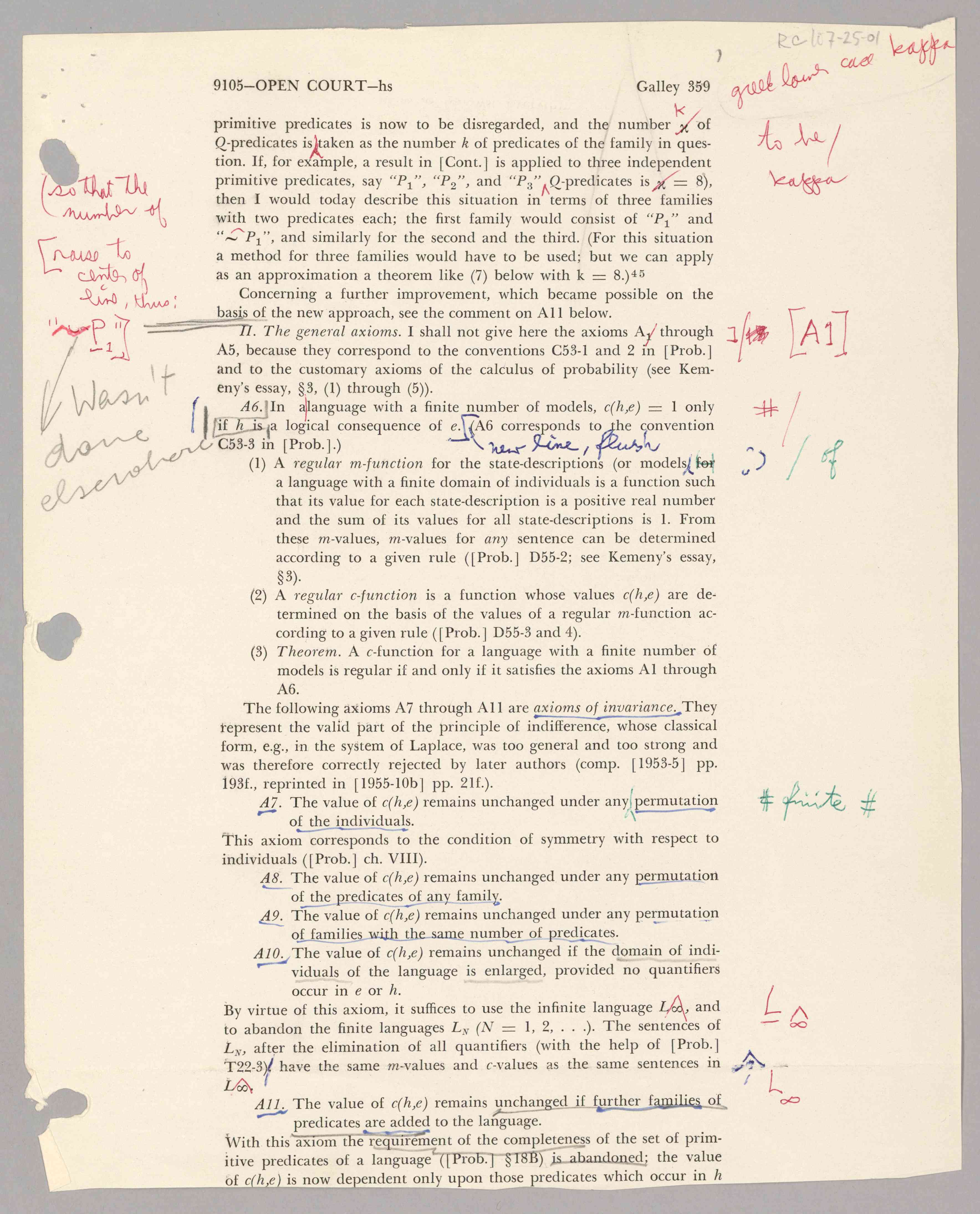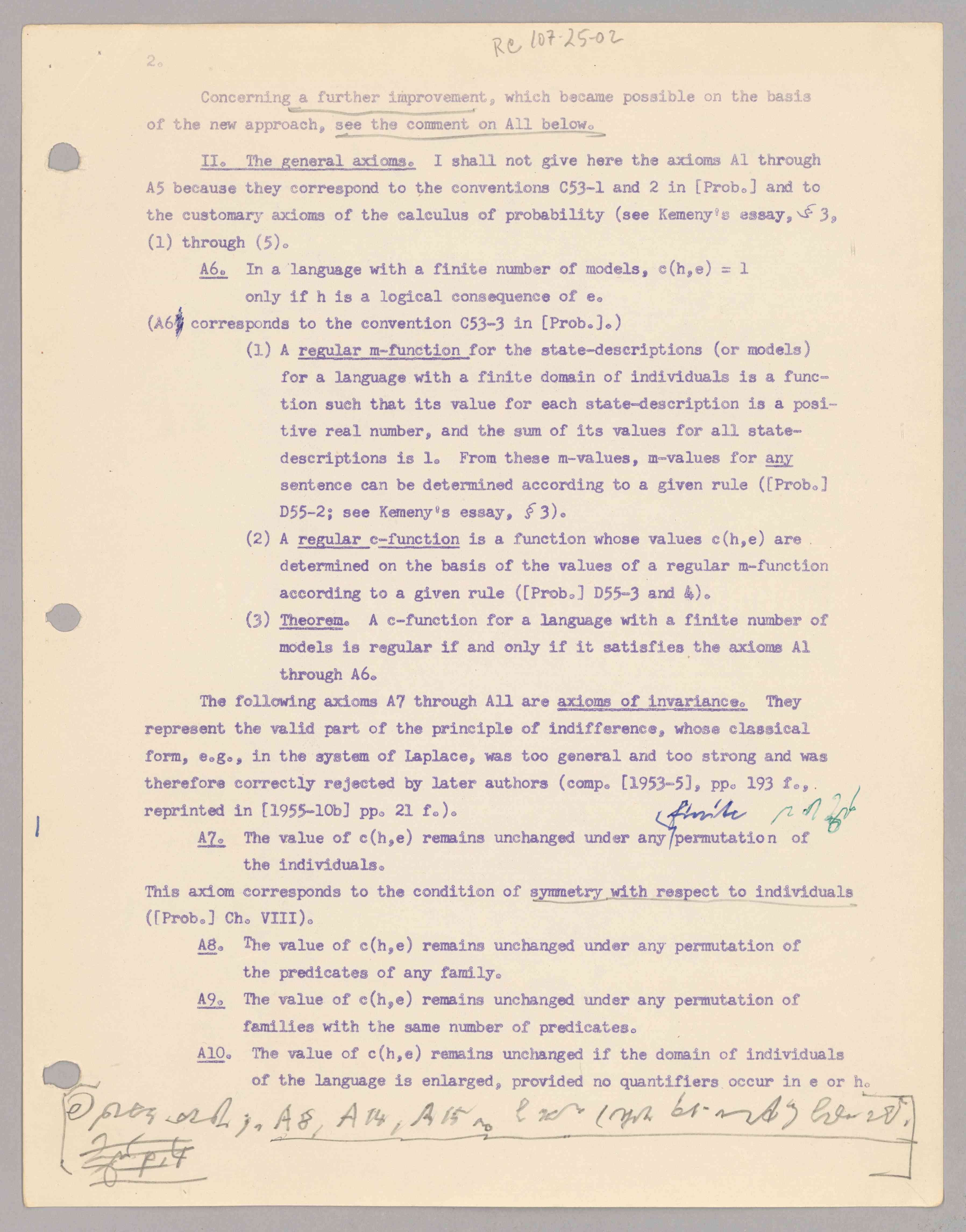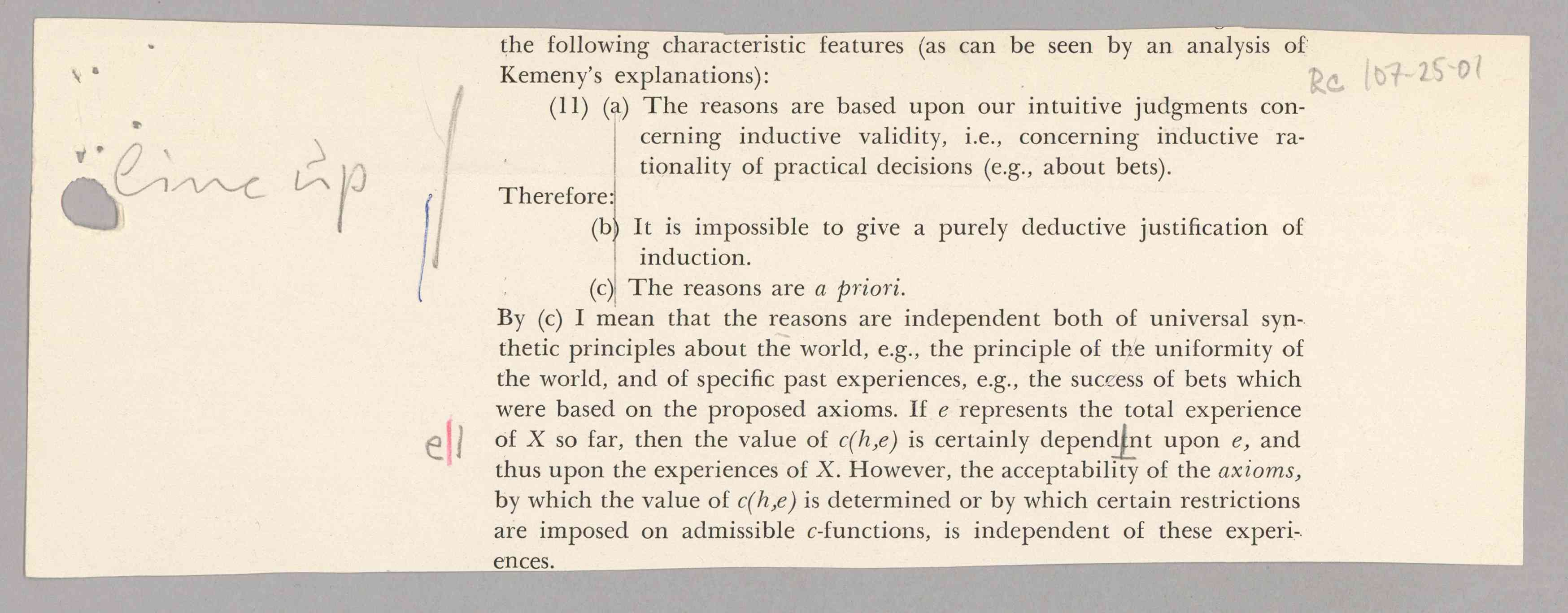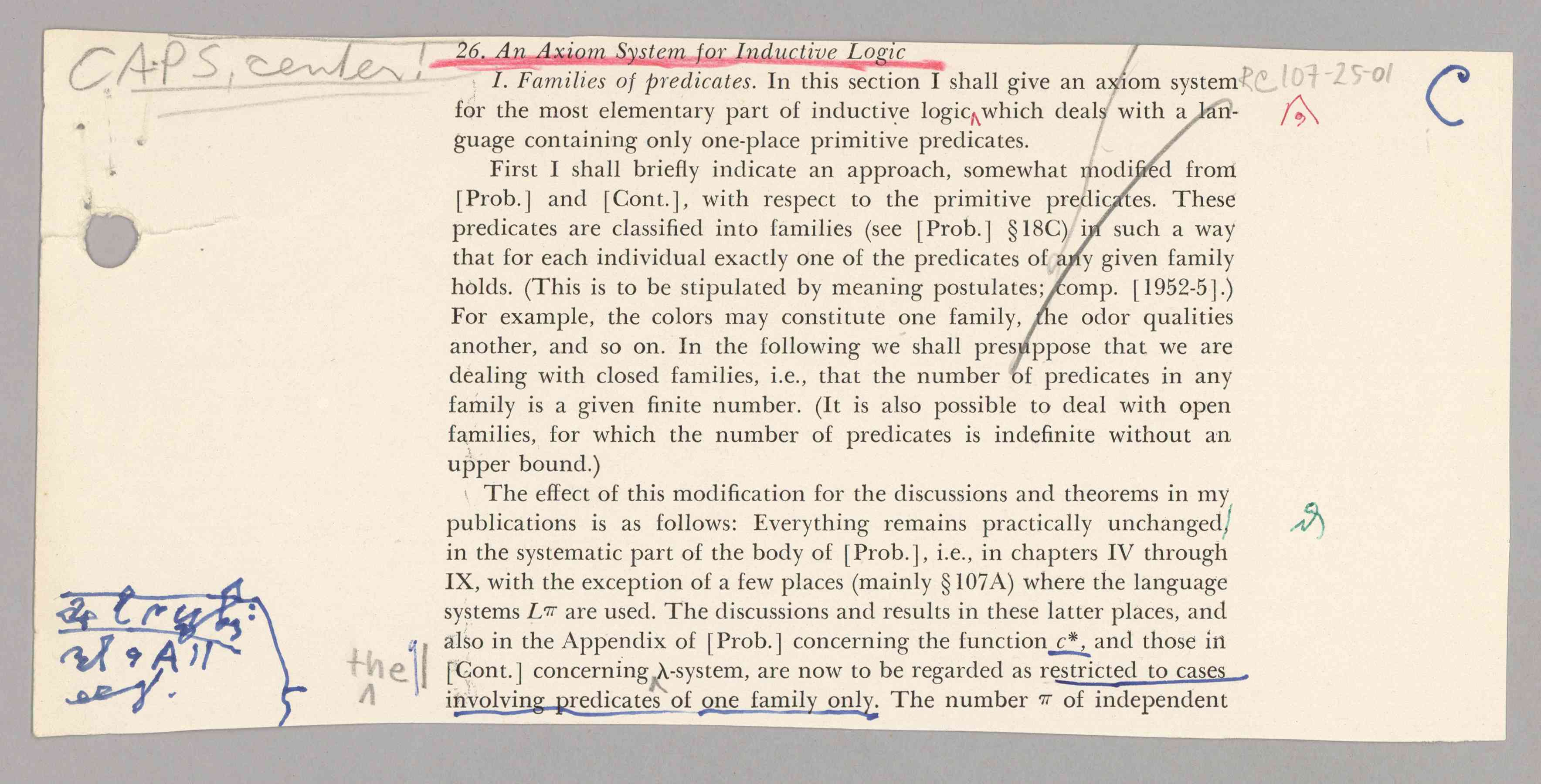 ASP Archive>Carnap Collection>Box 107 >Folder 25 ''An Axiom System for Inductive Logic''᠄ Reply 26 for Schilpp-Volume