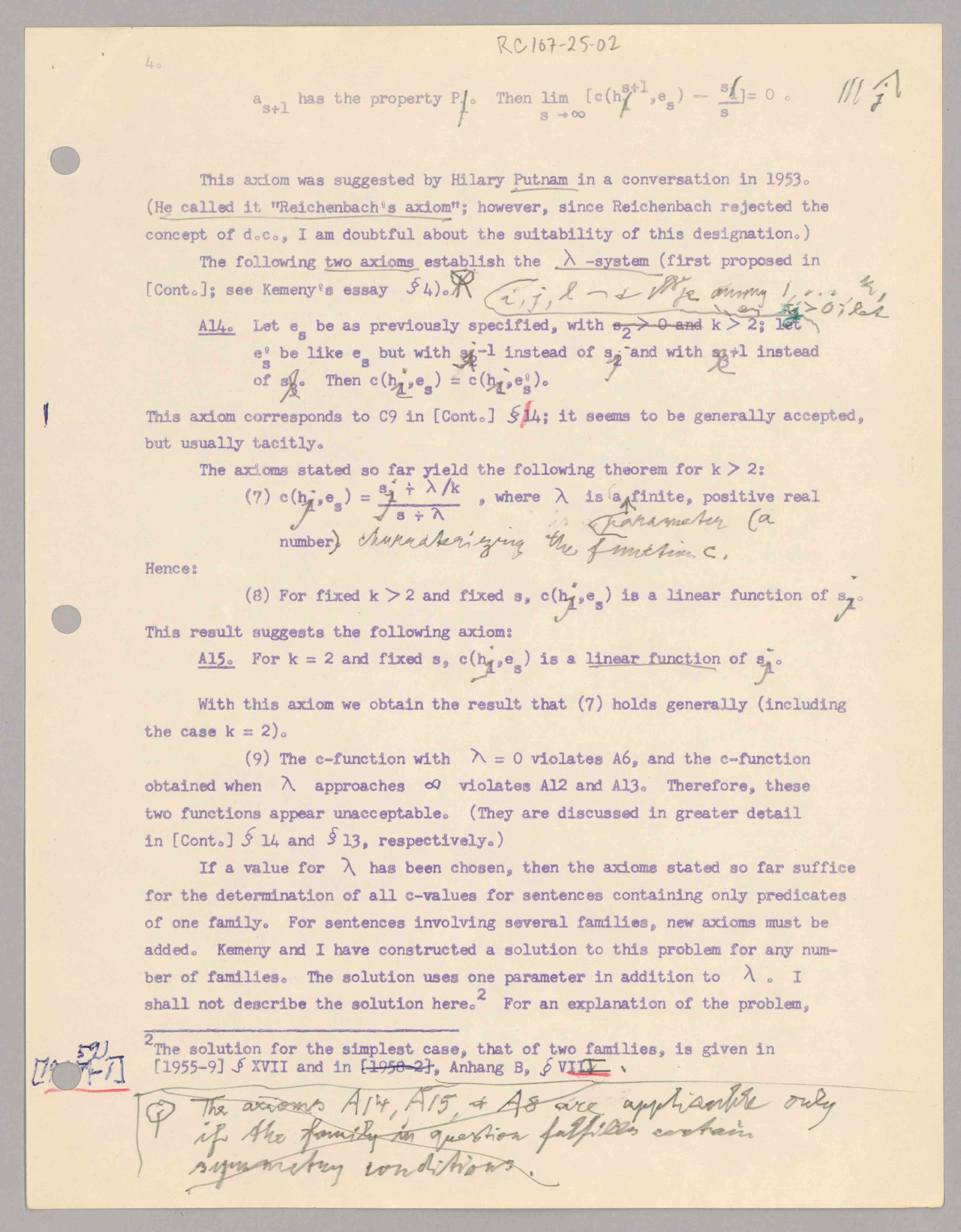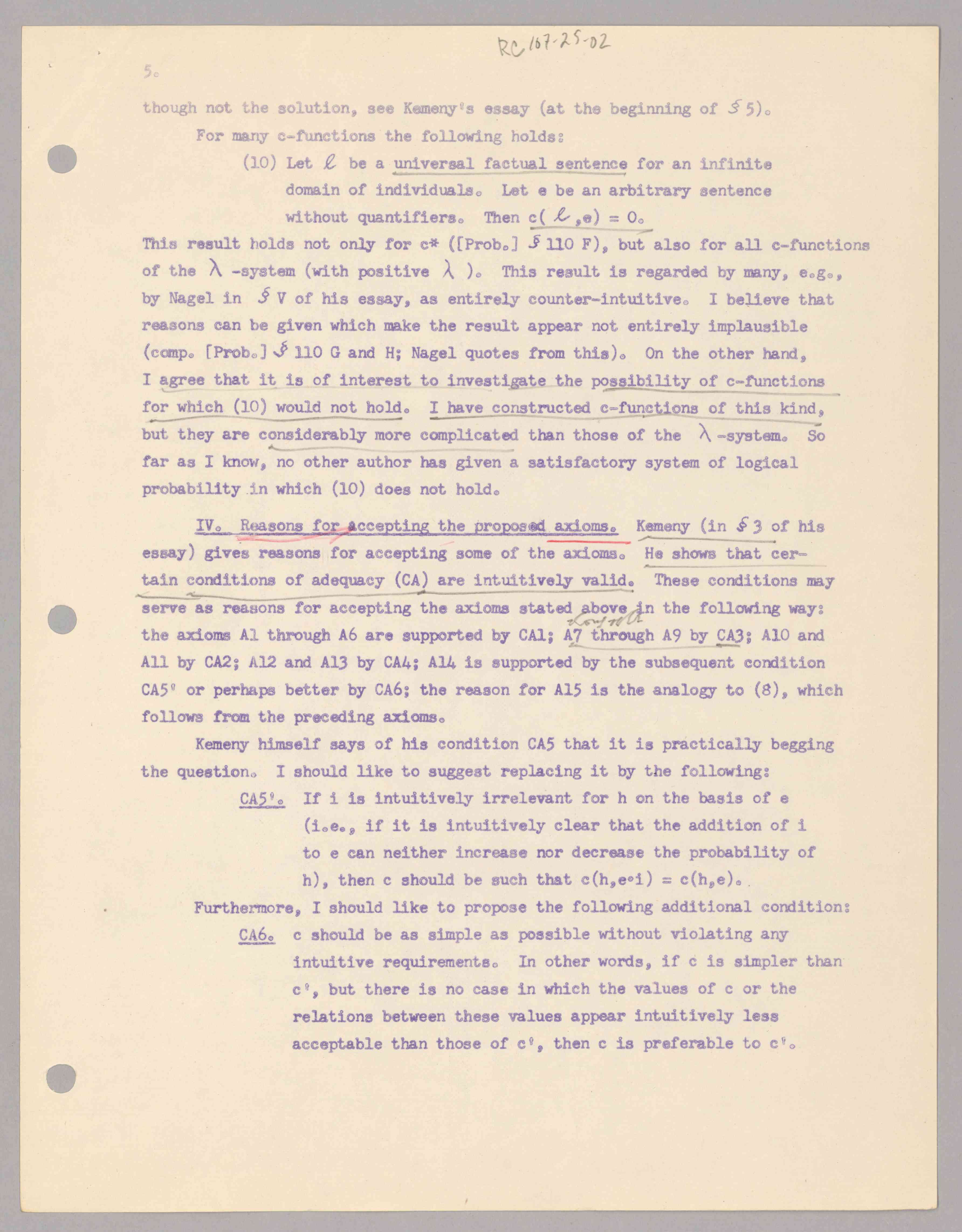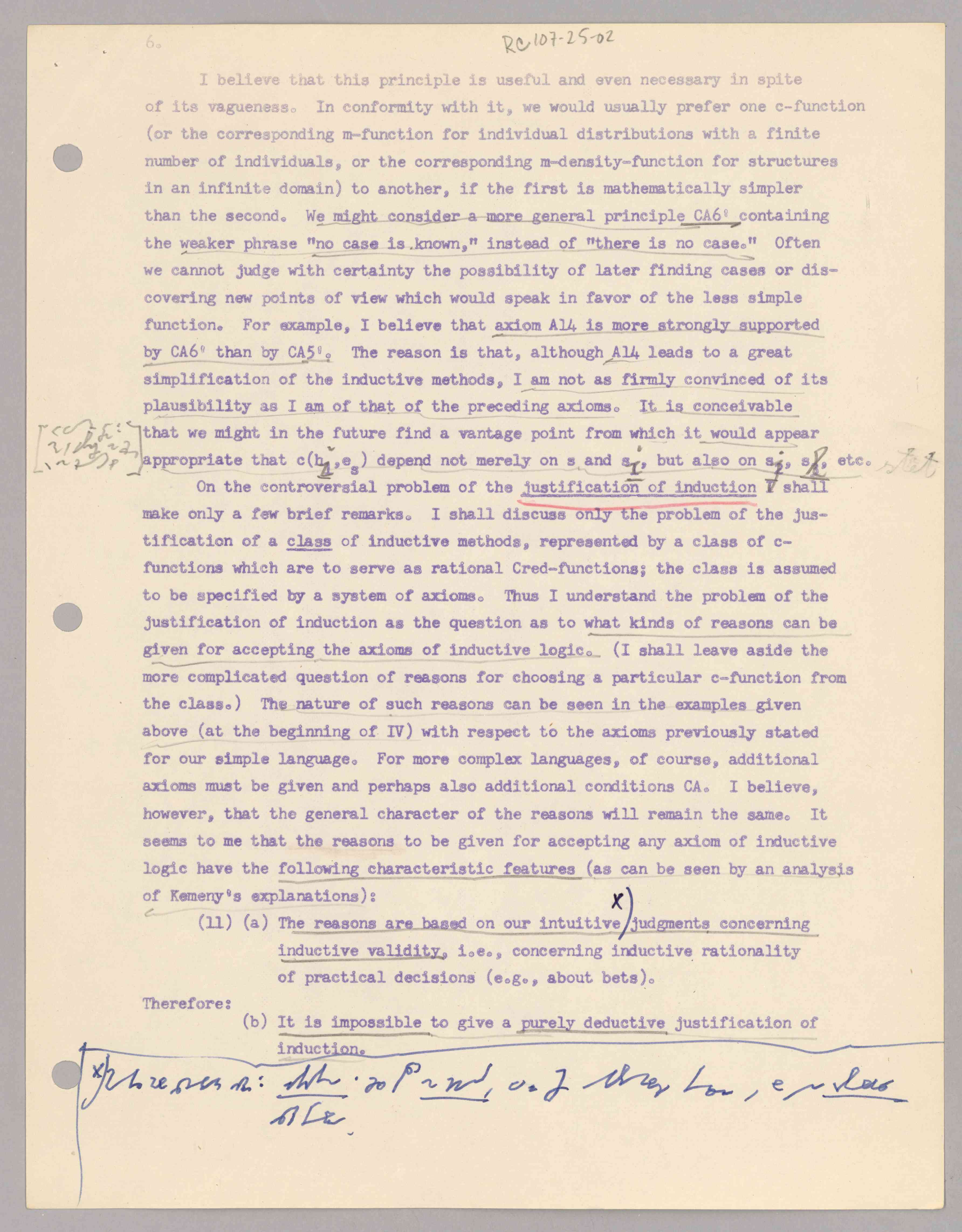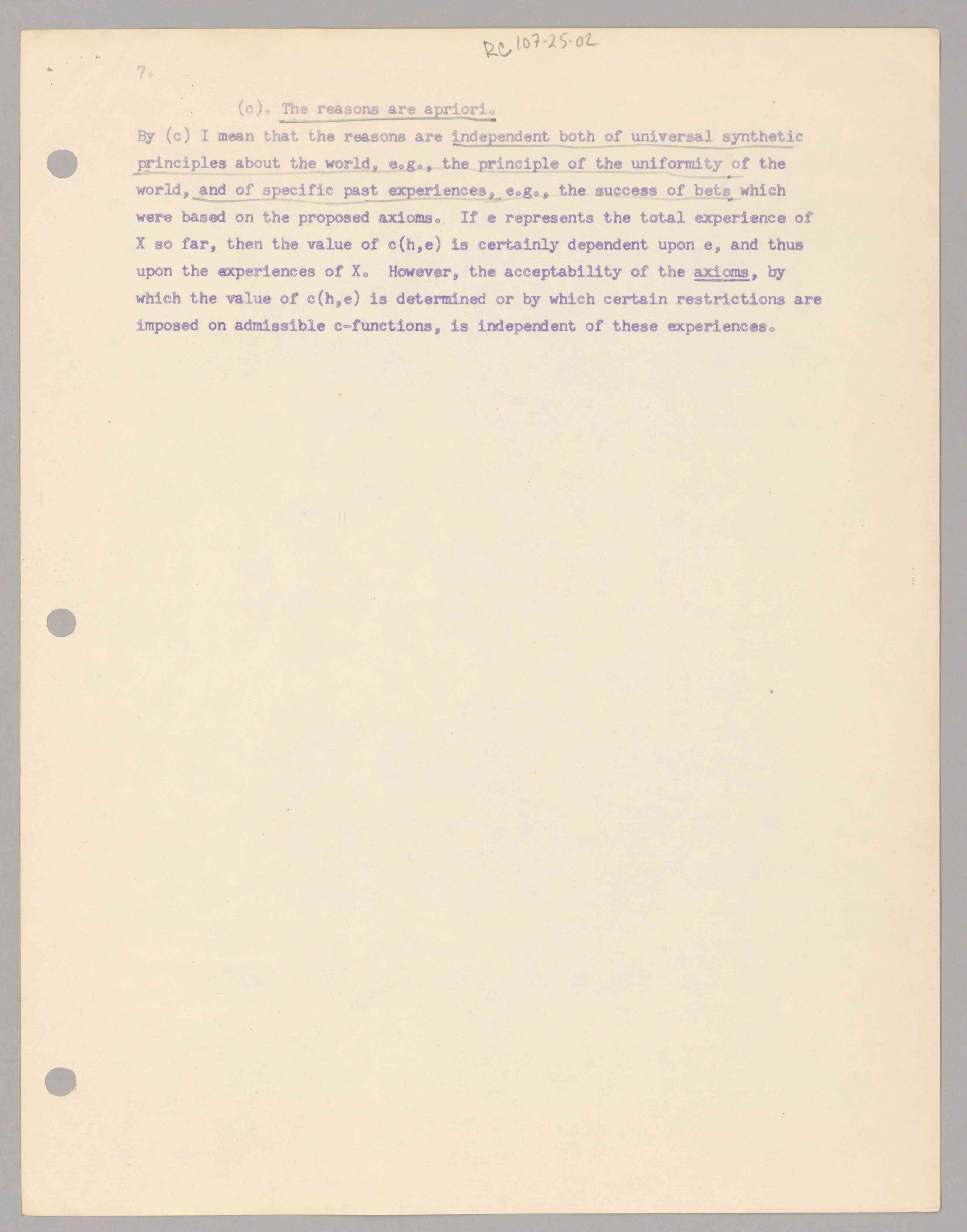ASP Archive>Carnap Collection>Box 107 >Folder 25 ''An Axiom System for Inductive Logic''᠄ Reply 26 for Schilpp-Volume