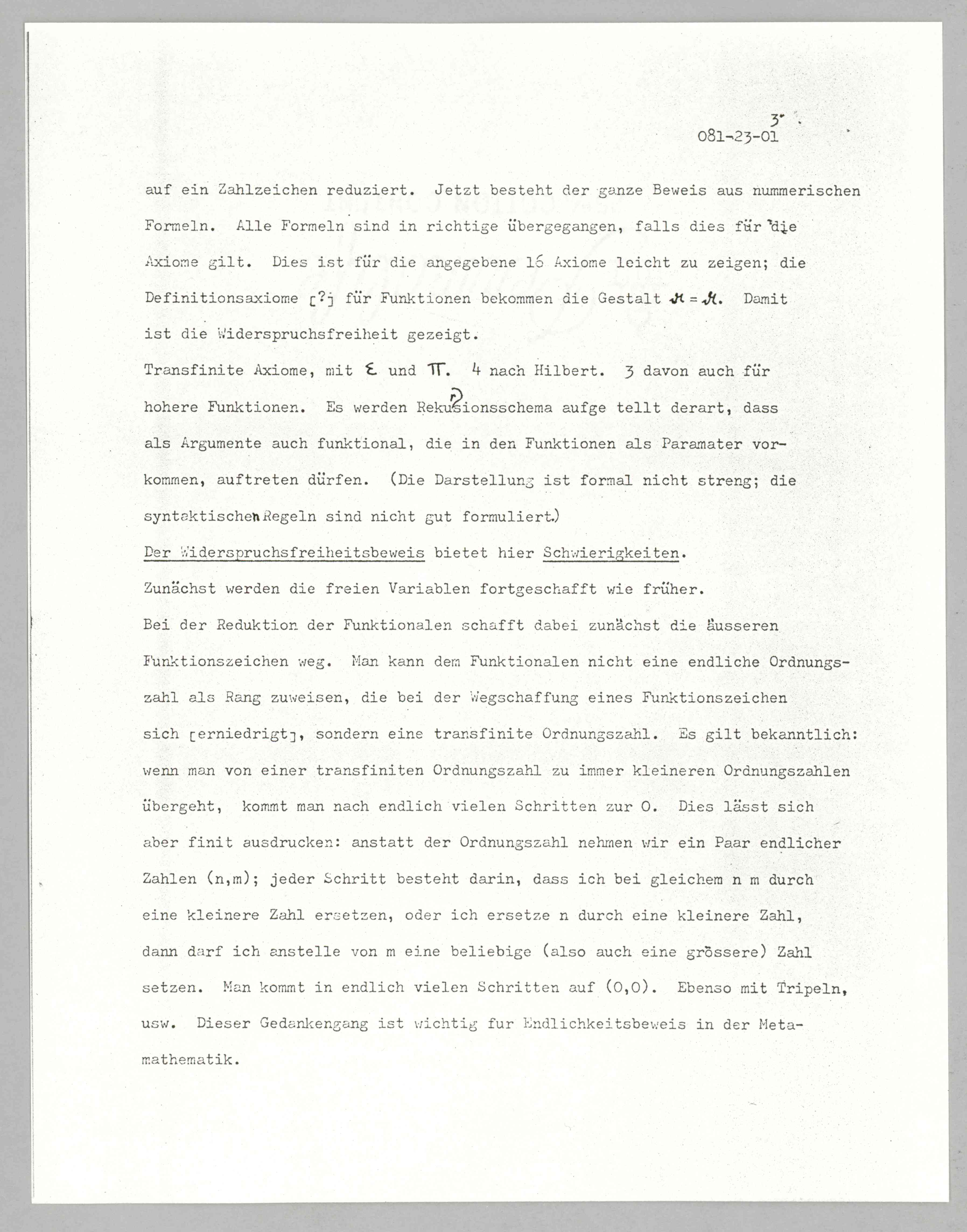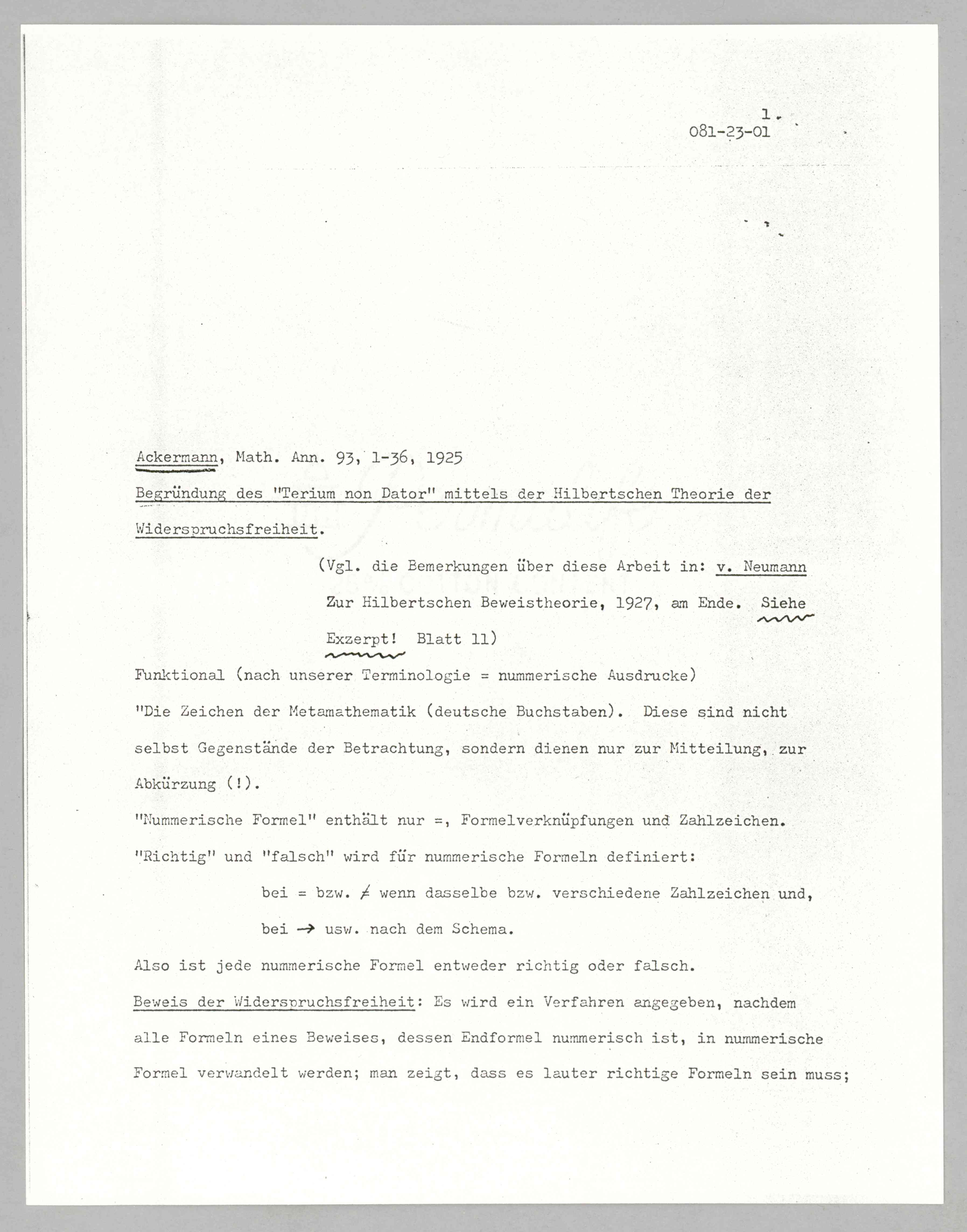 ASP Archive>Carnap Collection>Box 81 >Folder 23 Excerpts Ackermann᠄ ''Begründung des 'Terium non Dator' mittels der Hilbertschen Theorie der Widerspruchsfreiheit,'' 1925 (1925)