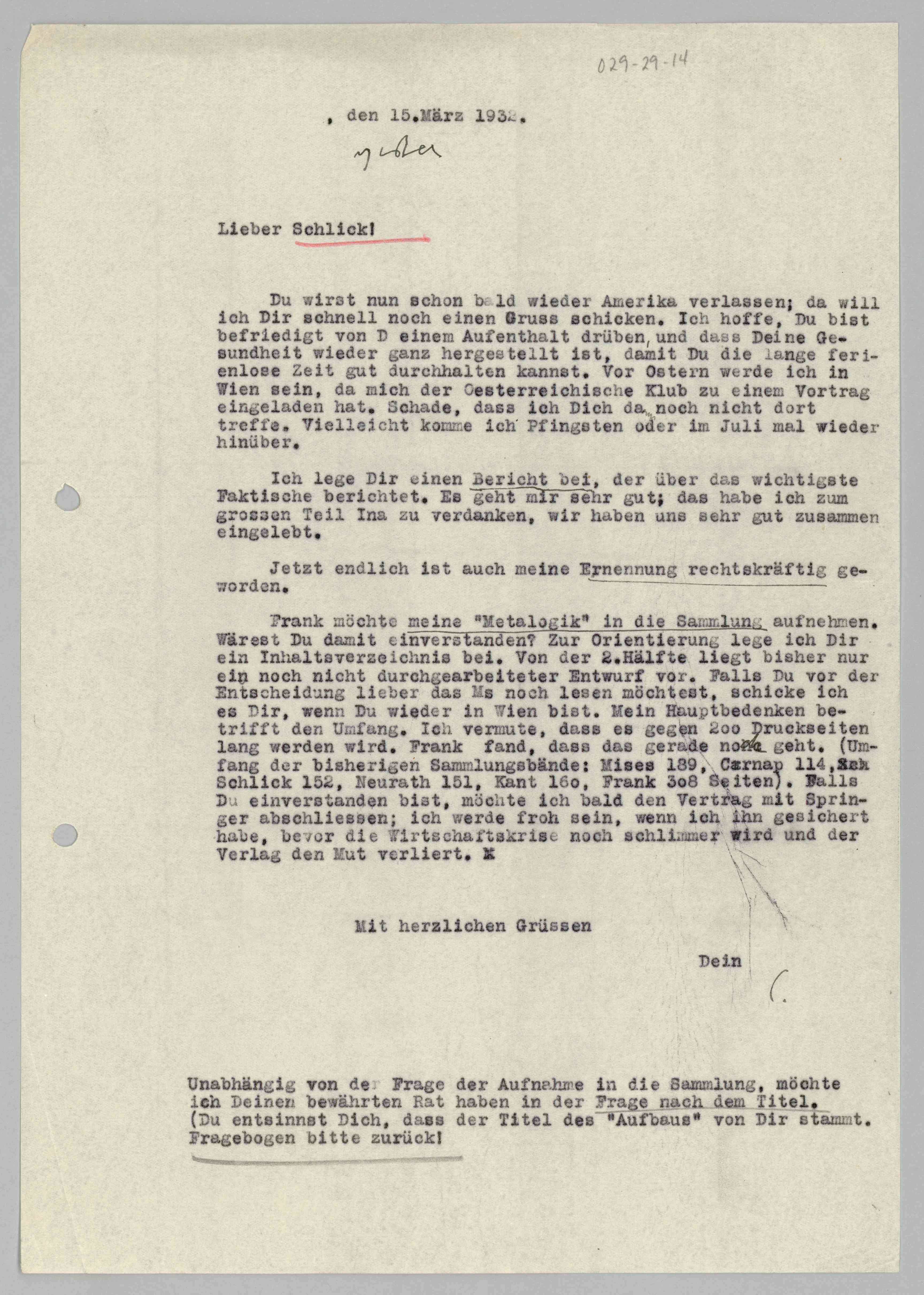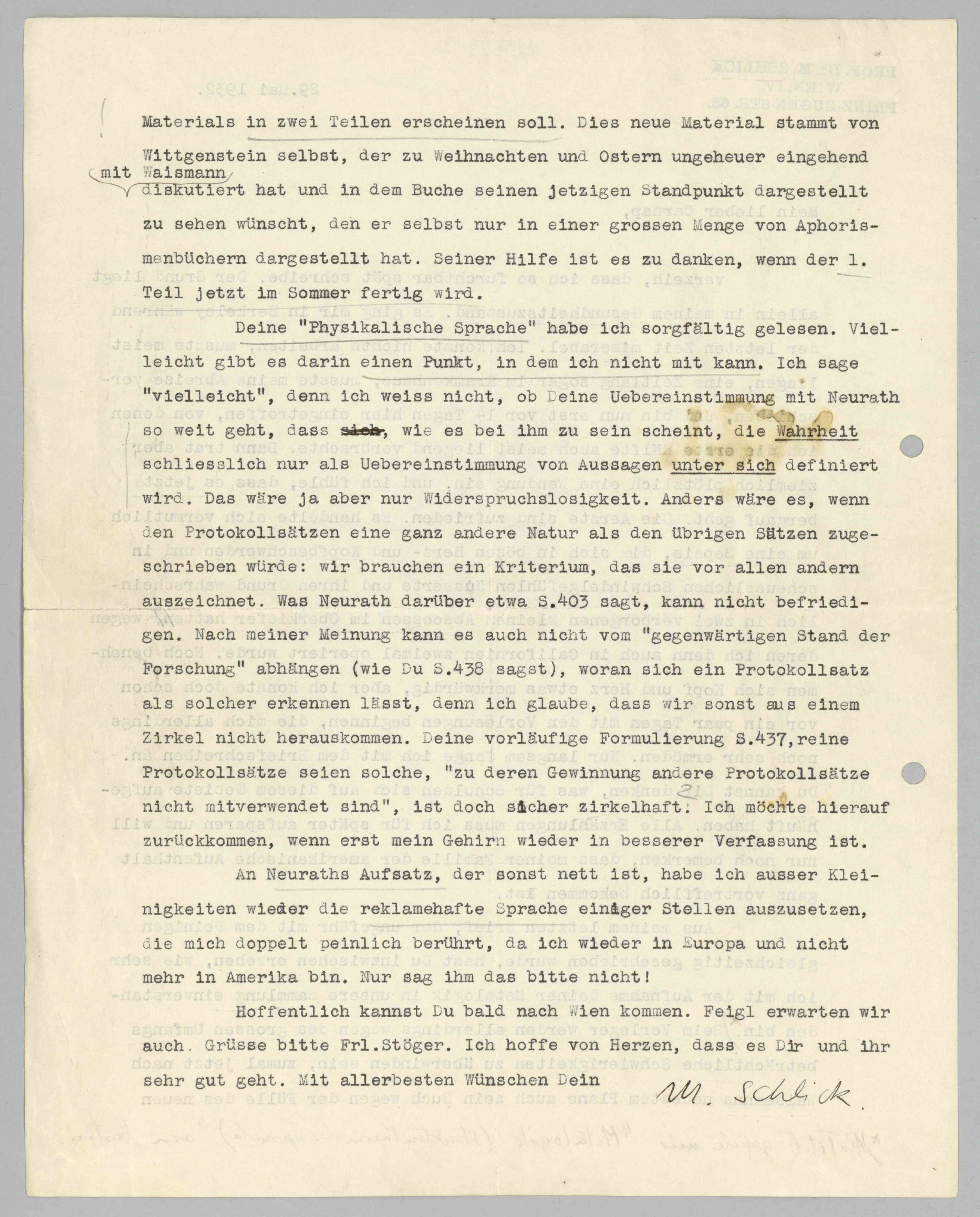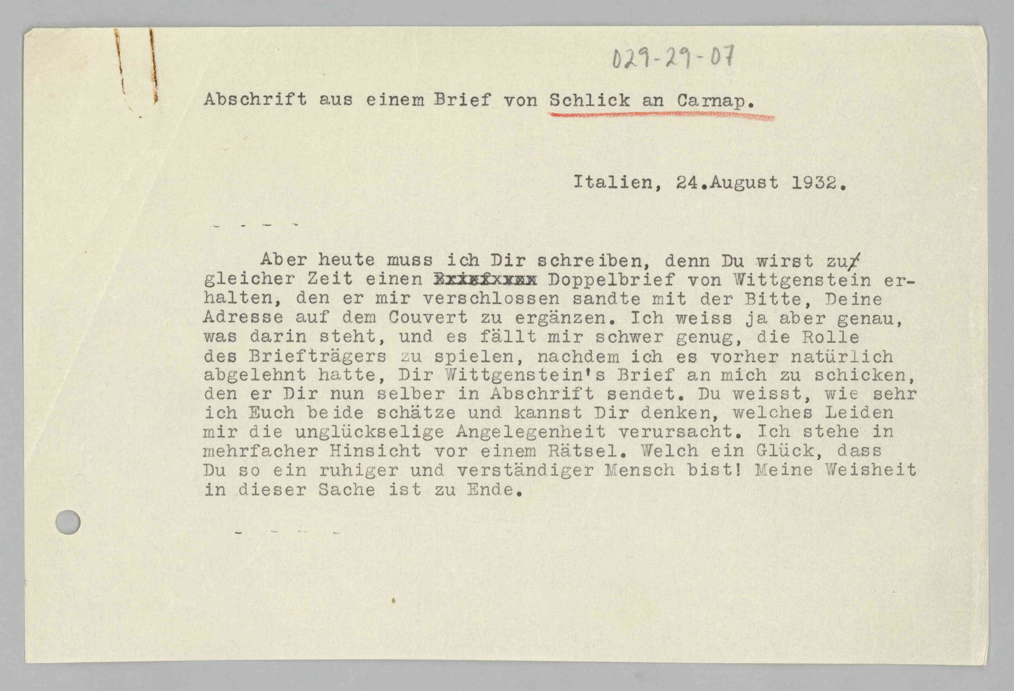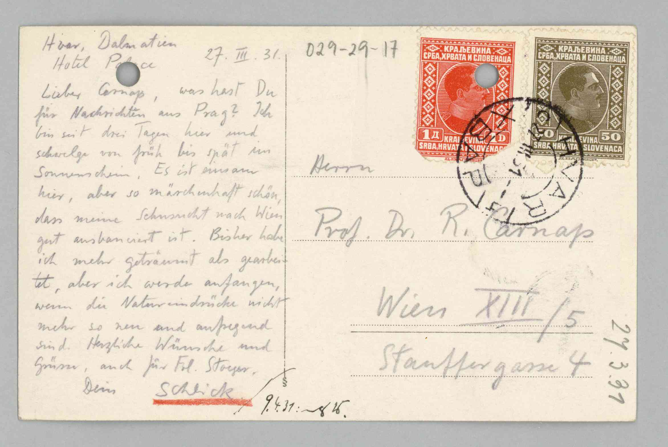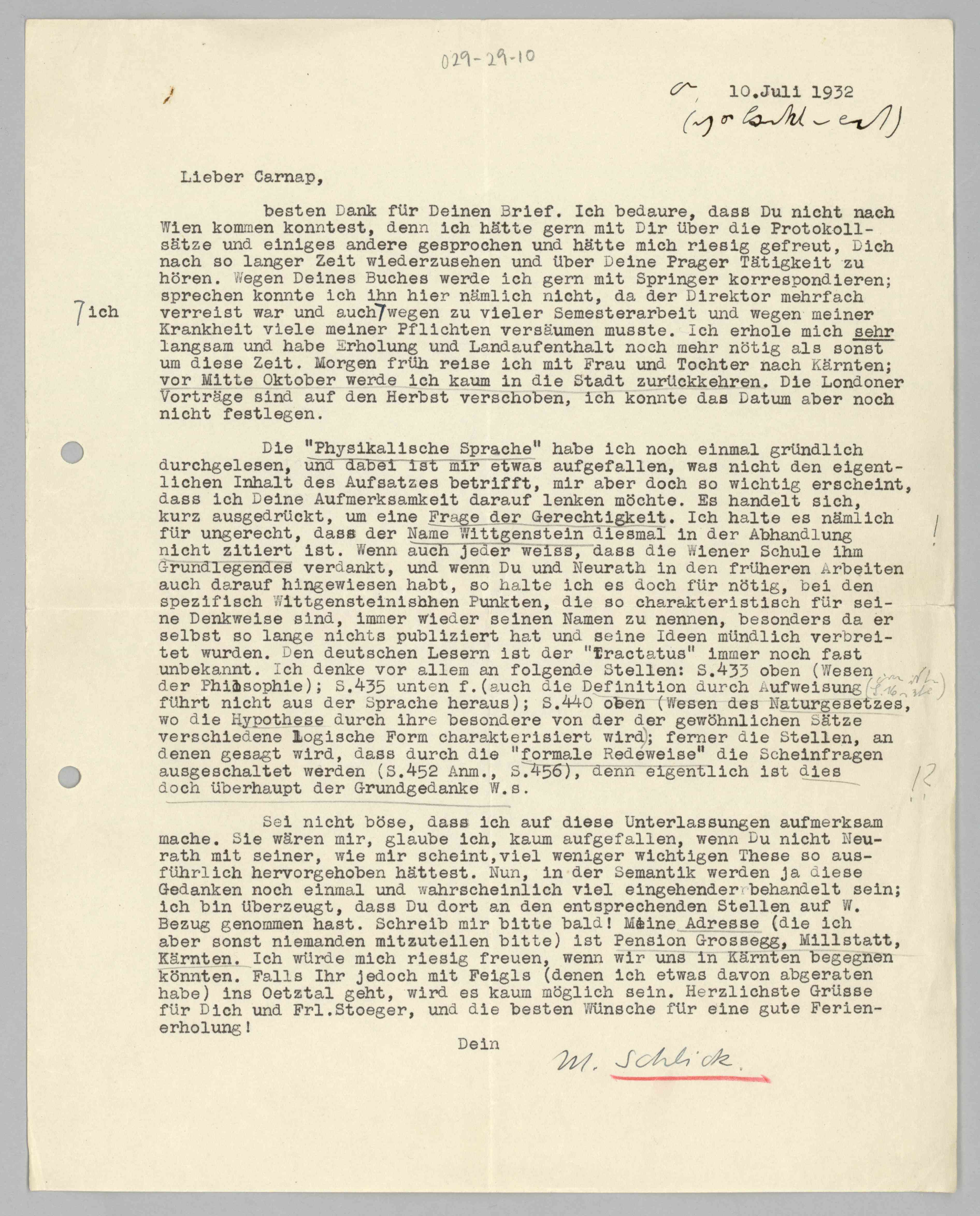 ASP Archive>Carnap Collection>Box 29 Early Scientific Correspondence (until 1935)>Folder 29 Schlick, Moritz, 1931-1932 (1931/1932)