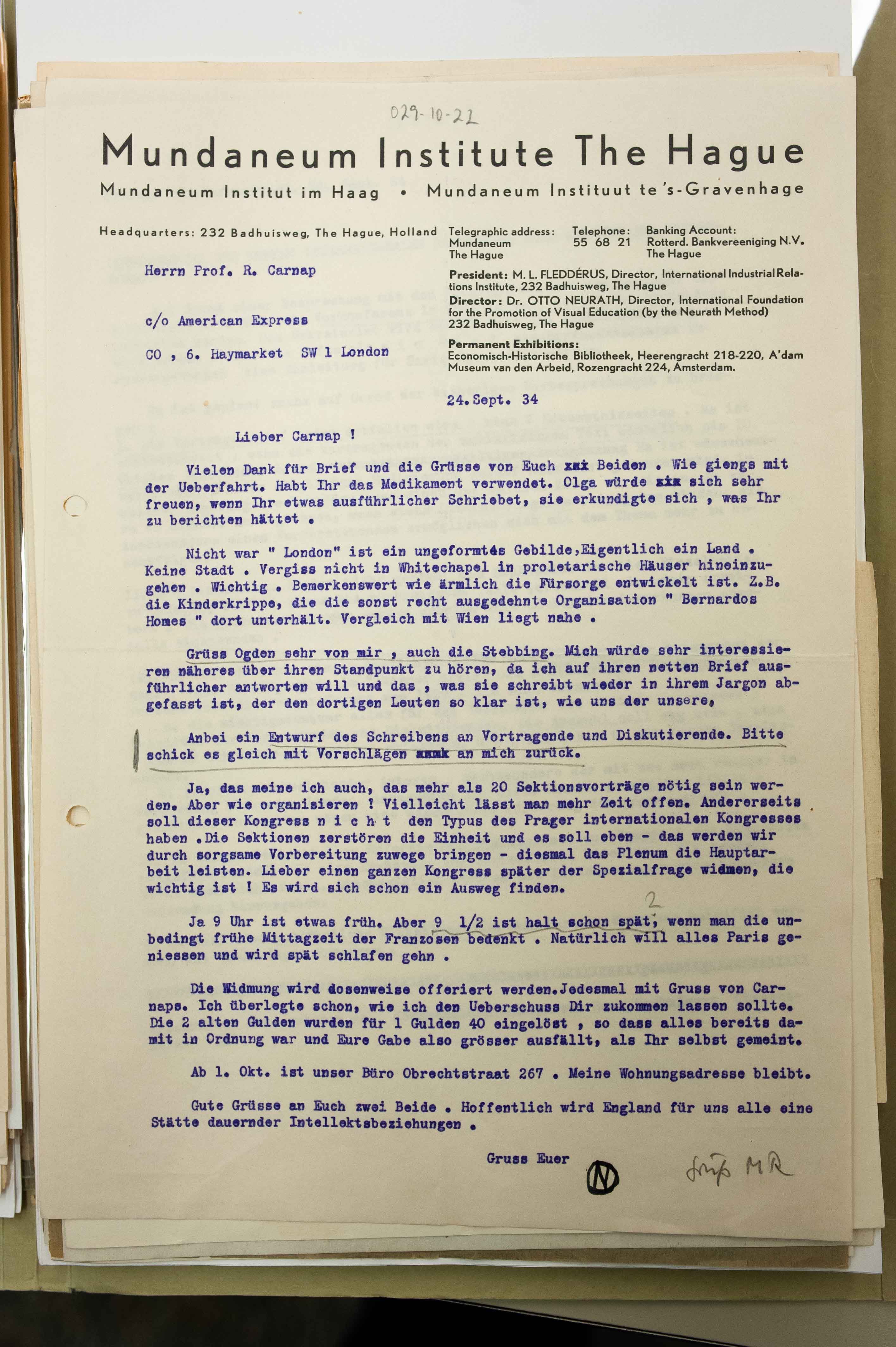 Neurath to Carnap, Ina Carnap, 1934-09-24 (L) (Original)