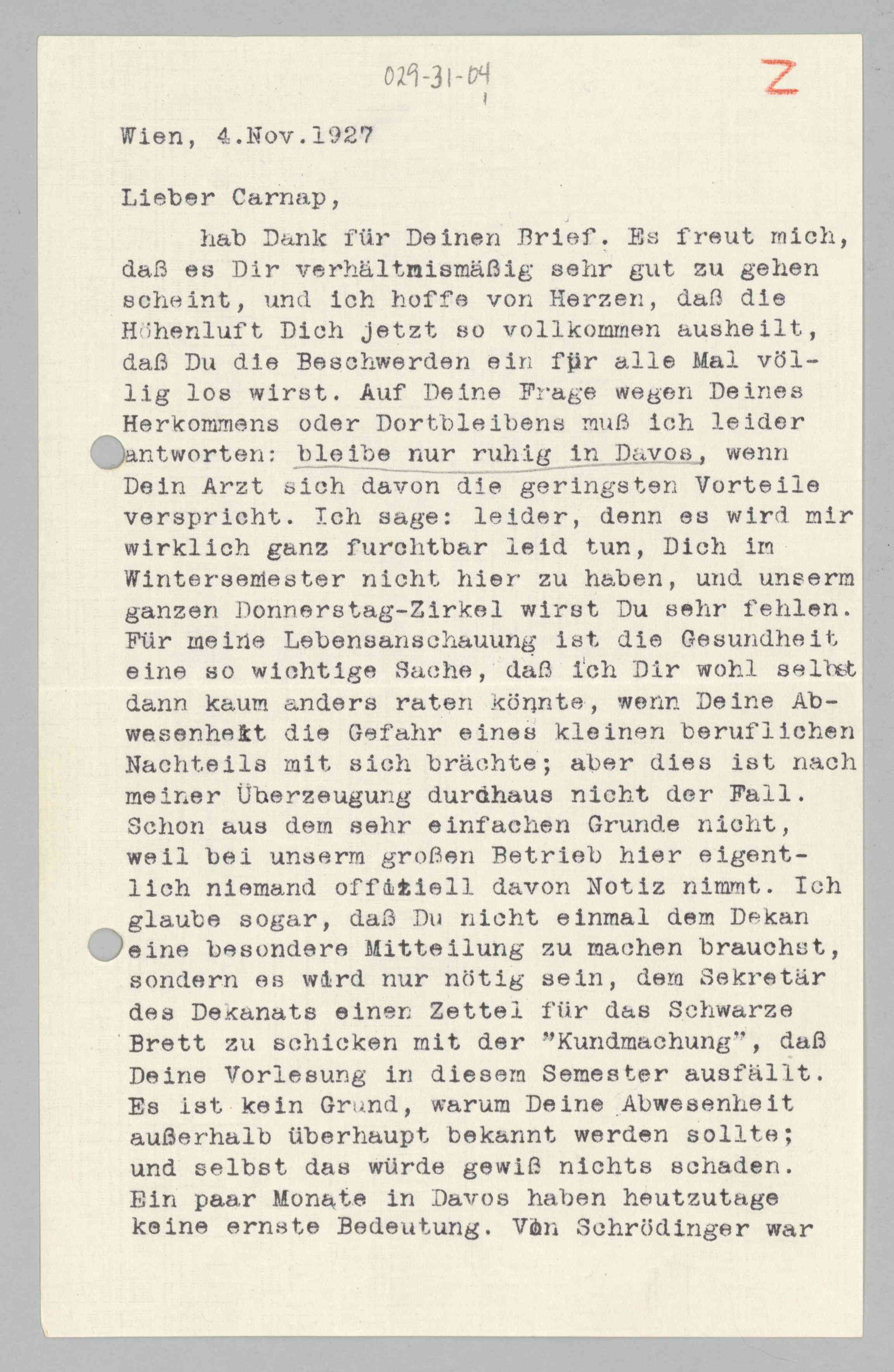 Schlick to Carnap, 1927-11-04 (L) (Original)