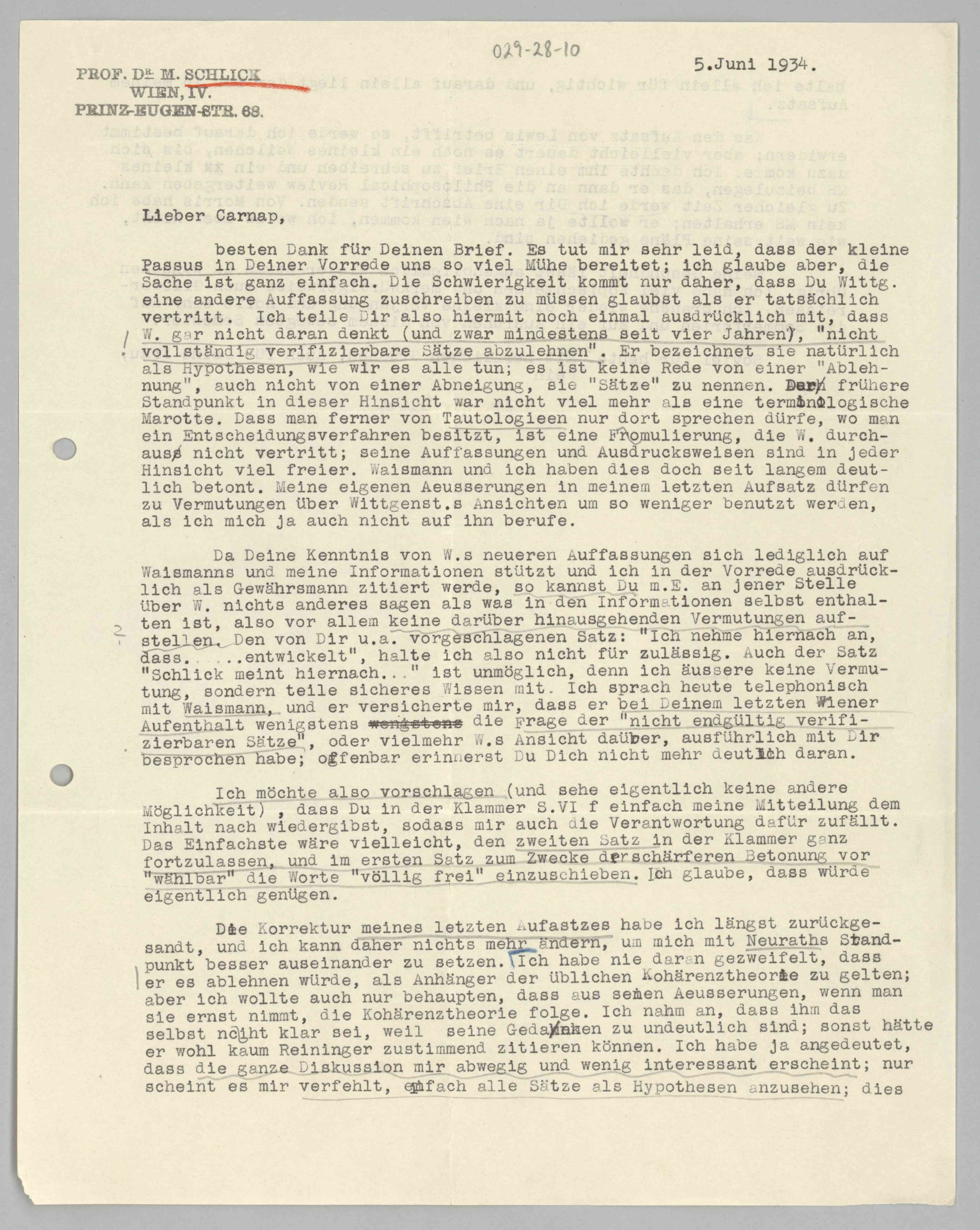 Schlick to Carnap, 1934-06-05 (L) (Original)