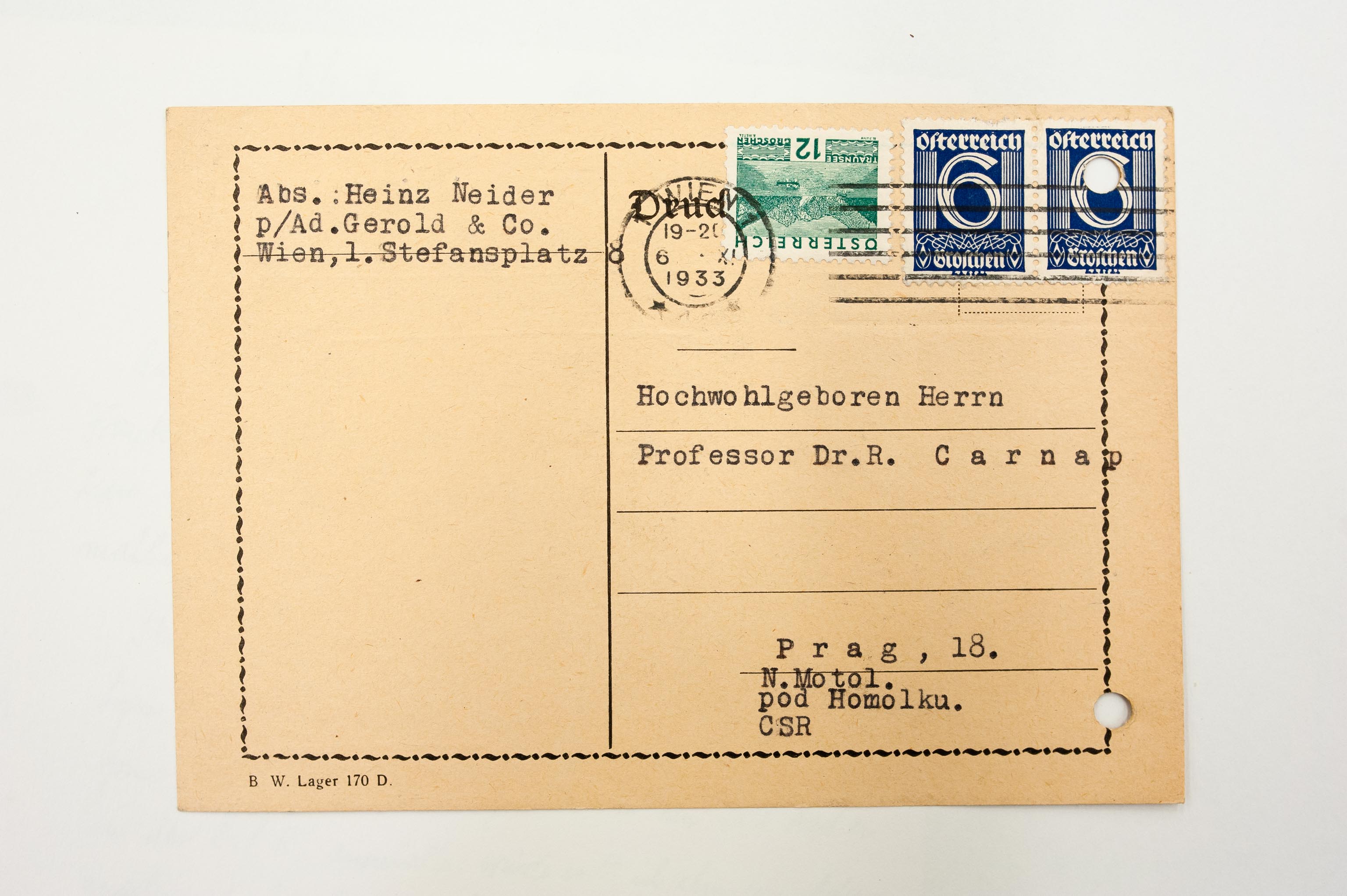 Neider to Carnap, 1933-11-06 (L) (Original)