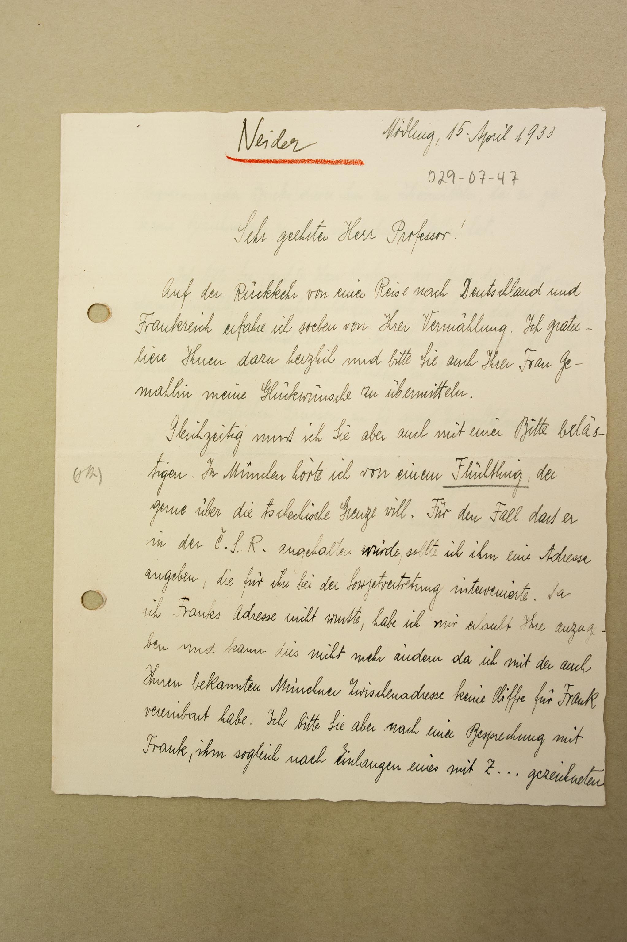 Neider to Carnap, 1933-04-15 (L) (Original)
