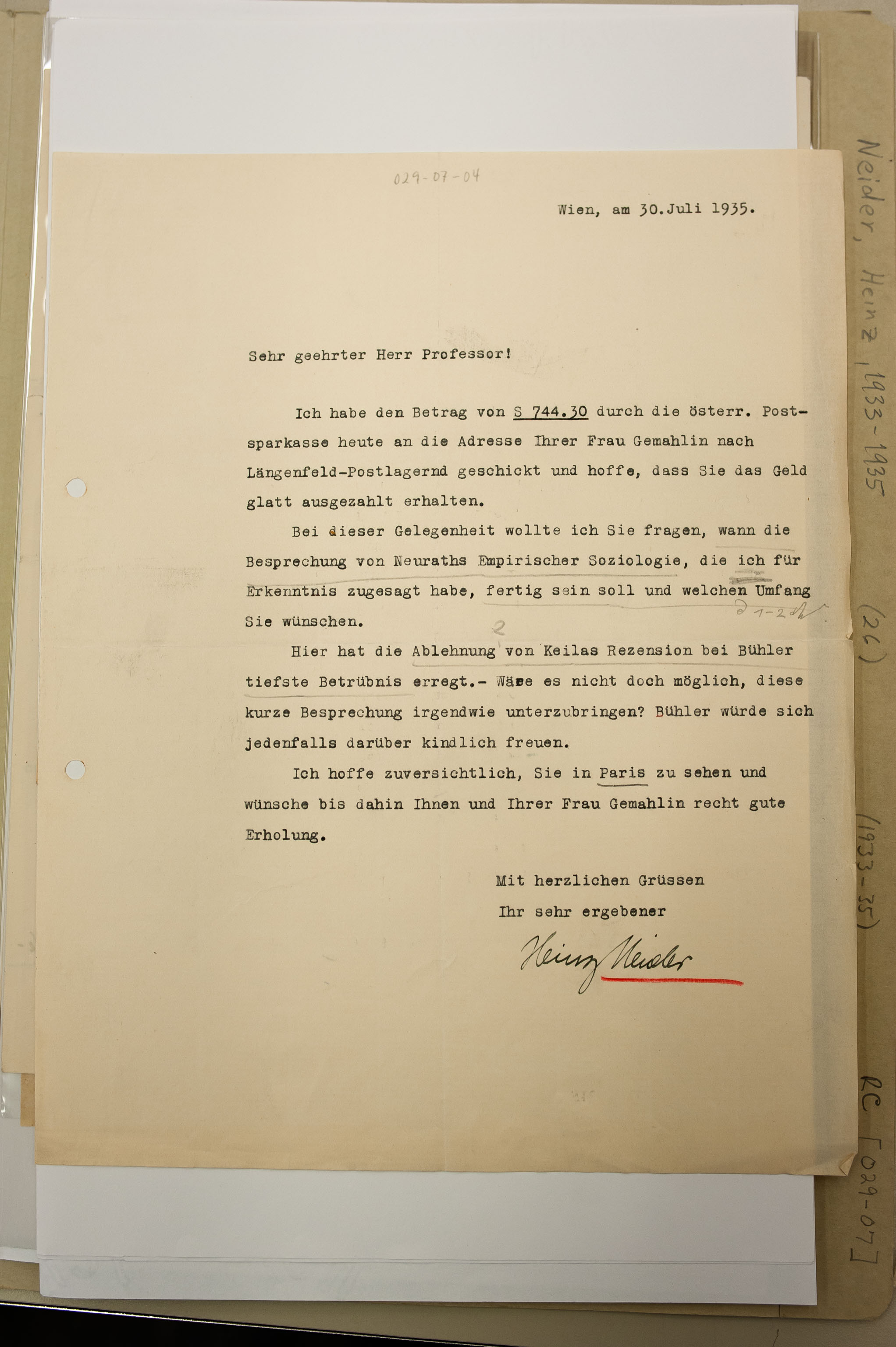 Neider to Carnap, 1935-07-30 (L) (Original)
