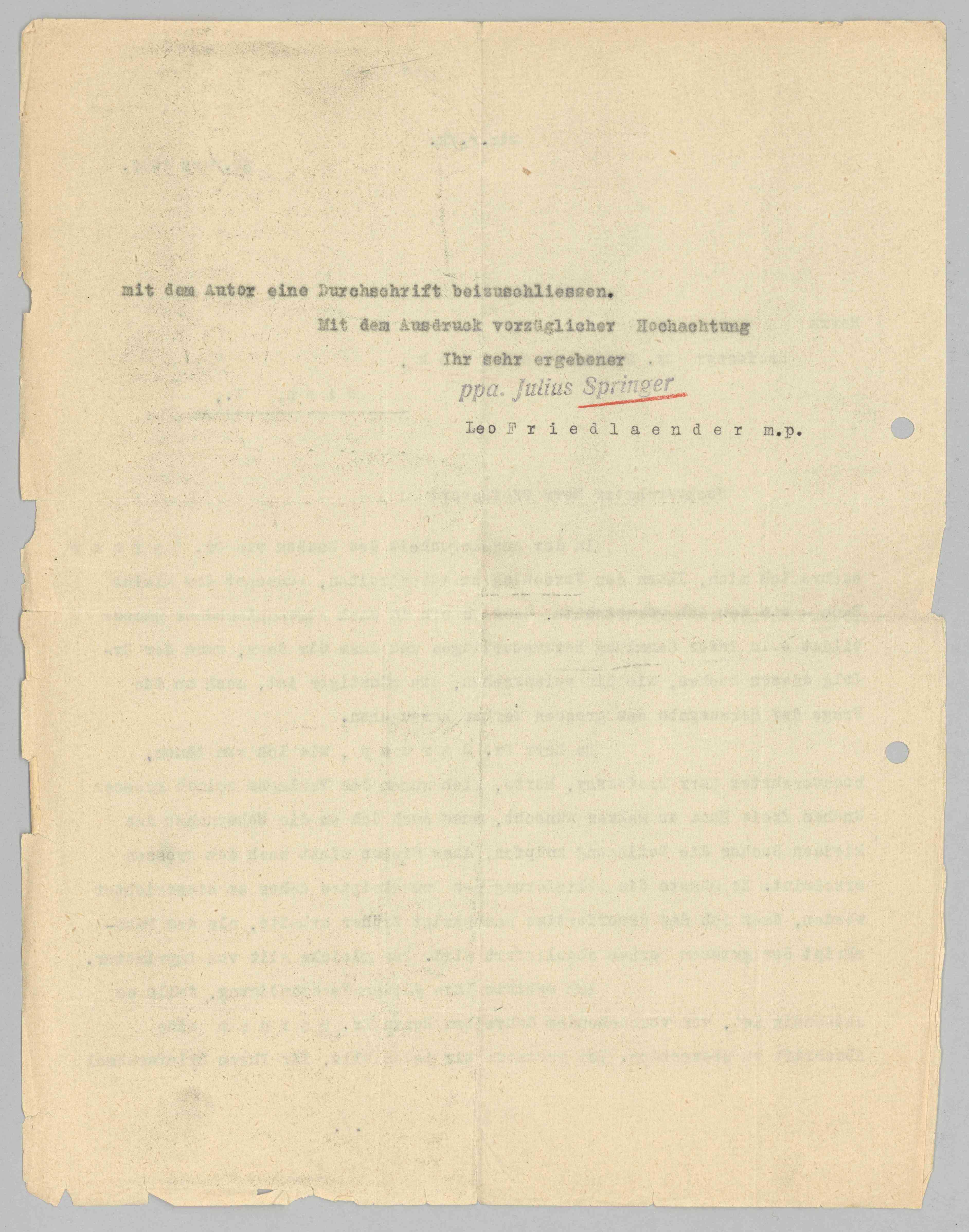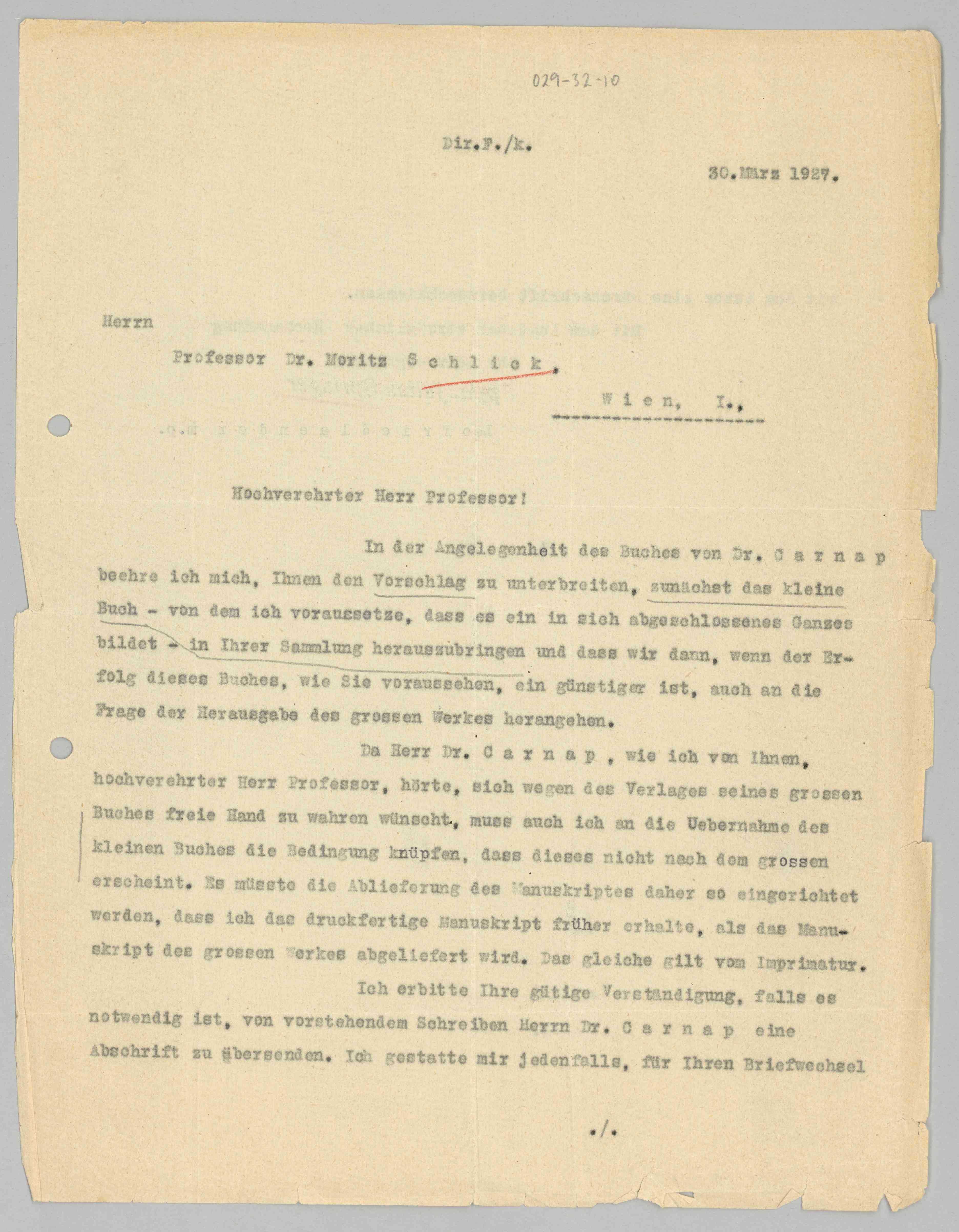 Julius Springer, Leo Friedlaender to Schlick, 1927-03-30 (L) (Original)