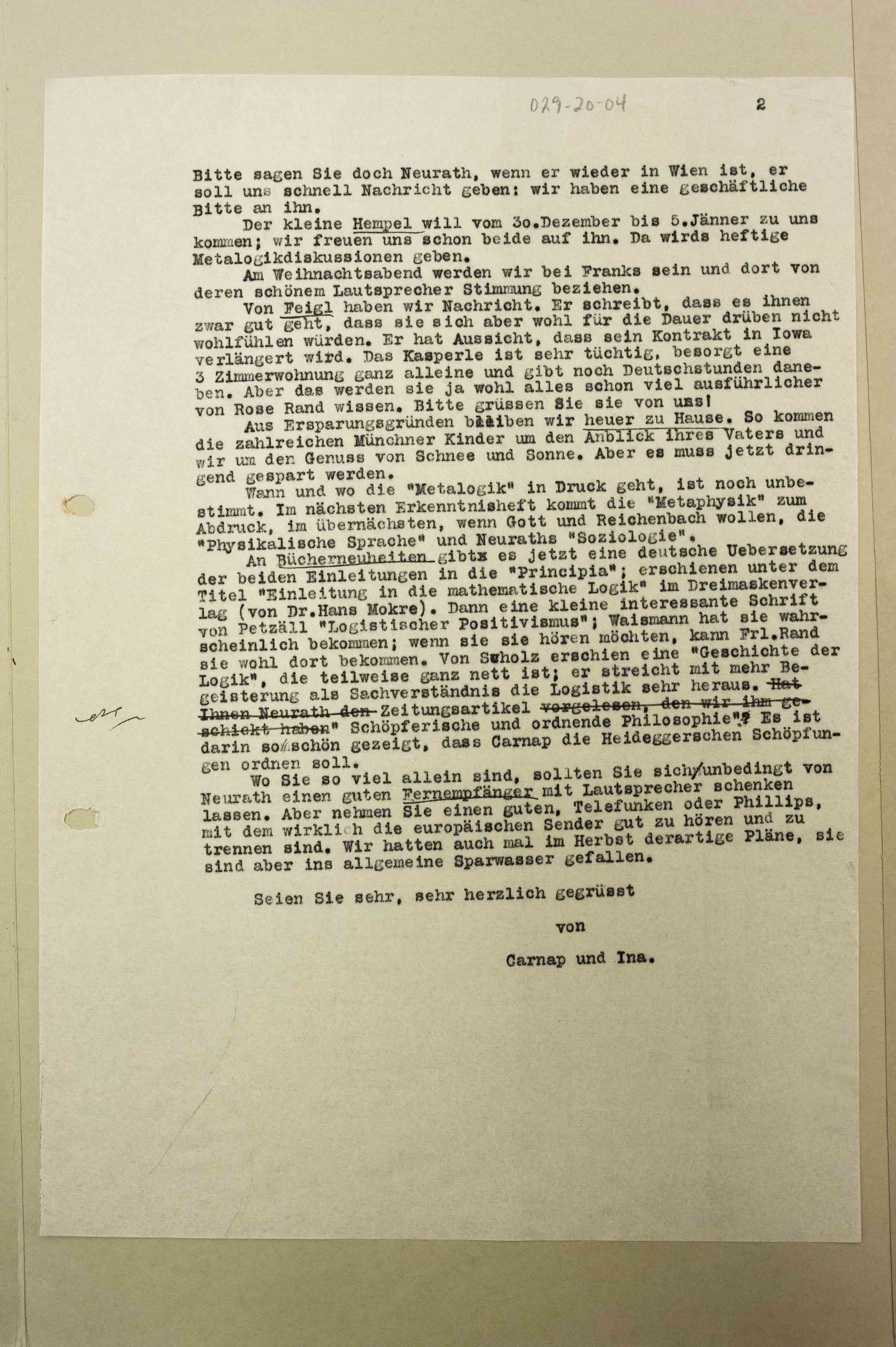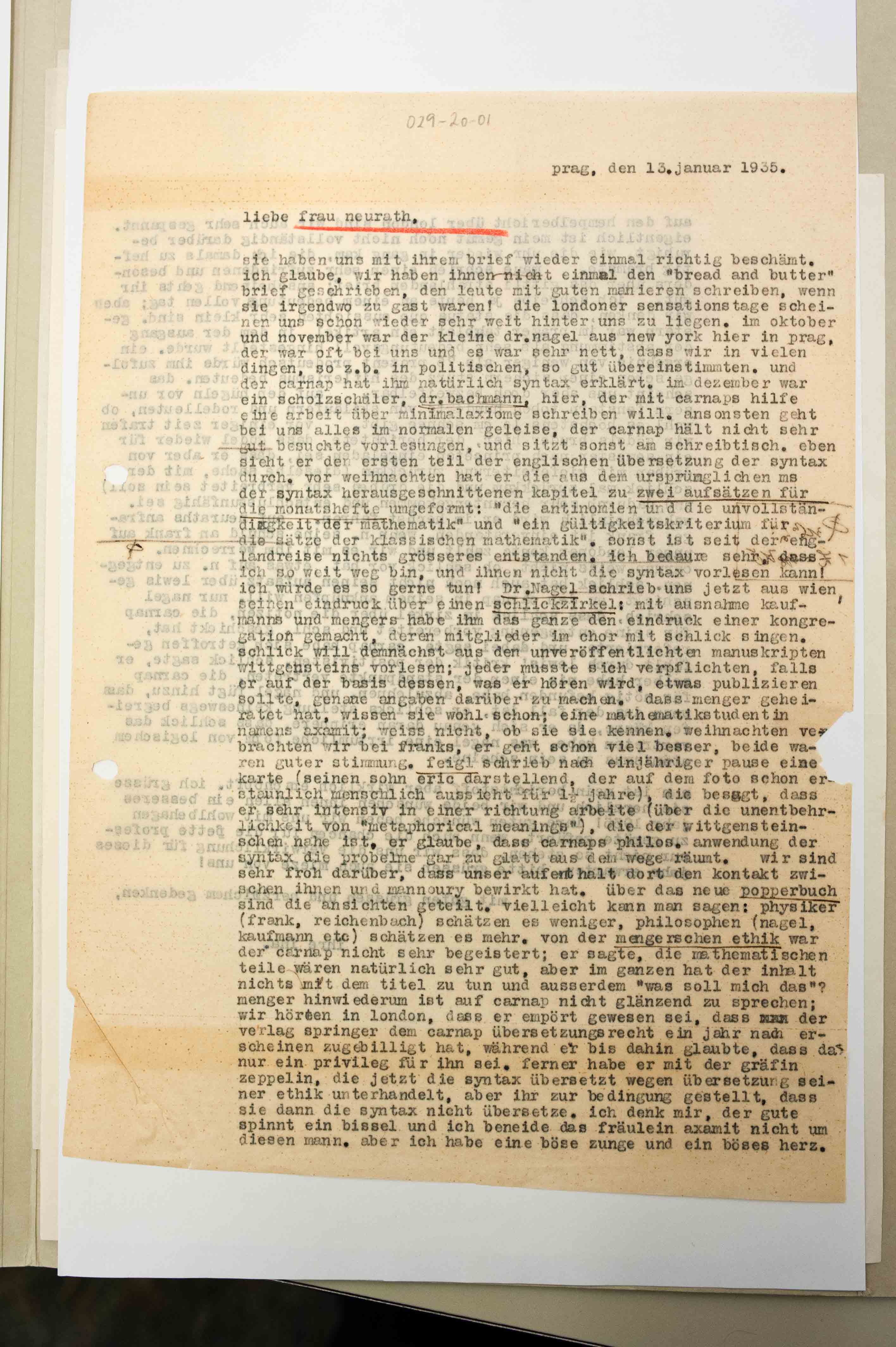 ASP Archive>Carnap Collection>Box 29 Early Scientific Correspondence (until 1935)>Folder 20 ◊ Neurath, Olga 1931-1935