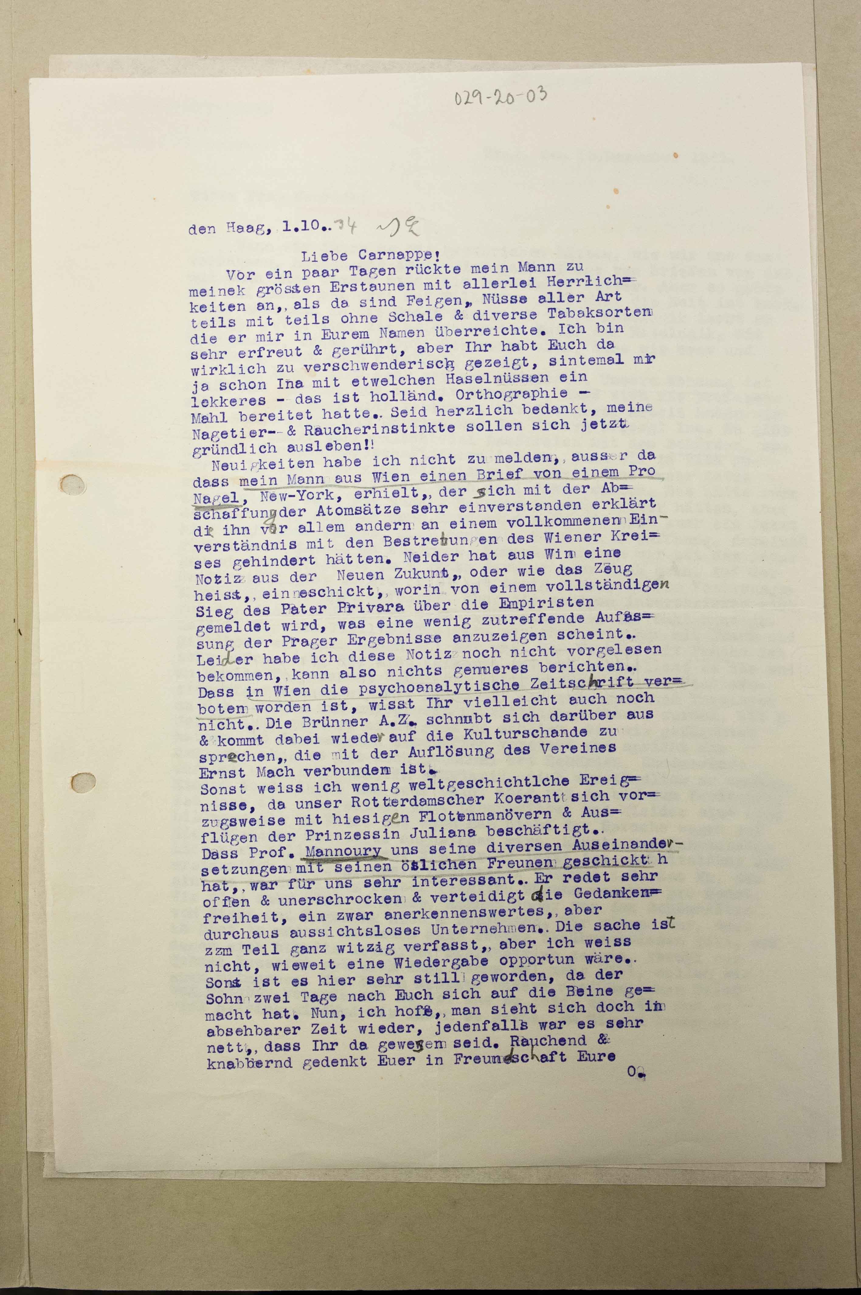Olga Neurath to Ina Carnap, Carnap, 1934-10-01 (L) (Original)