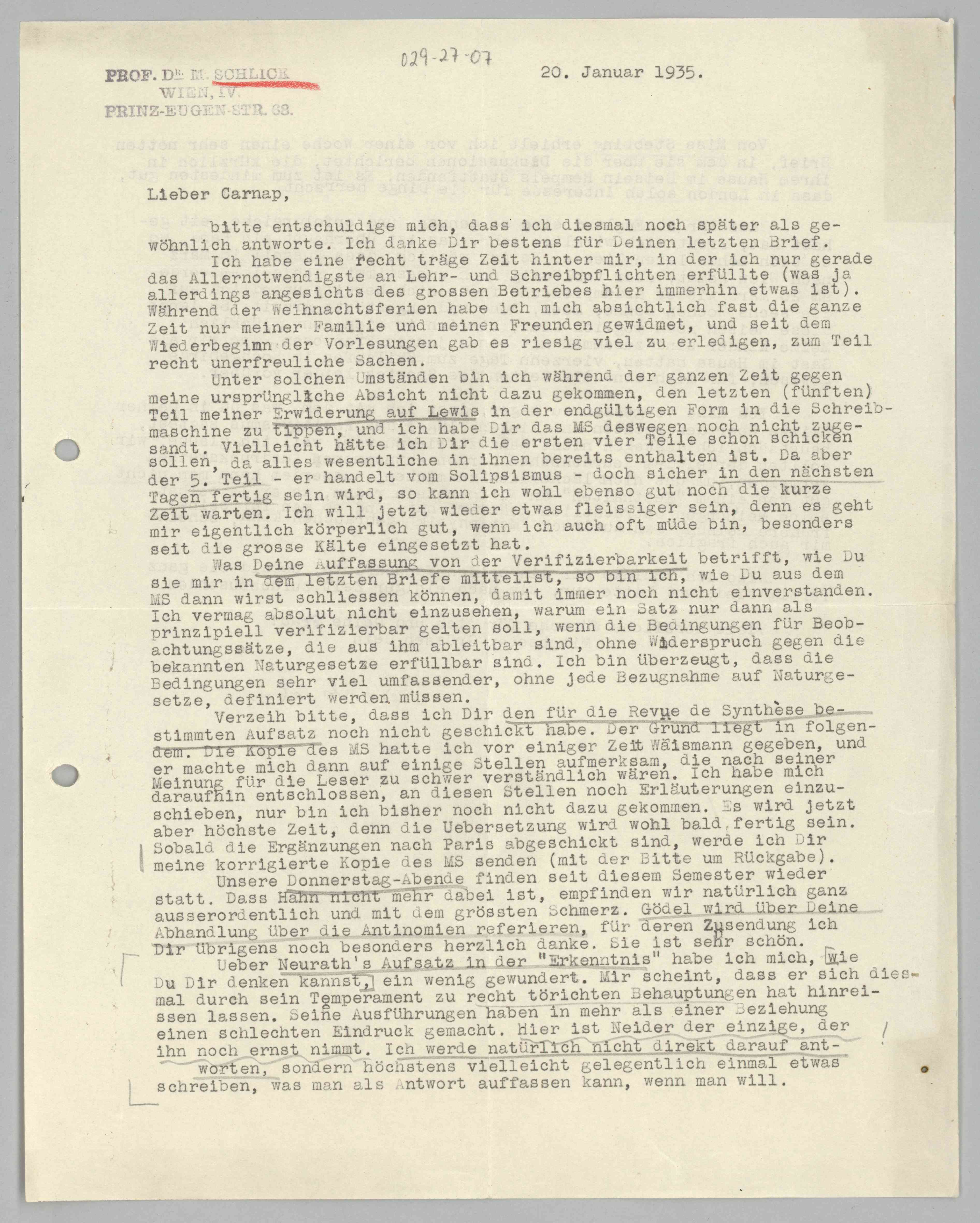 Schlick to Carnap, 1935-01-20 (L) (Original)