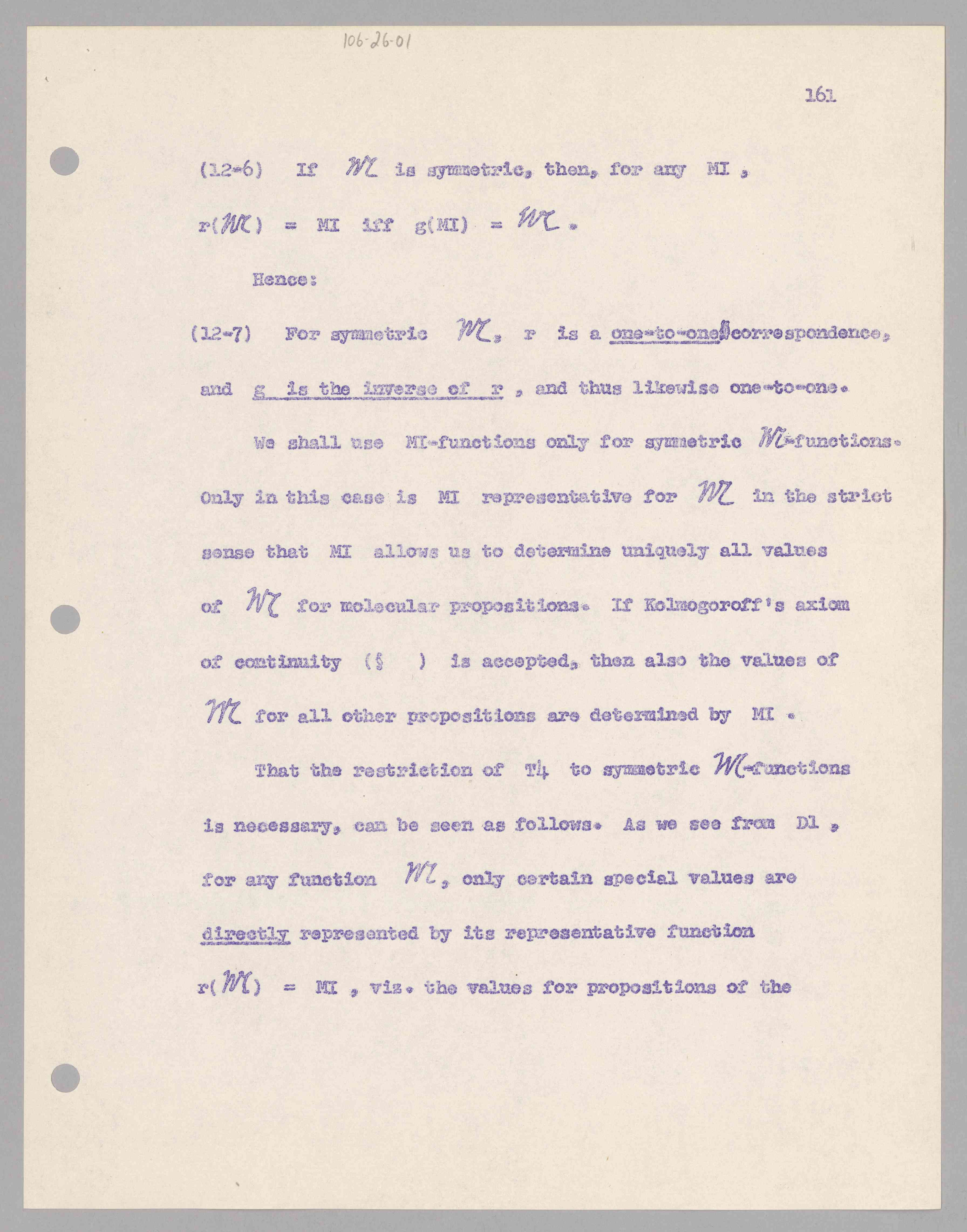 ASP Archive>Carnap Collection>Box 106 Inductive Logic>Folder 26 An Axiom System of Inductive Logic, Chapters 1-13 (old uncorrected)᠄ 12. Representative Functions for Symmetric M and C