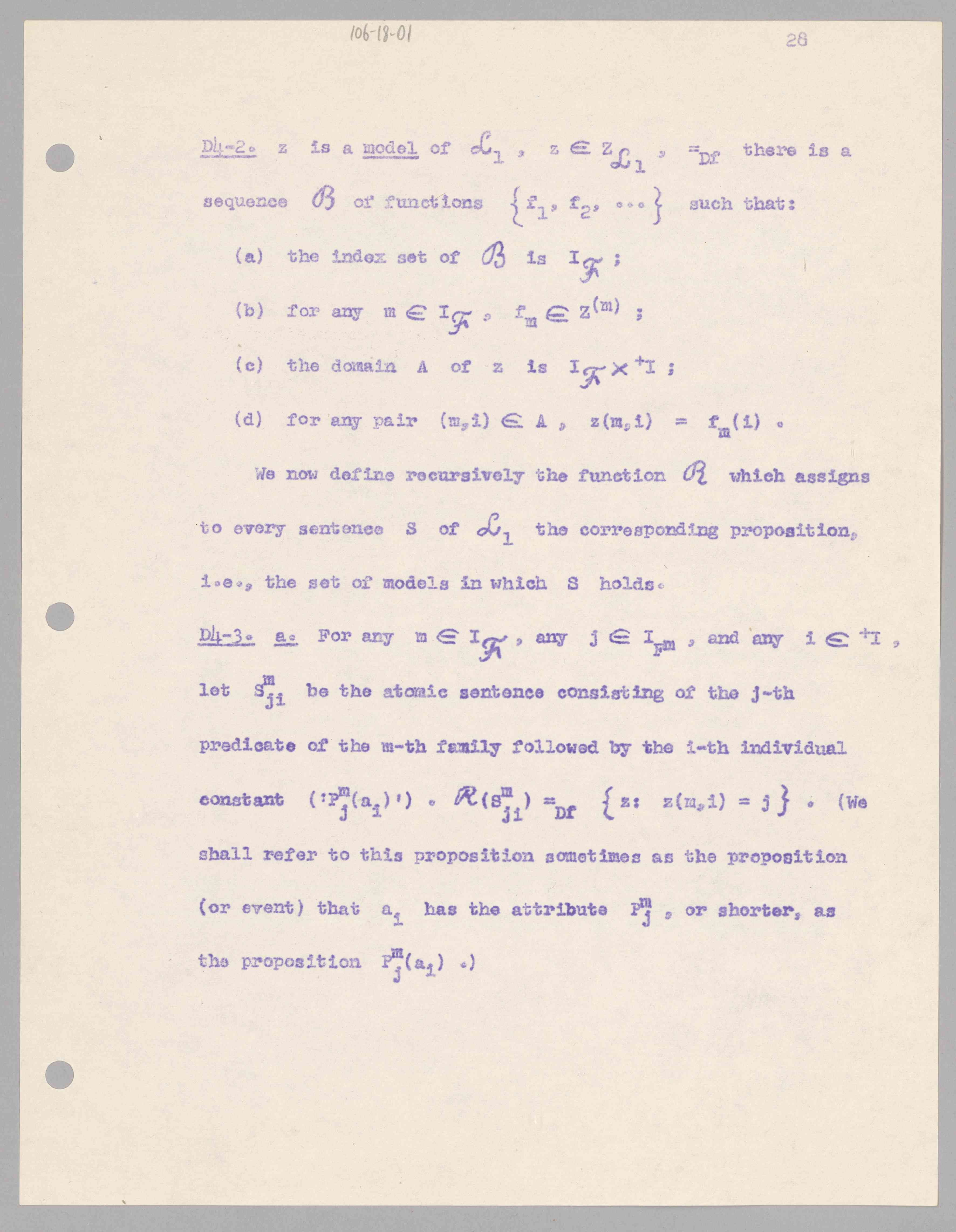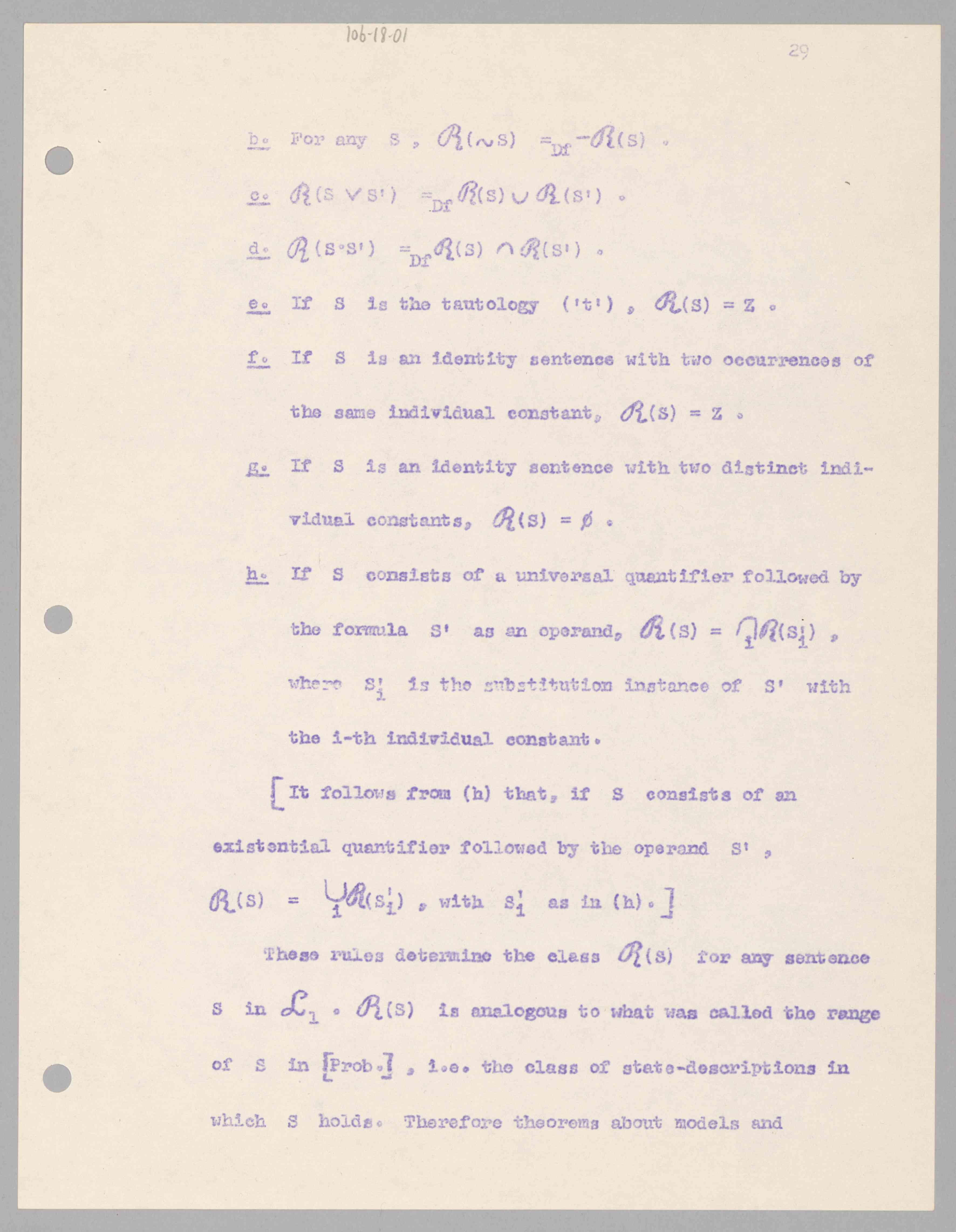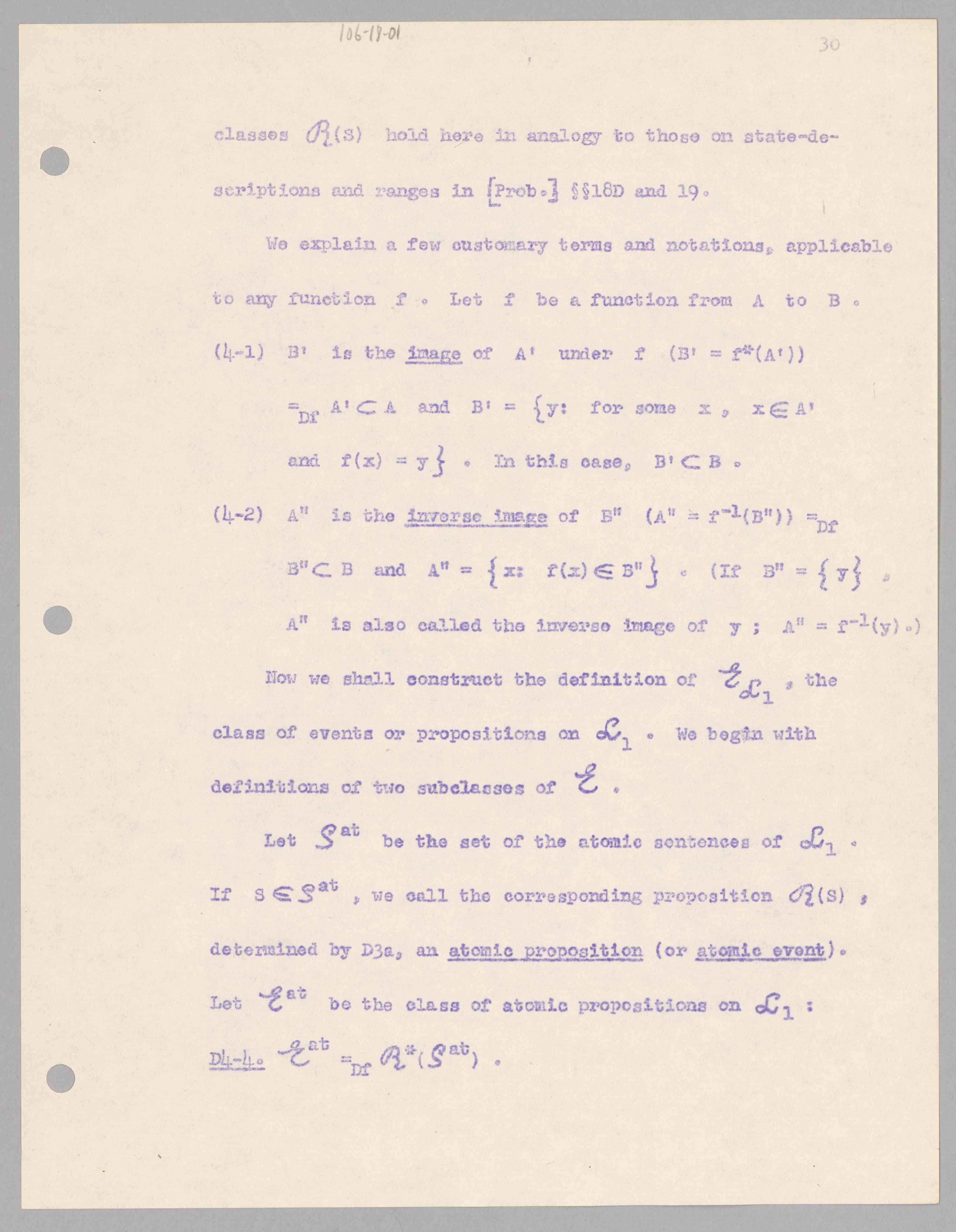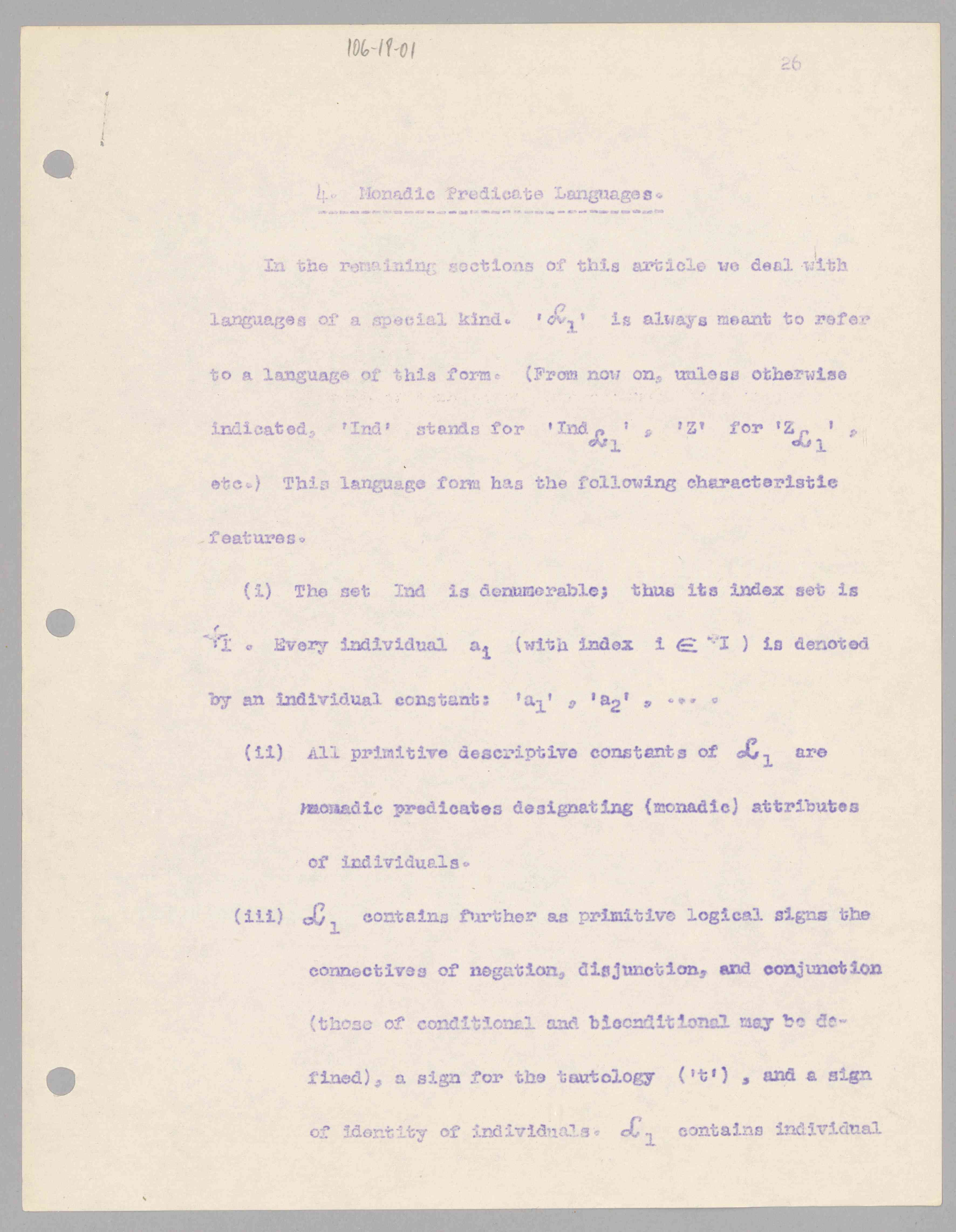ASP Archive>Carnap Collection>Box 106 Inductive Logic>Folder 18 An Axiom System of Inductive Logic, Chapters 1-13 (old uncorrected)᠄ 4. Predicate Languages