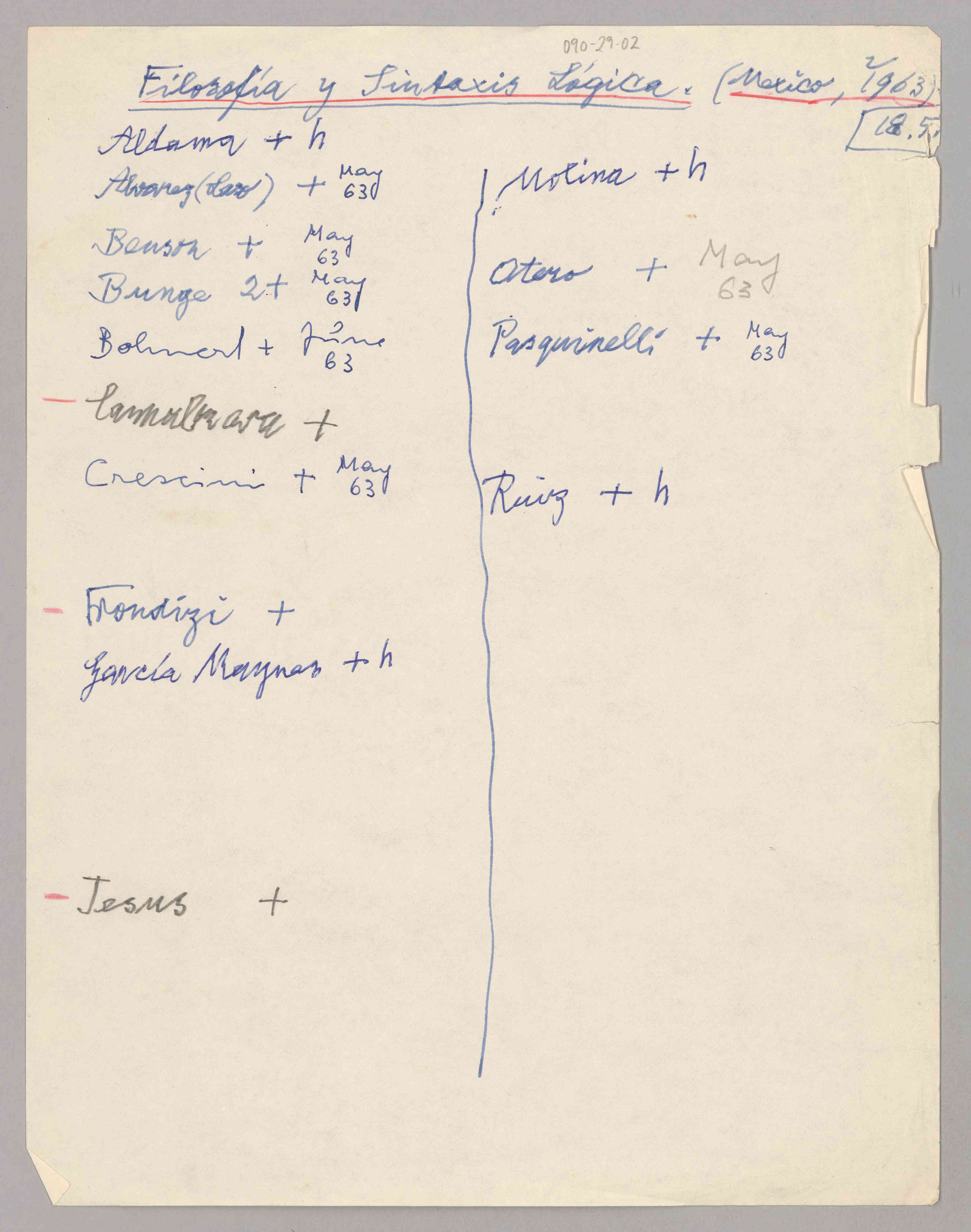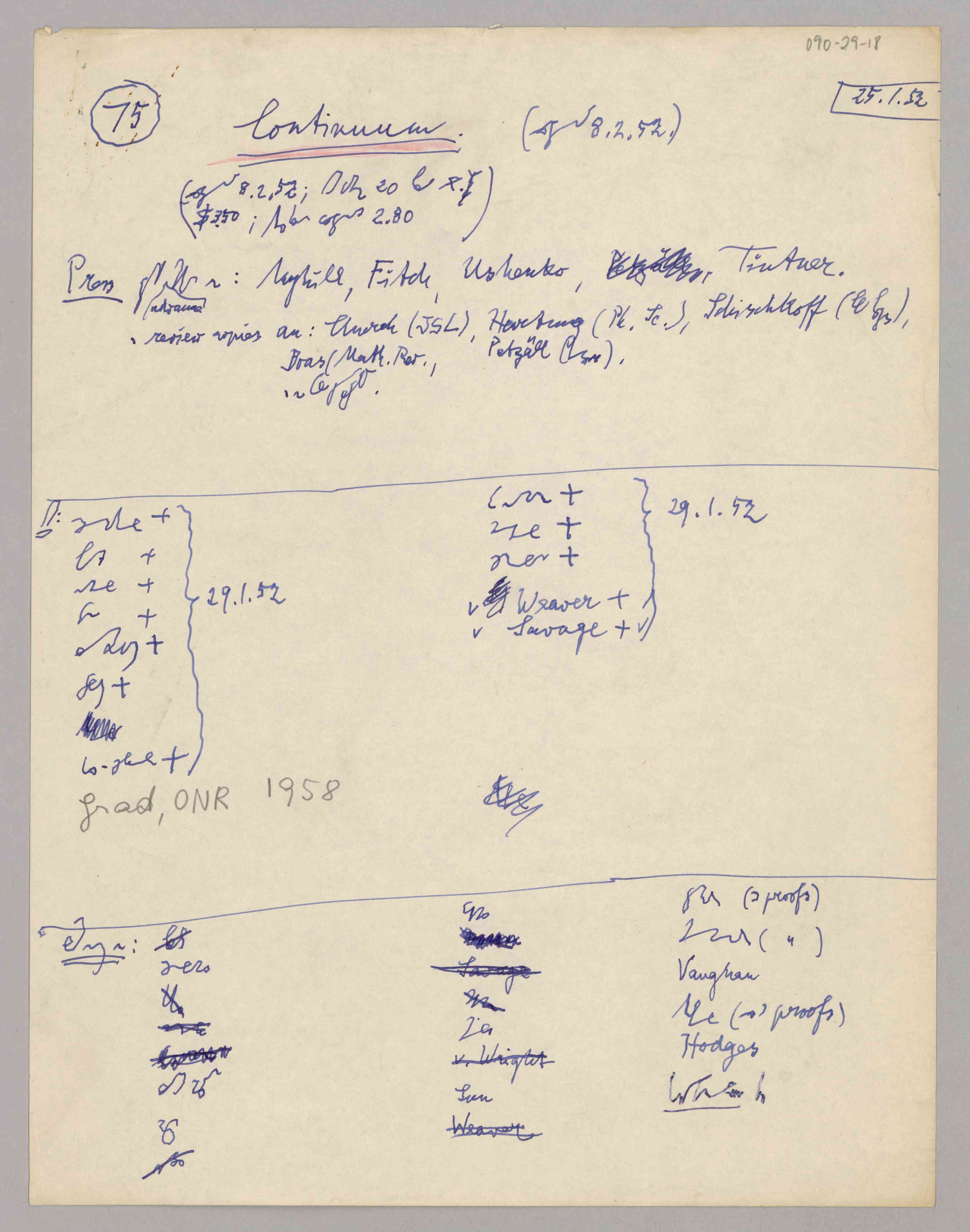 ASP Archive>Carnap Collection>Box 90 >Folder 29a Distribution Lists of Reprints (Items 1-18), 1952-1963 (1952/1963)