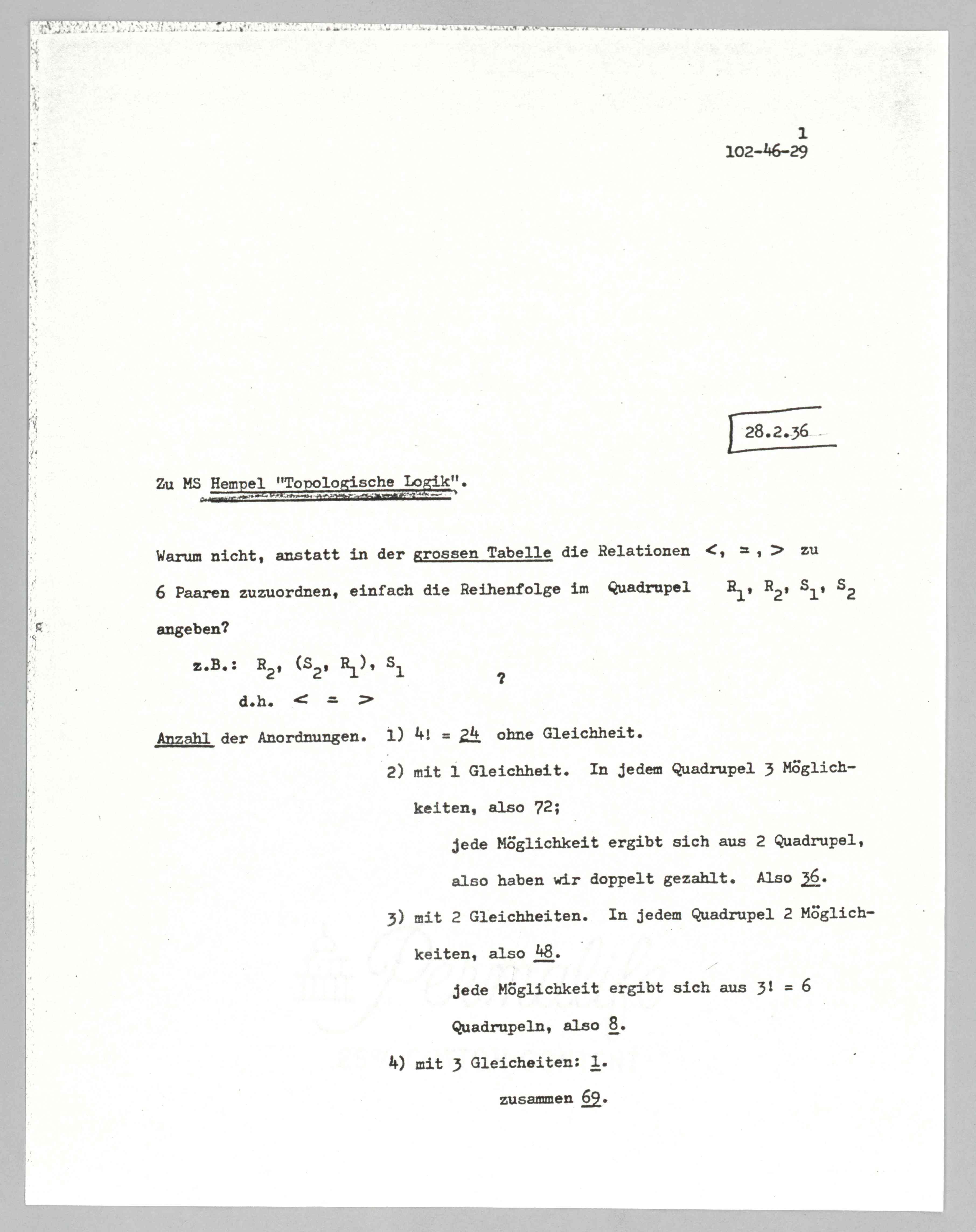 Carnap, Zu MS Hempel "Topologische Logik", 1936-02-28 (M) (Transcription)