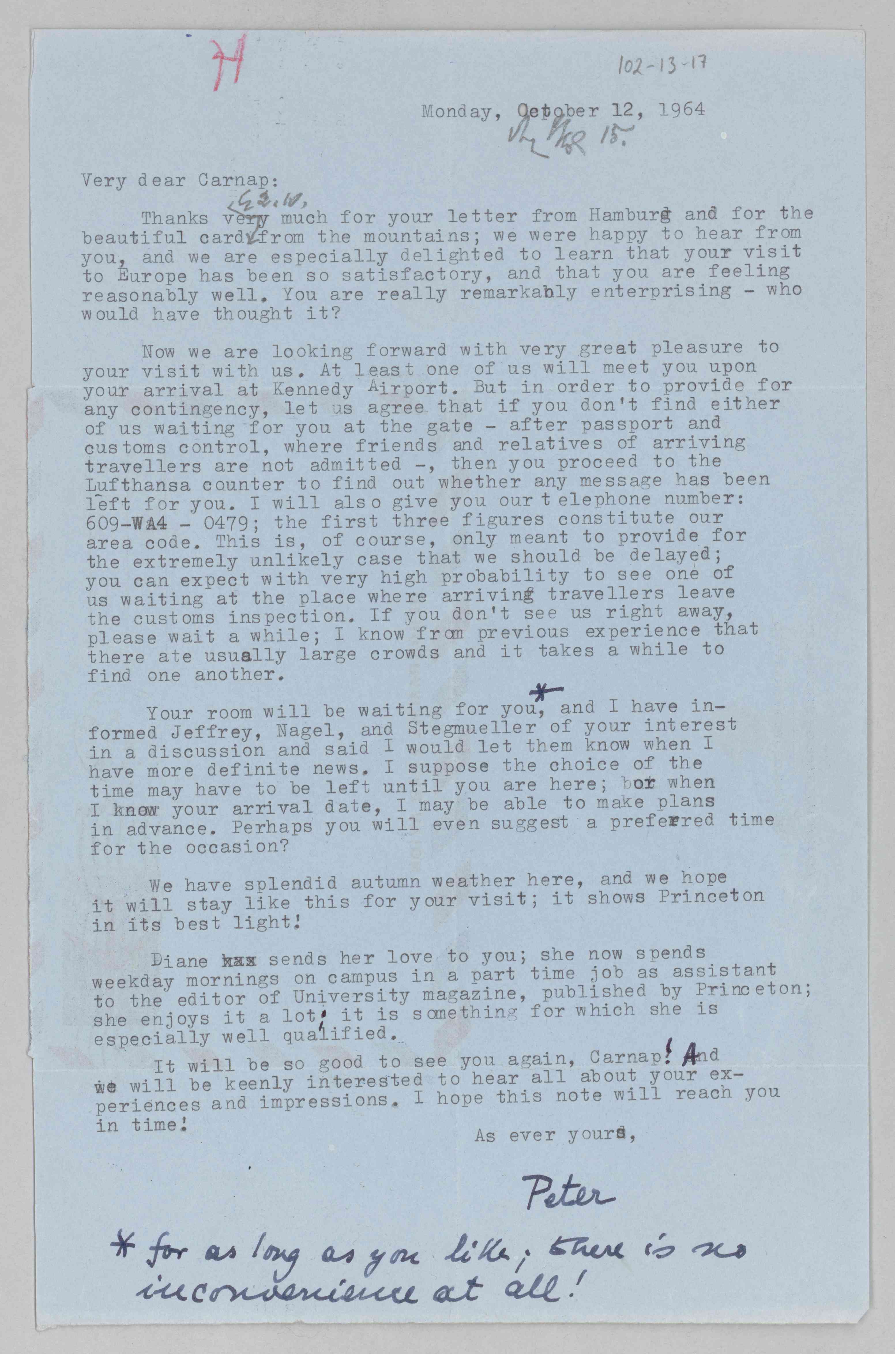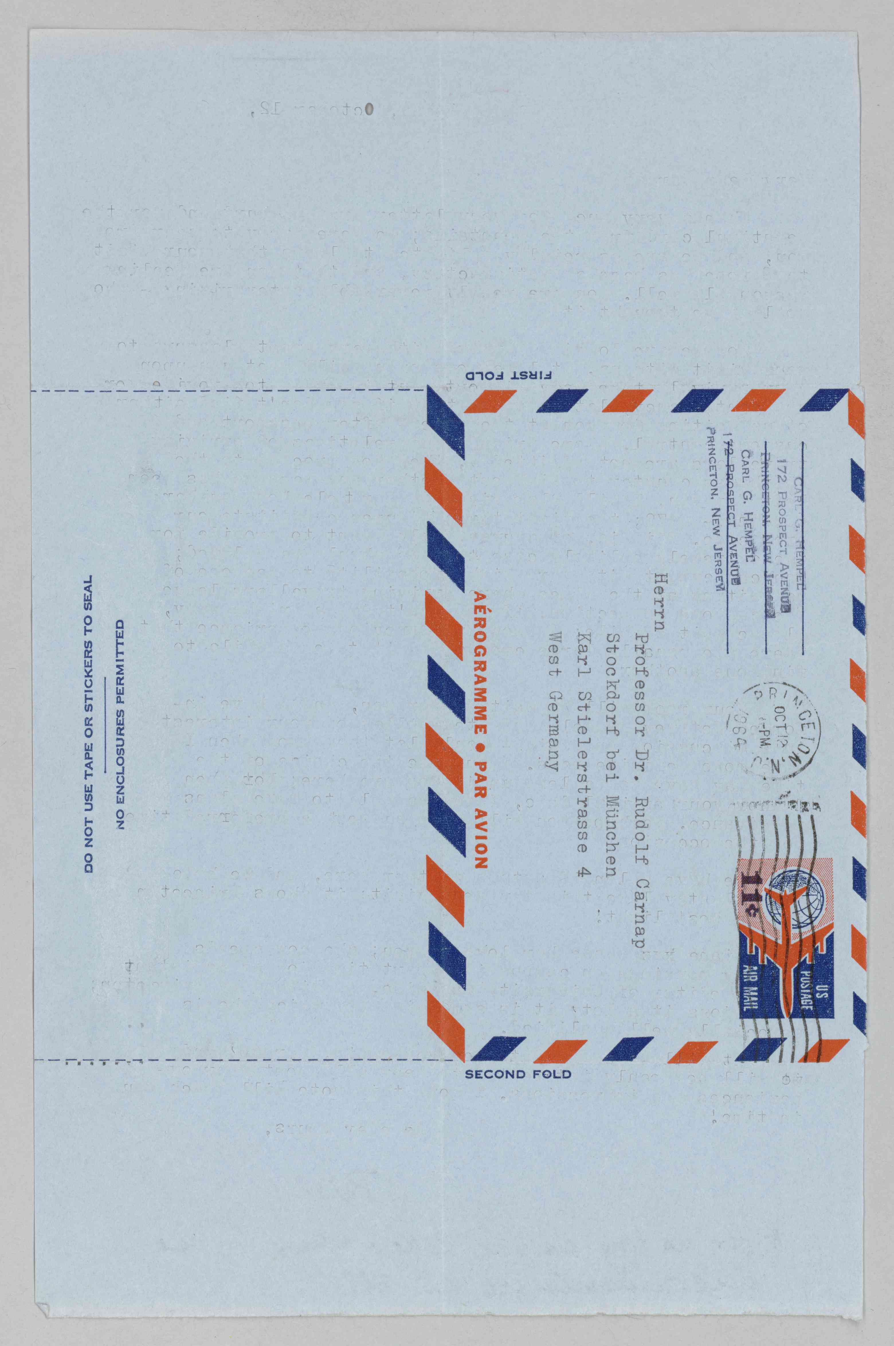 Hempel to Carnap, 1964-10-12 (L) (Original)