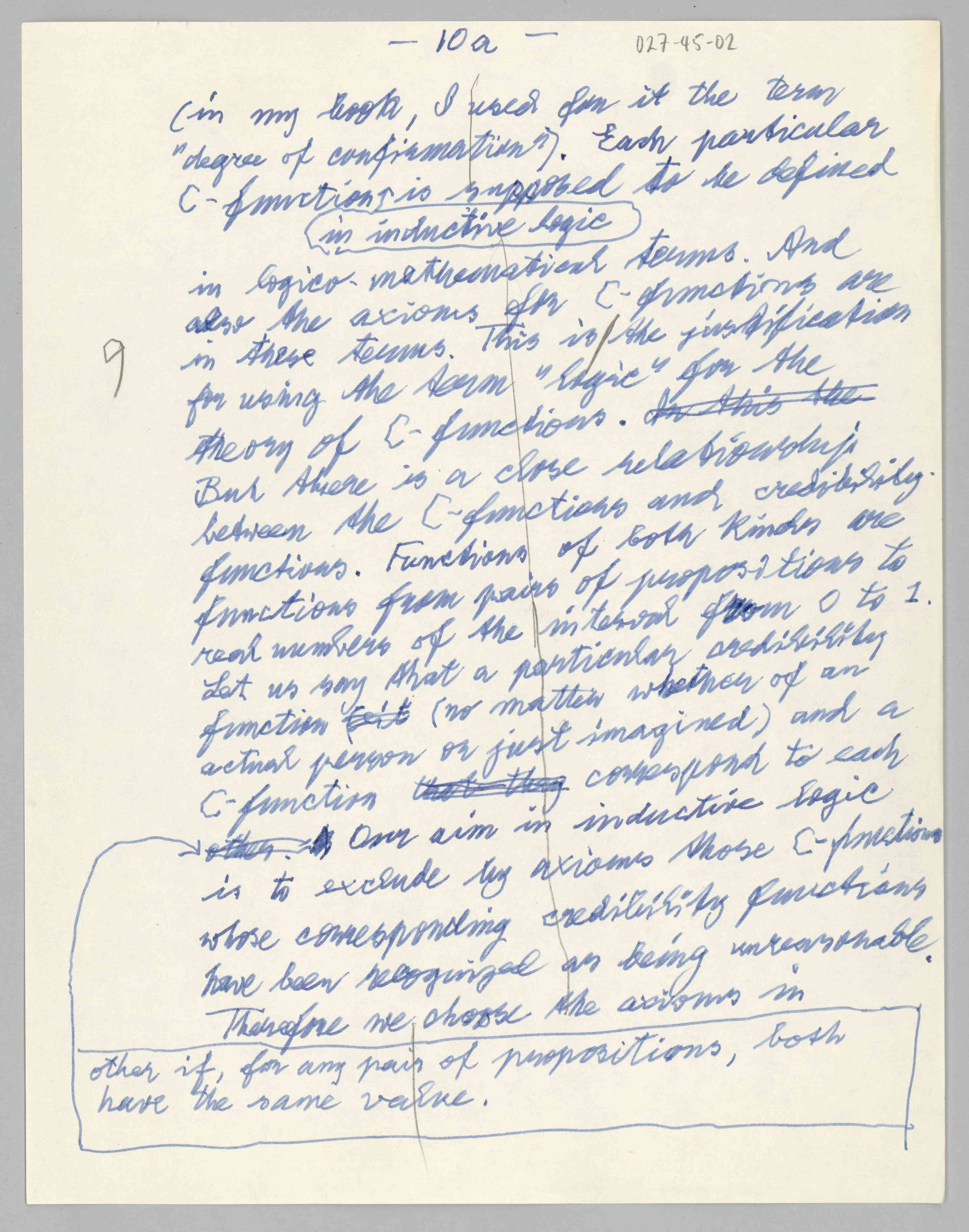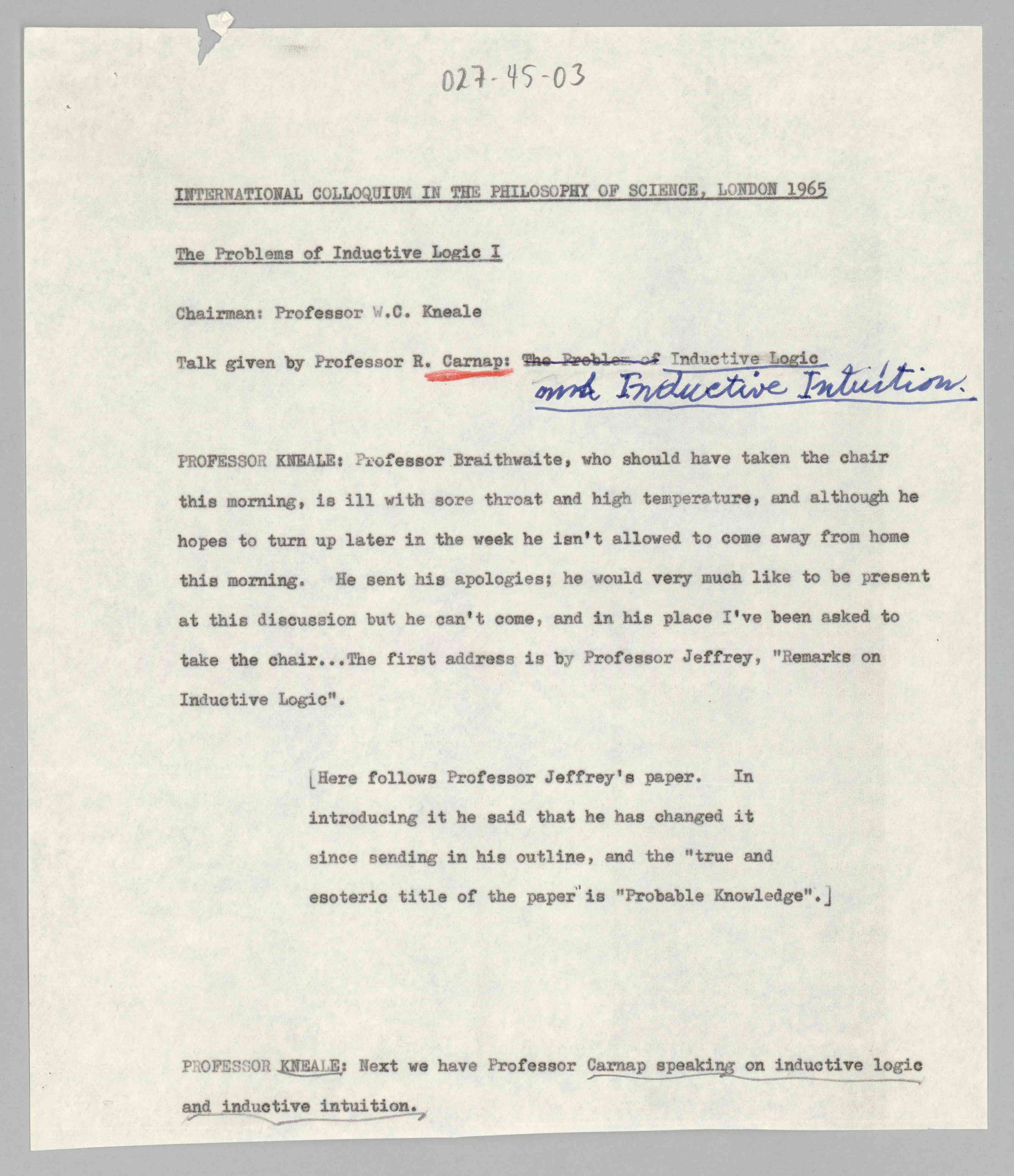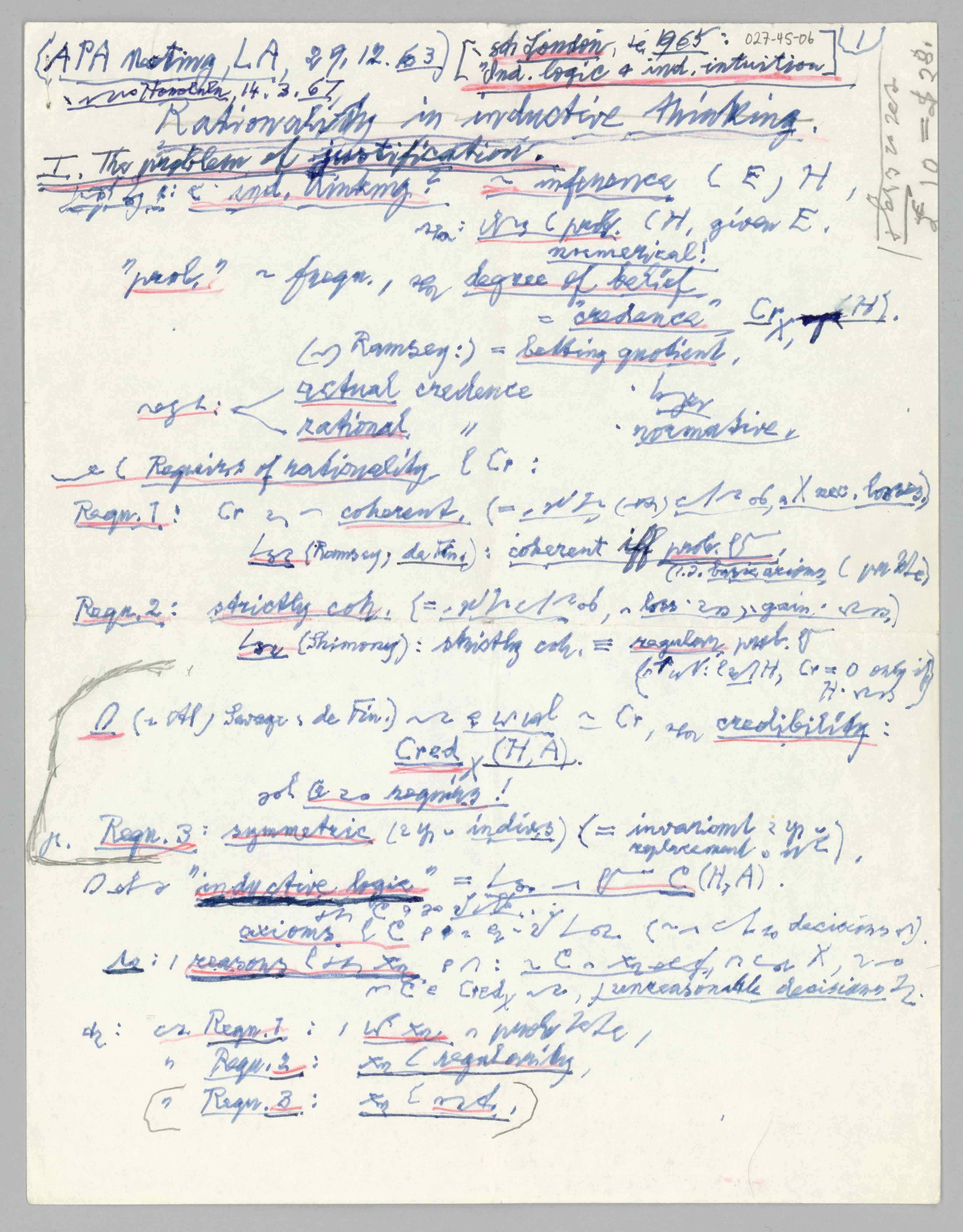 ASP Archive>Carnap Collection>Box 27 >Folder 45 Drafts of Carnap’s ''Inductive Logic and Intuition, 1960-1967 (1960/1967)