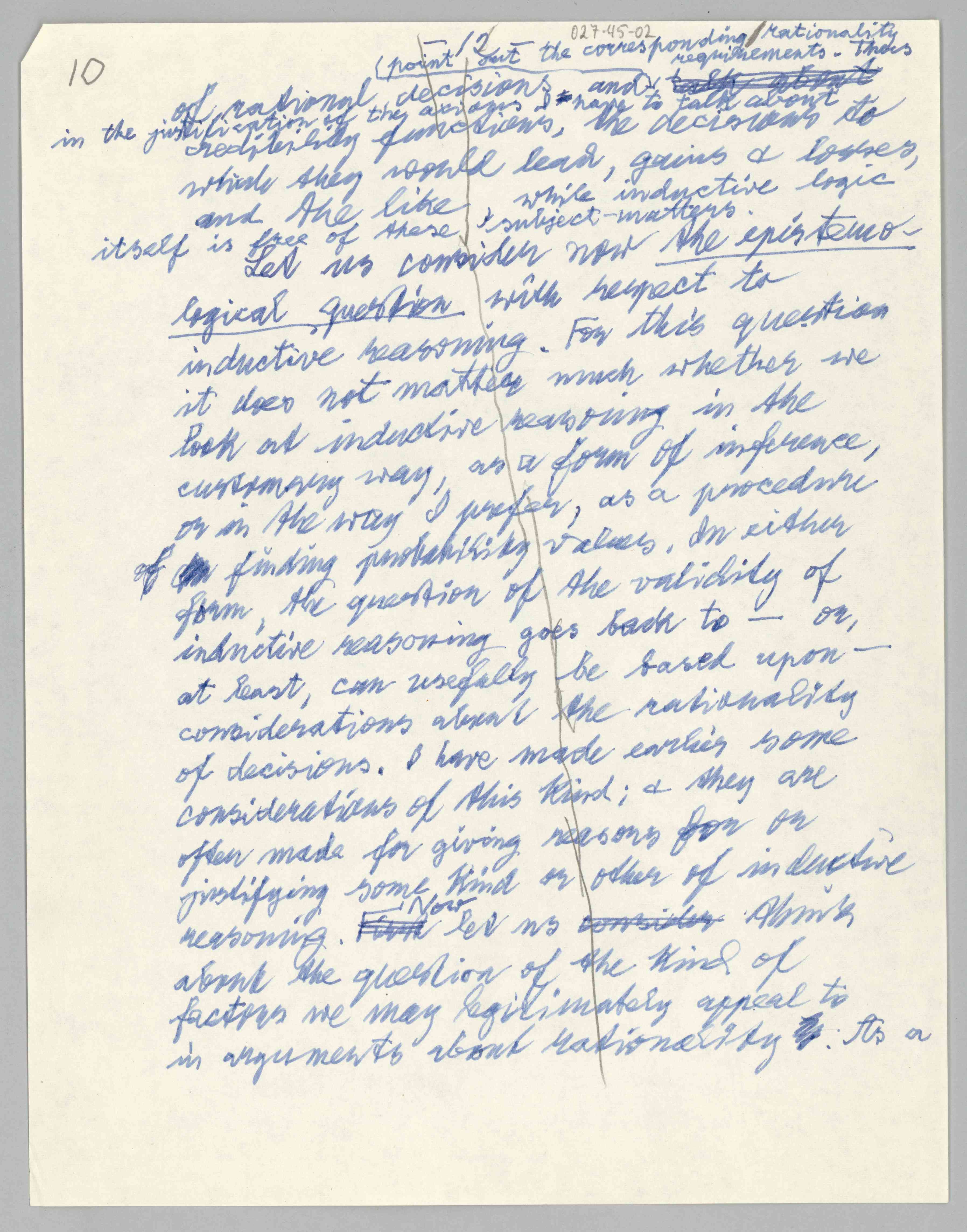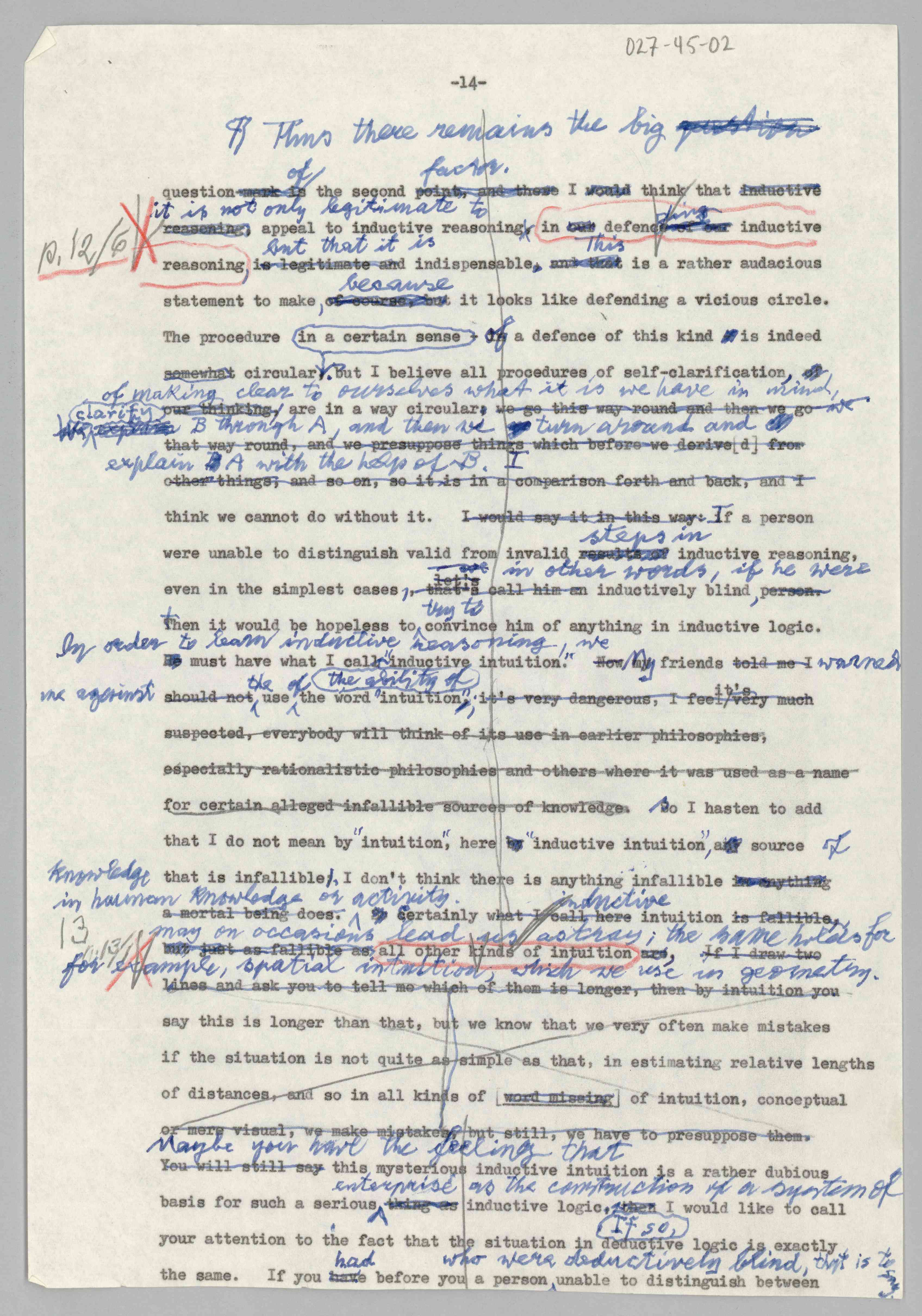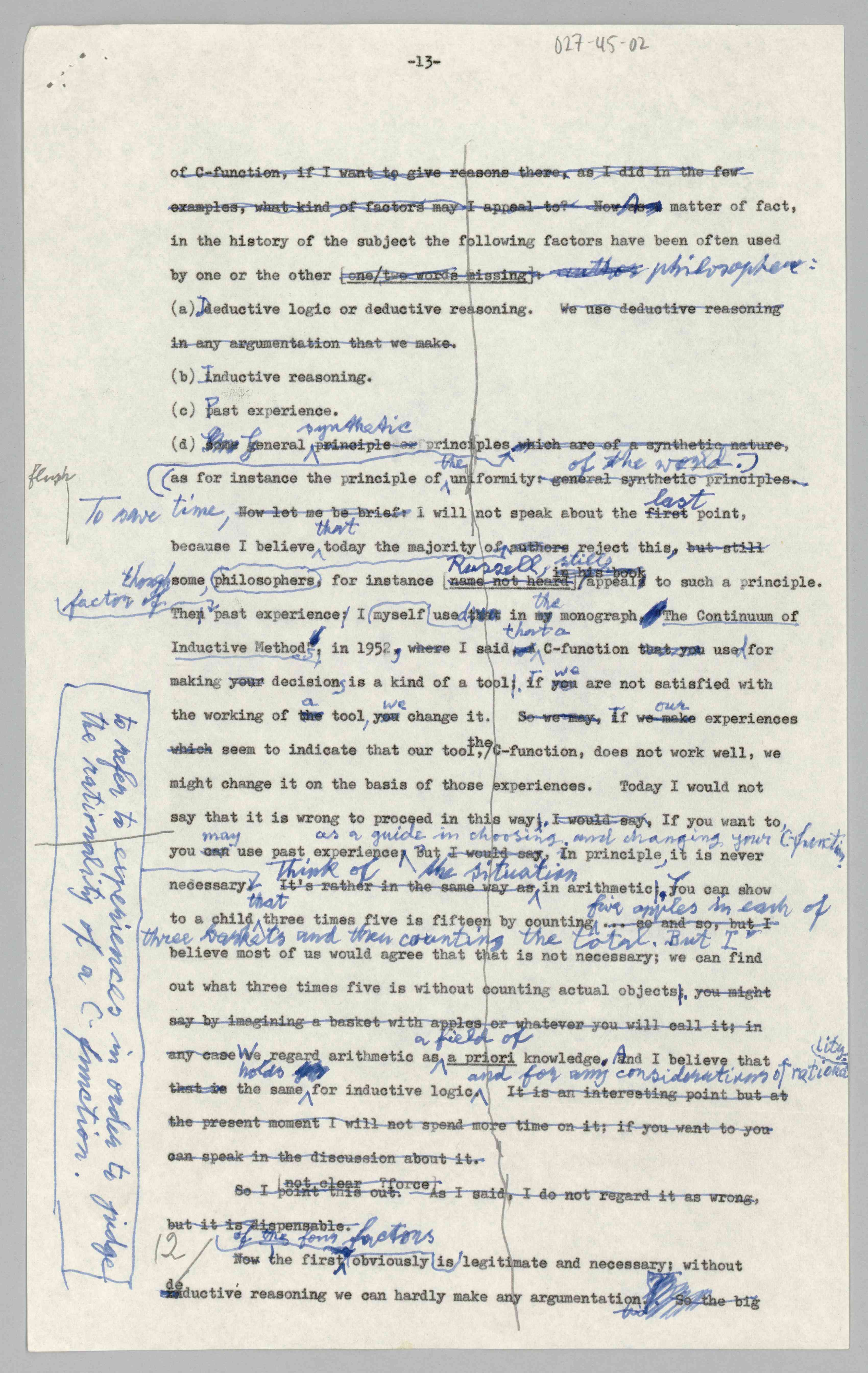 ASP Archive>Carnap Collection>Box 27 >Folder 45 Drafts of Carnap’s ''Inductive Logic and Intuition, 1960-1967 (1960/1967)