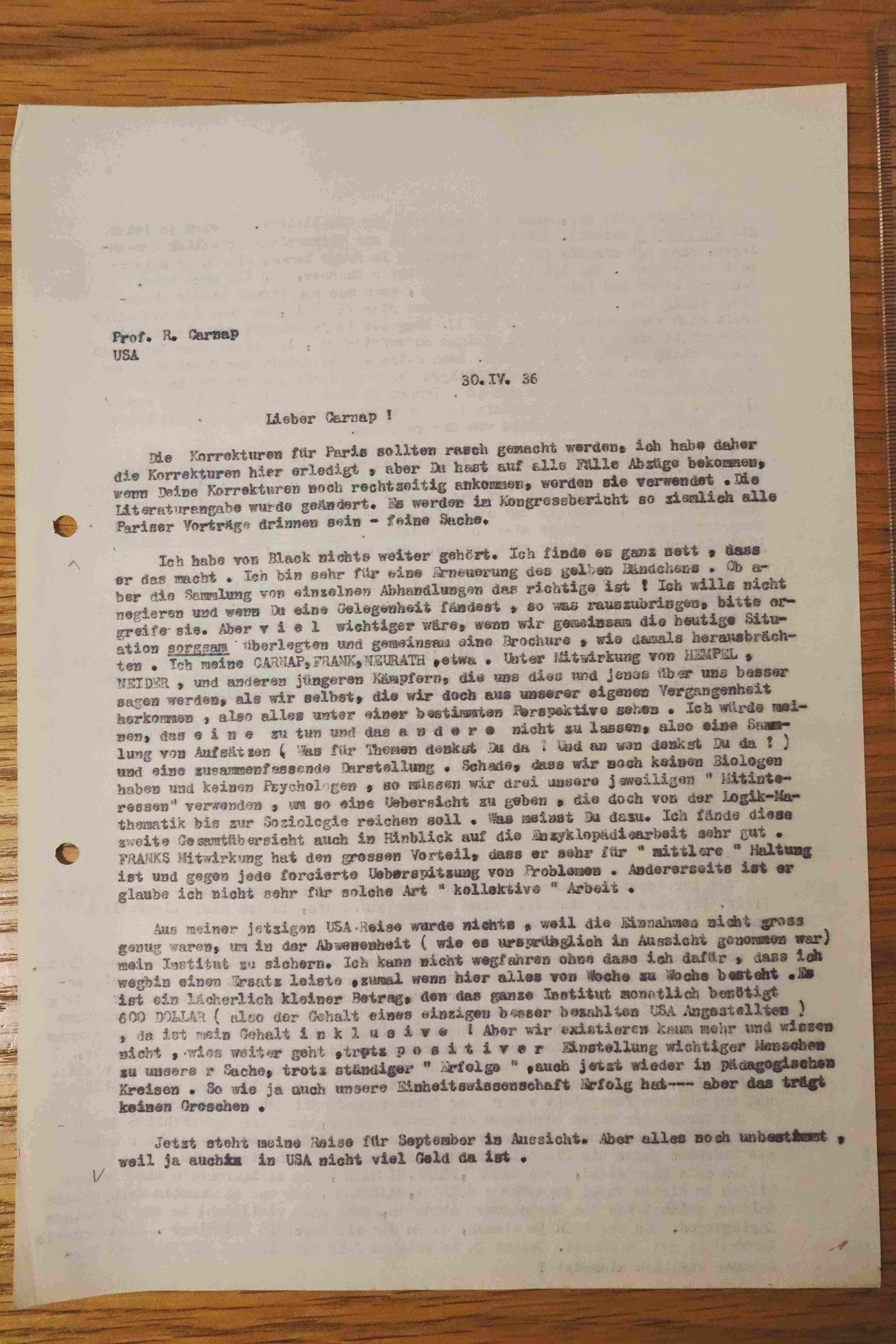 Neurath to Carnap, 1936-04-30 (L) (Copy)