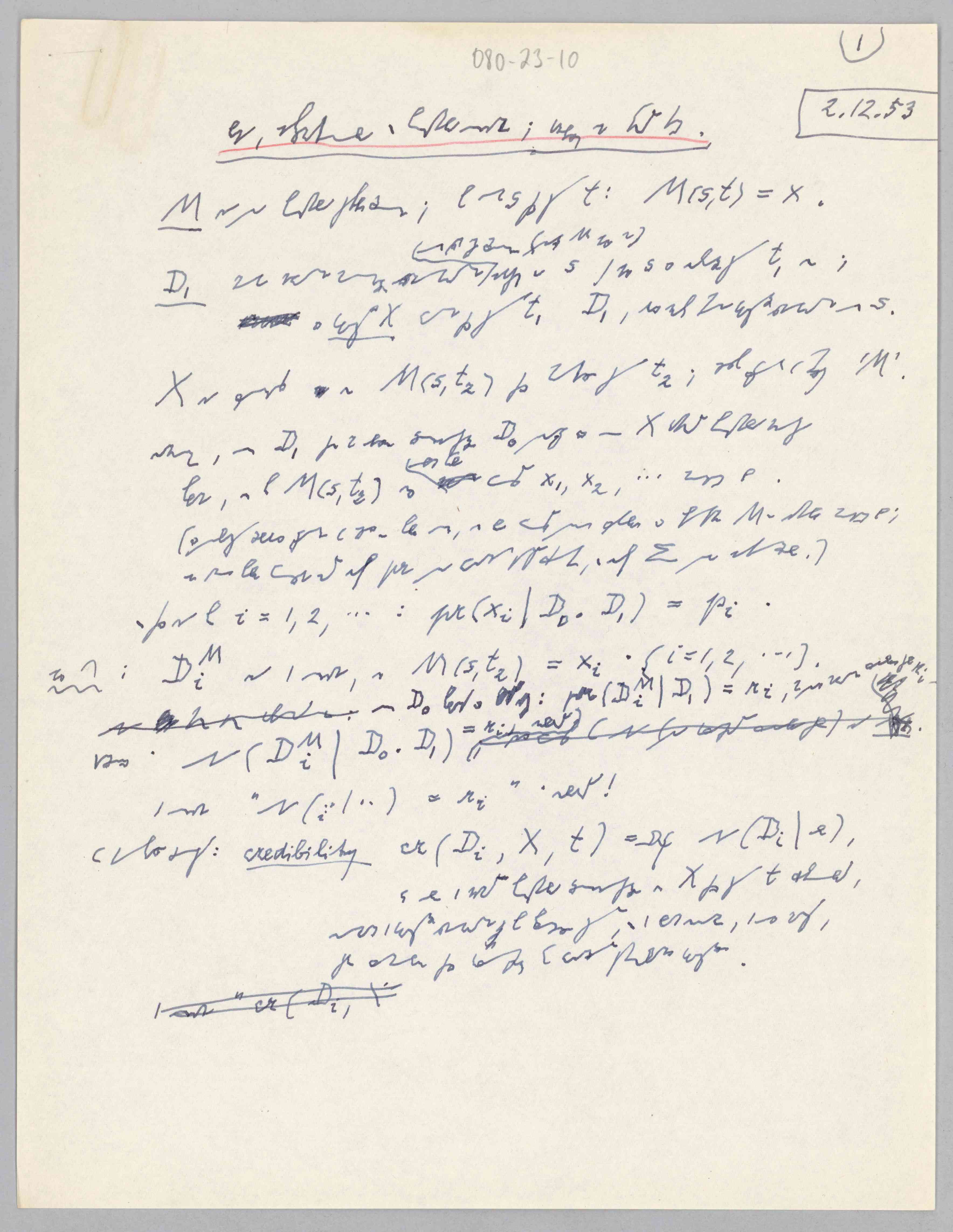 Carnap, Logische, informationelle und physikalische Aussagen; besonders in Quantentheorie, 1953-12-02 (M) (Original)