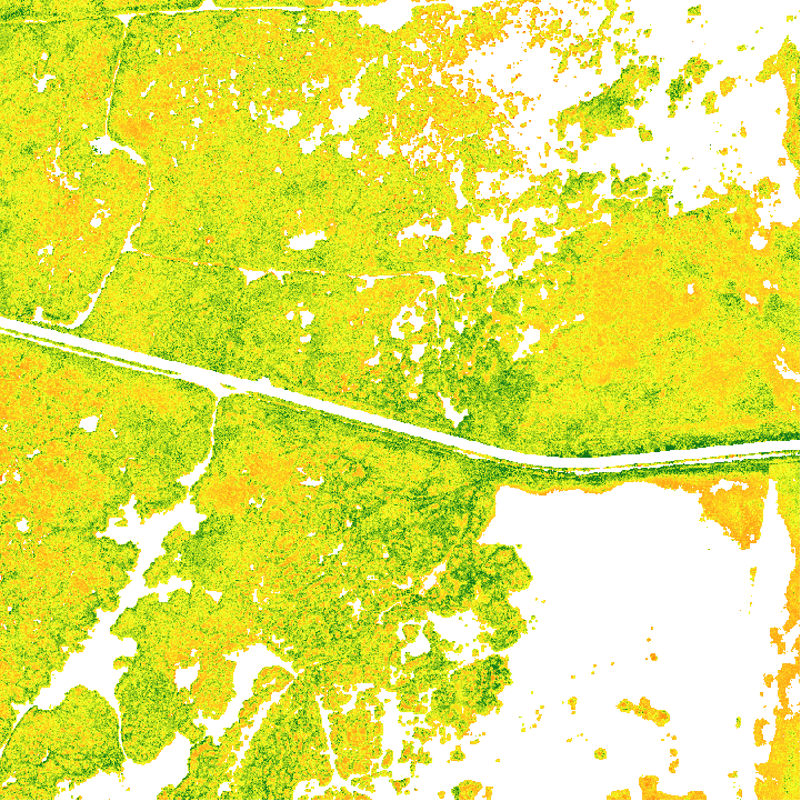 - Vegetation index maps showing green chromatic coordinates (GCC) of the entire study site for every flight to examine the phenological changes of the vegetation over the study period
