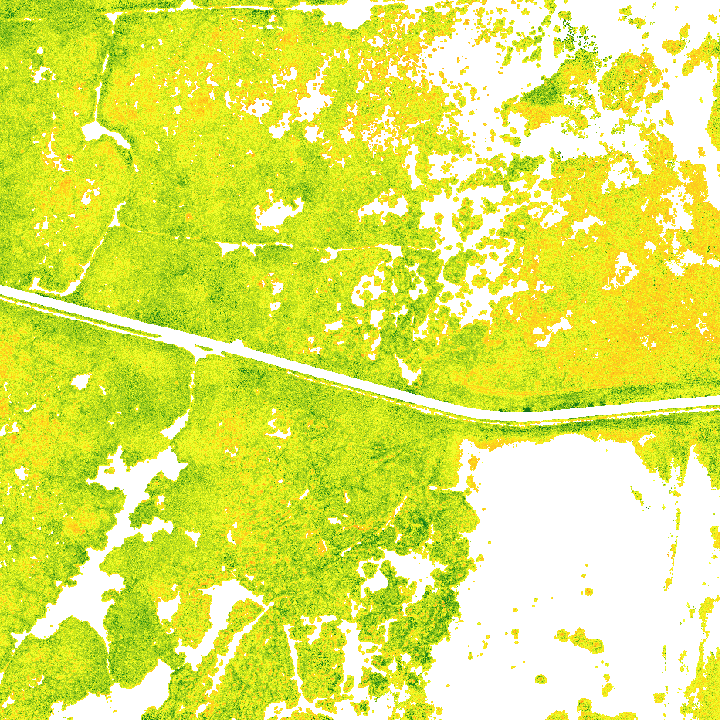 - Vegetation index maps showing green chromatic coordinates (GCC) of the entire study site for every flight to examine the phenological changes of the vegetation over the study period