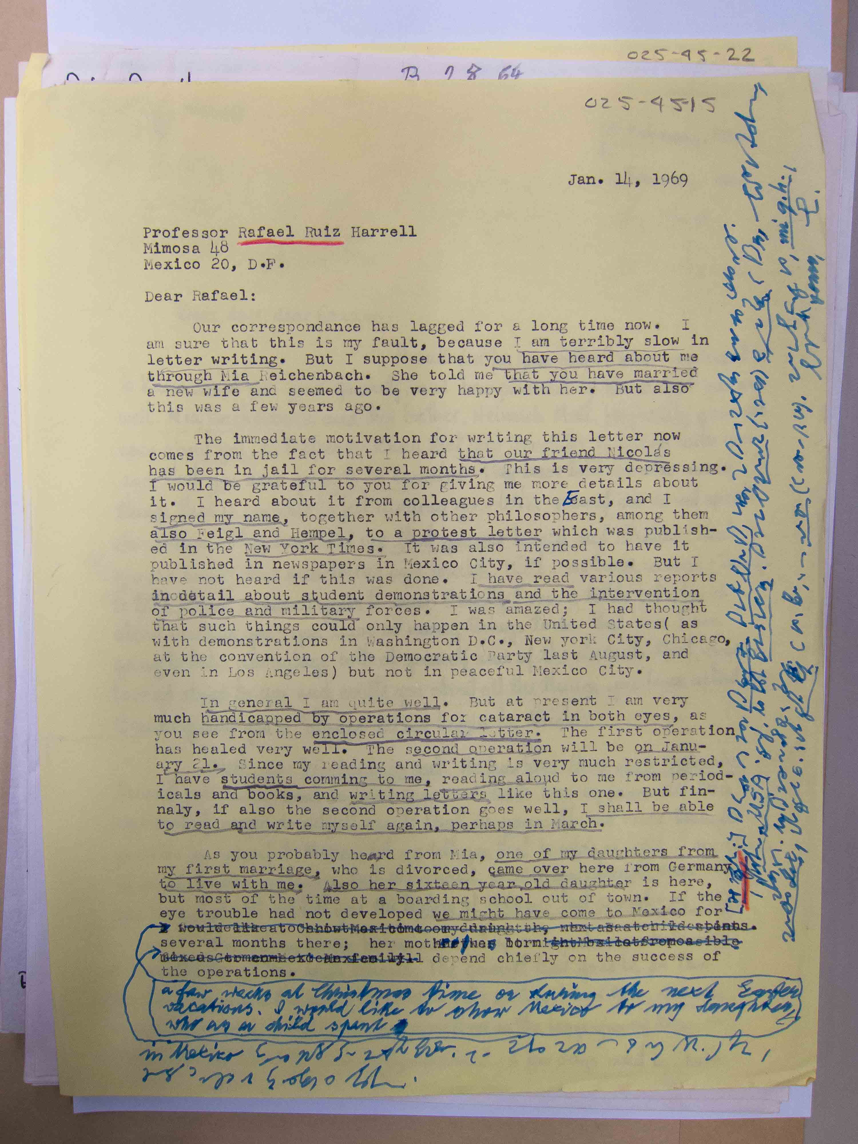 Carnap to Rafael Ruiz Harrell, 1969-01-14 (L) (Copy)