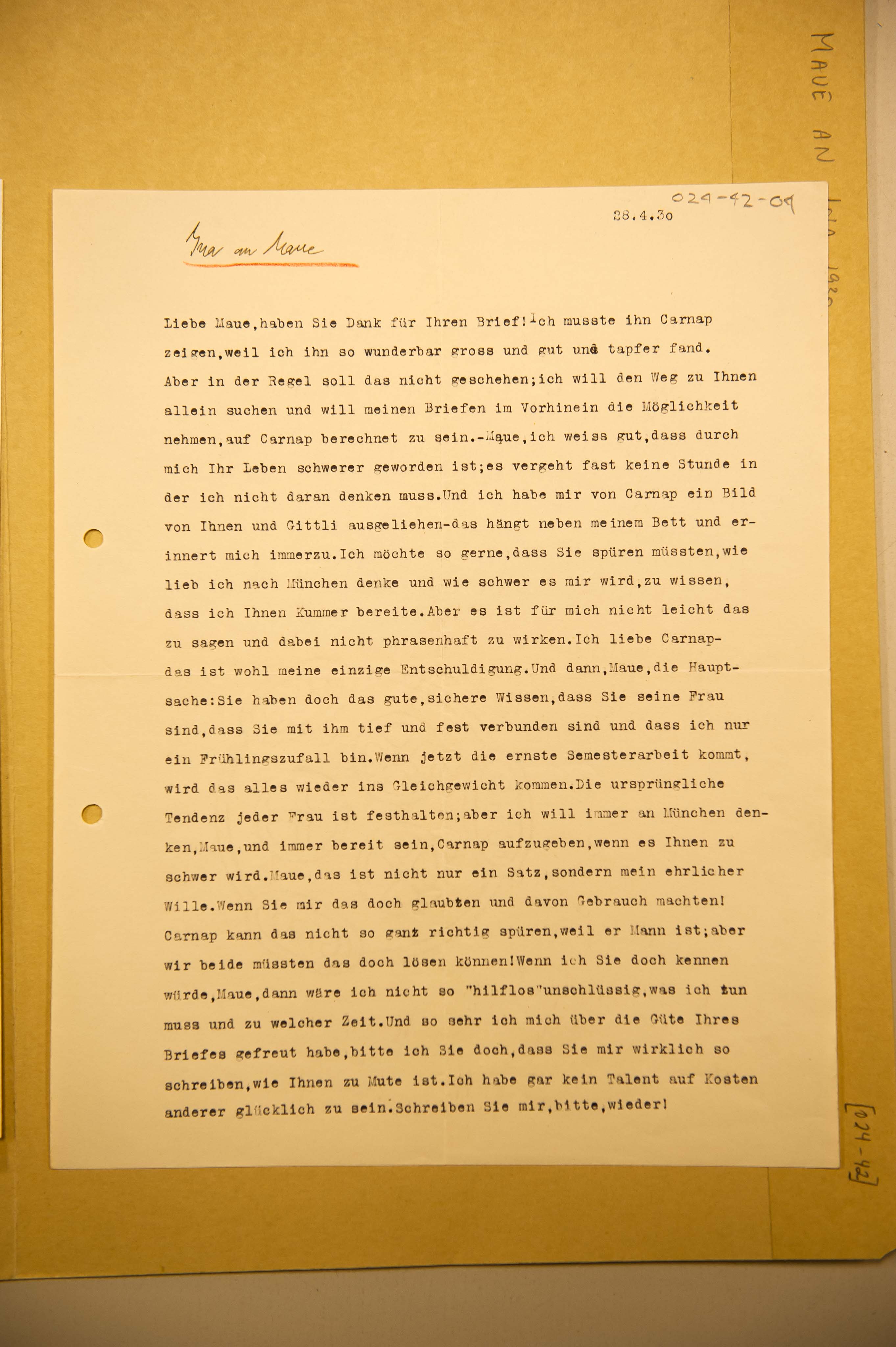 Ina Carnap to Maue Gramm, 1930-04-28 (L) (Copy)