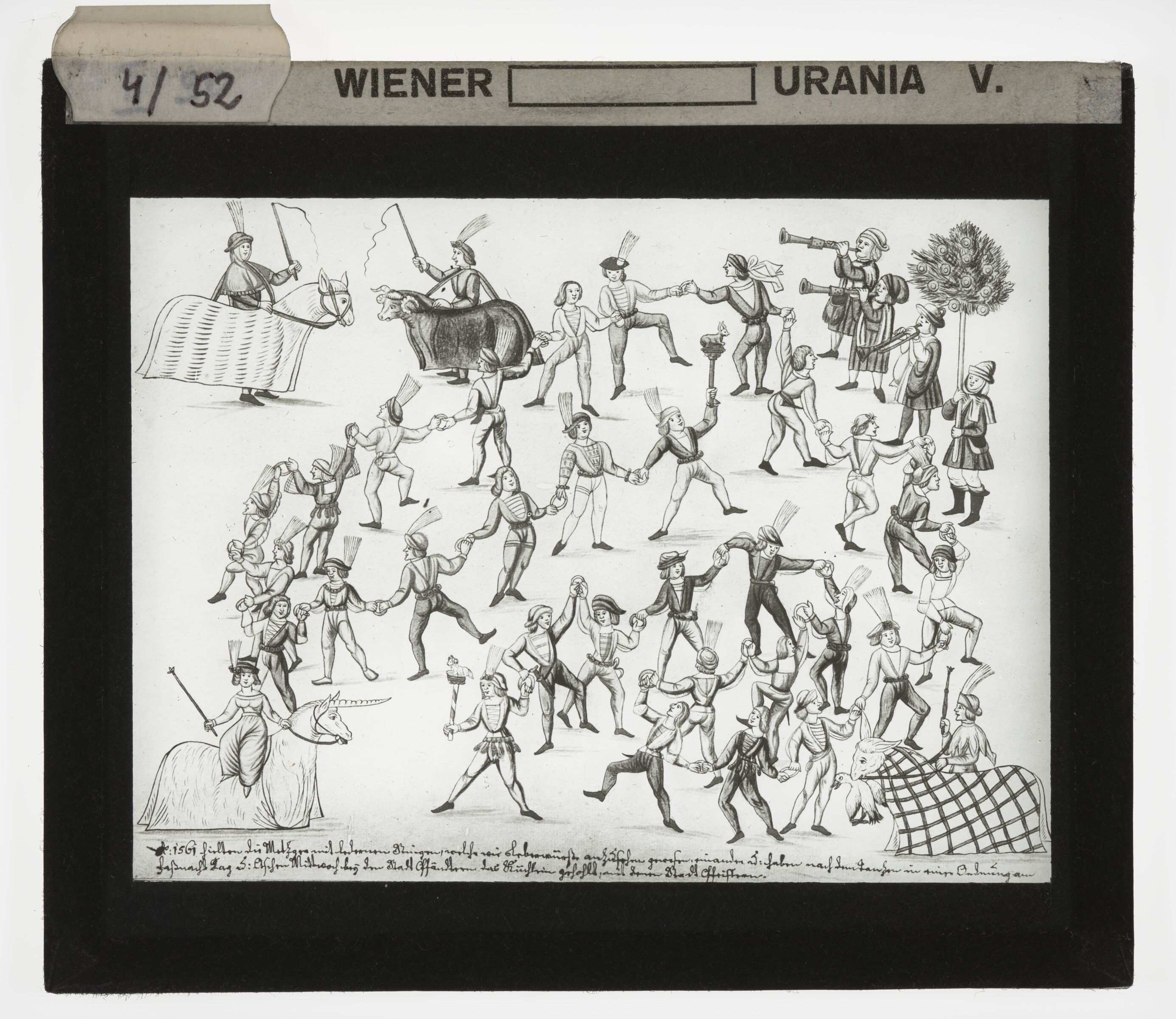 Bezeichnung laut Inventarliste (Richard Wolfram): [Fastnachtstanz in Nürnberg aus den Schembartsbüchern, XVI Jh.]