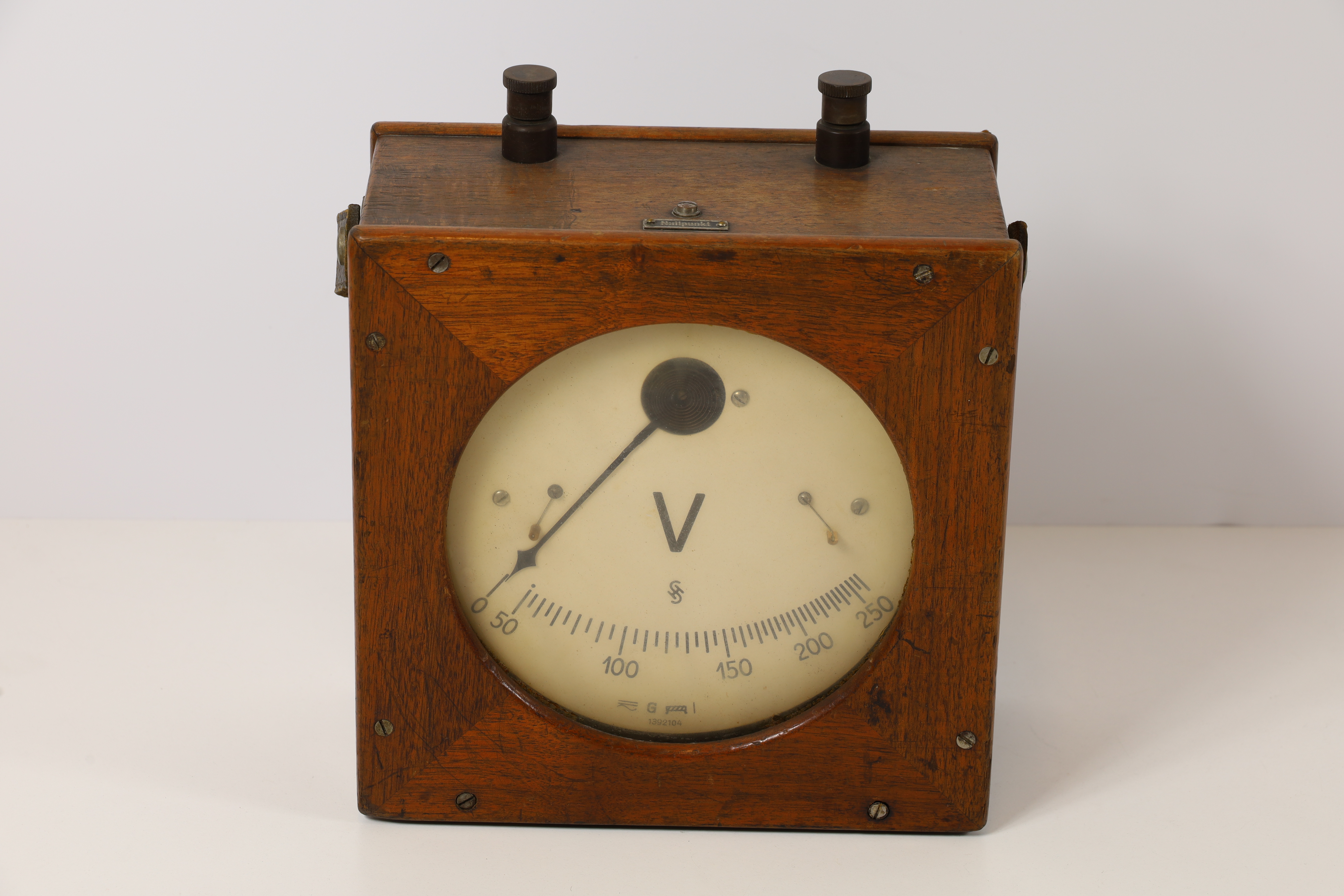 Voltmeter Nr. 1392104 in Holzgehäuse.