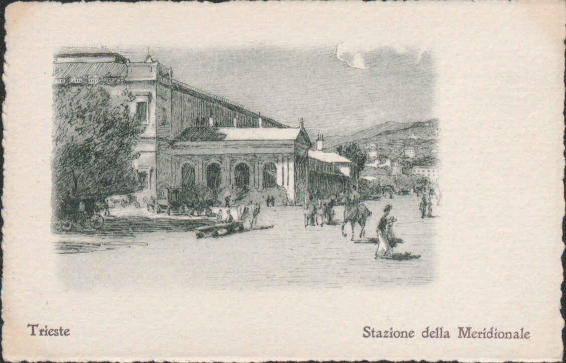 Recto-Ansicht einer Postkarte der Stazione della Meridionale in Triest.
