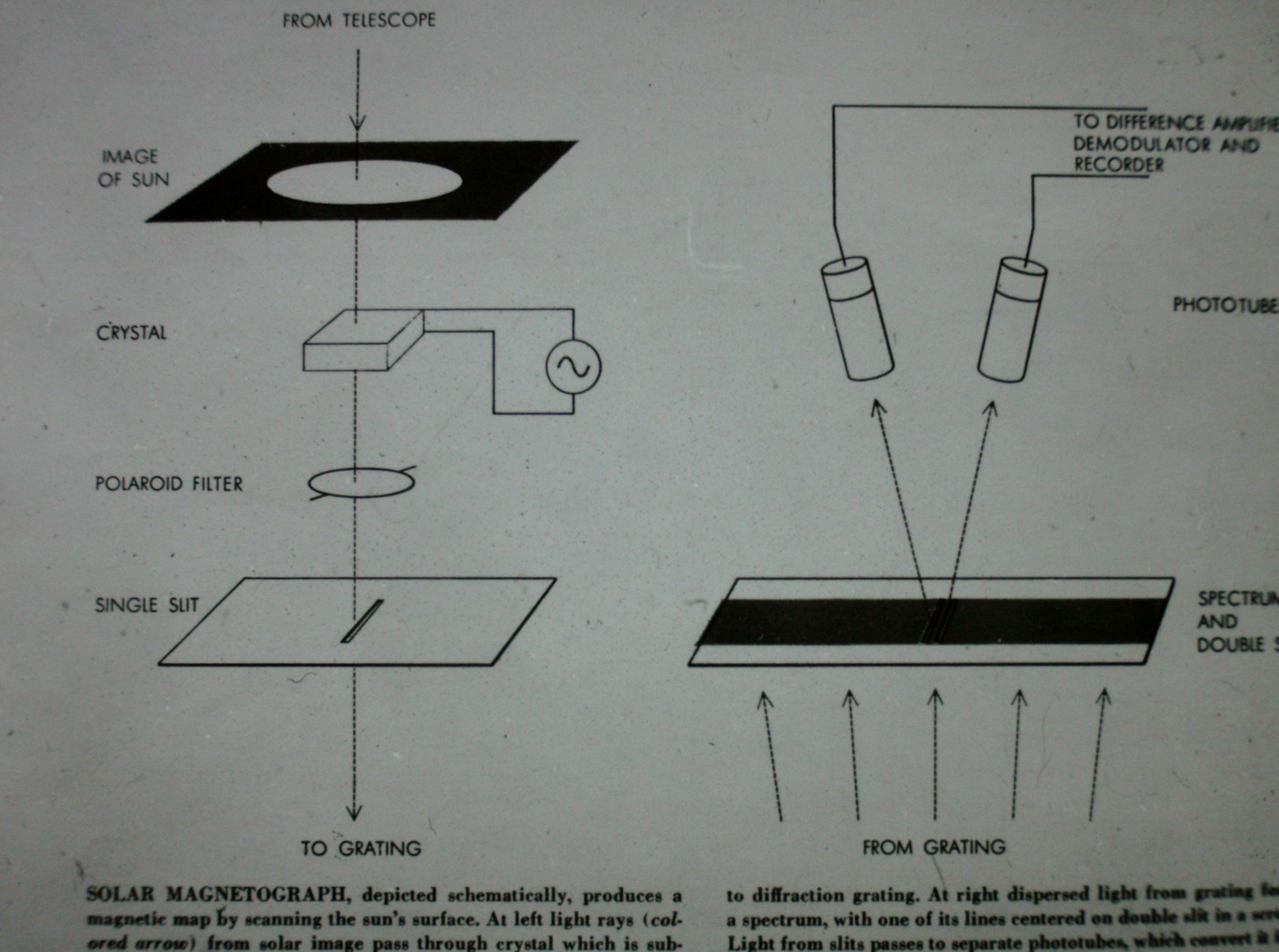 Schematische Darstellung eines Magnetographen, mit dem man das Magnetfeld der Sonne von der Erde aus messen kann.