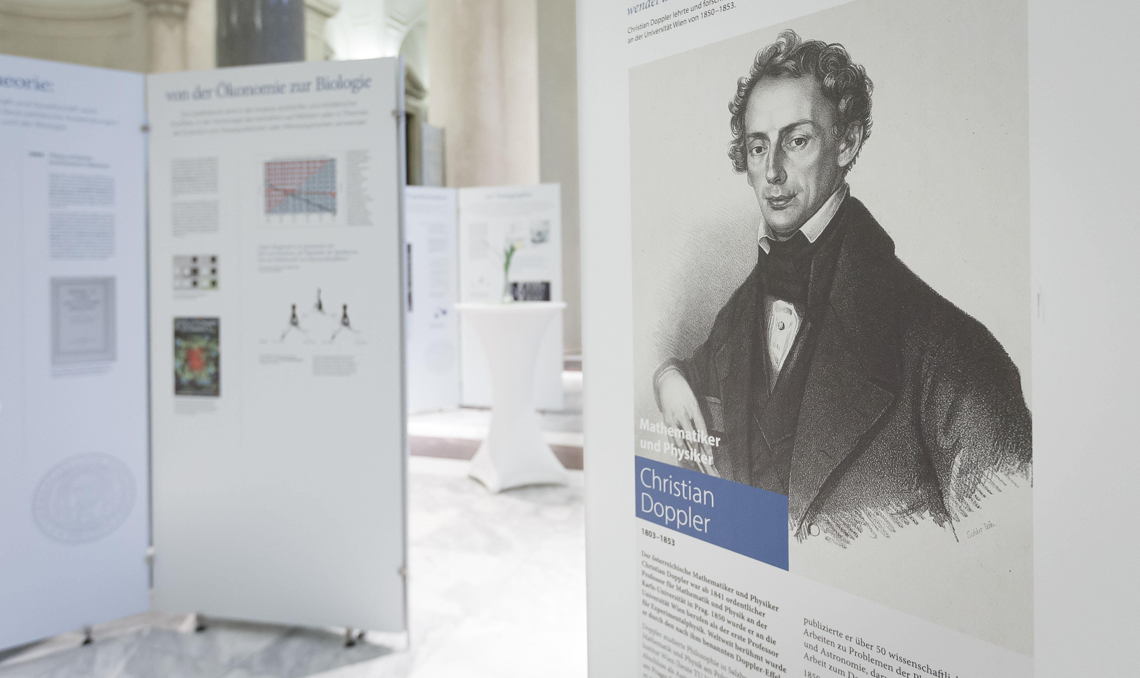 Die ForscherInnen, deren wissenschaftliche Leistung und heutige Wirkung und Anwendung vorgestellt werden, sind Karl Anton von Martini, Franz von Zeiller, Christian Doppler, Eduard Suess, Ludwig Boltzmann, Eugen Böhm-Bawerk, Karl Landsteiner, Lise Meitner, Erwin Schrödinger, Johann Radon, Paul Lazarsfeld, Marie Jahoda, Oskar Morgenstern und Kurt Gödel.