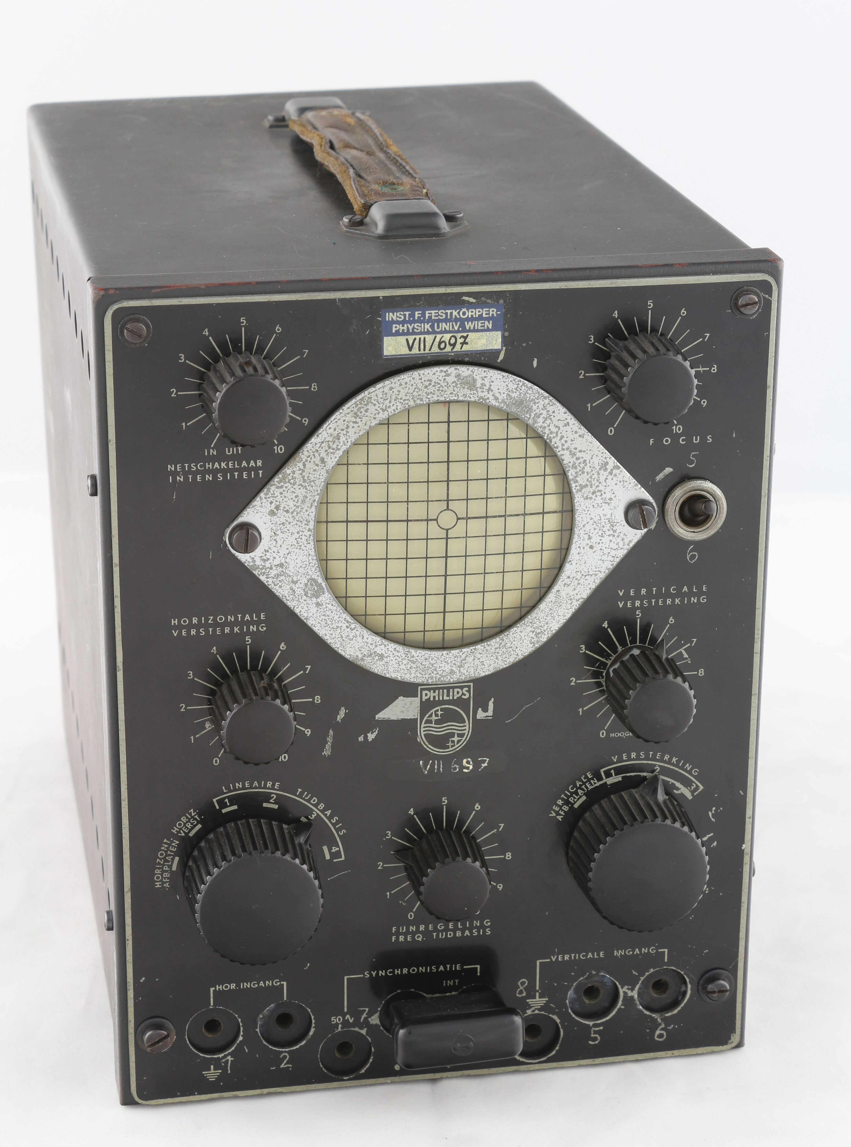 Bilddurchmesser 7 cm, 10 kHz max. Frequenz, max. Empfindlichkeit 125 mV/cm, Kippfrequenz 20 kHz, Inventar-Nummer VII/697.